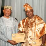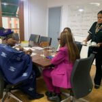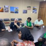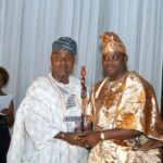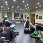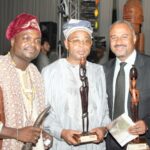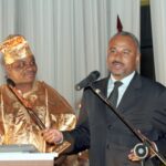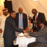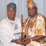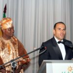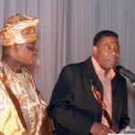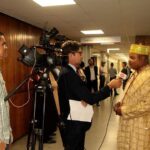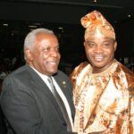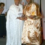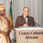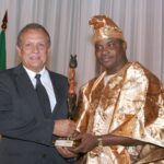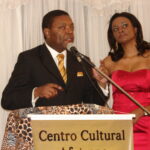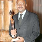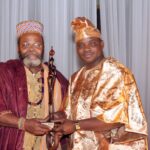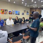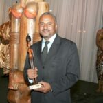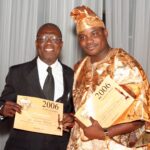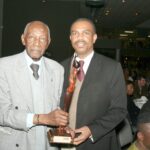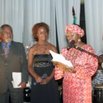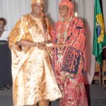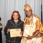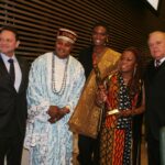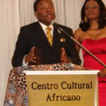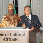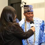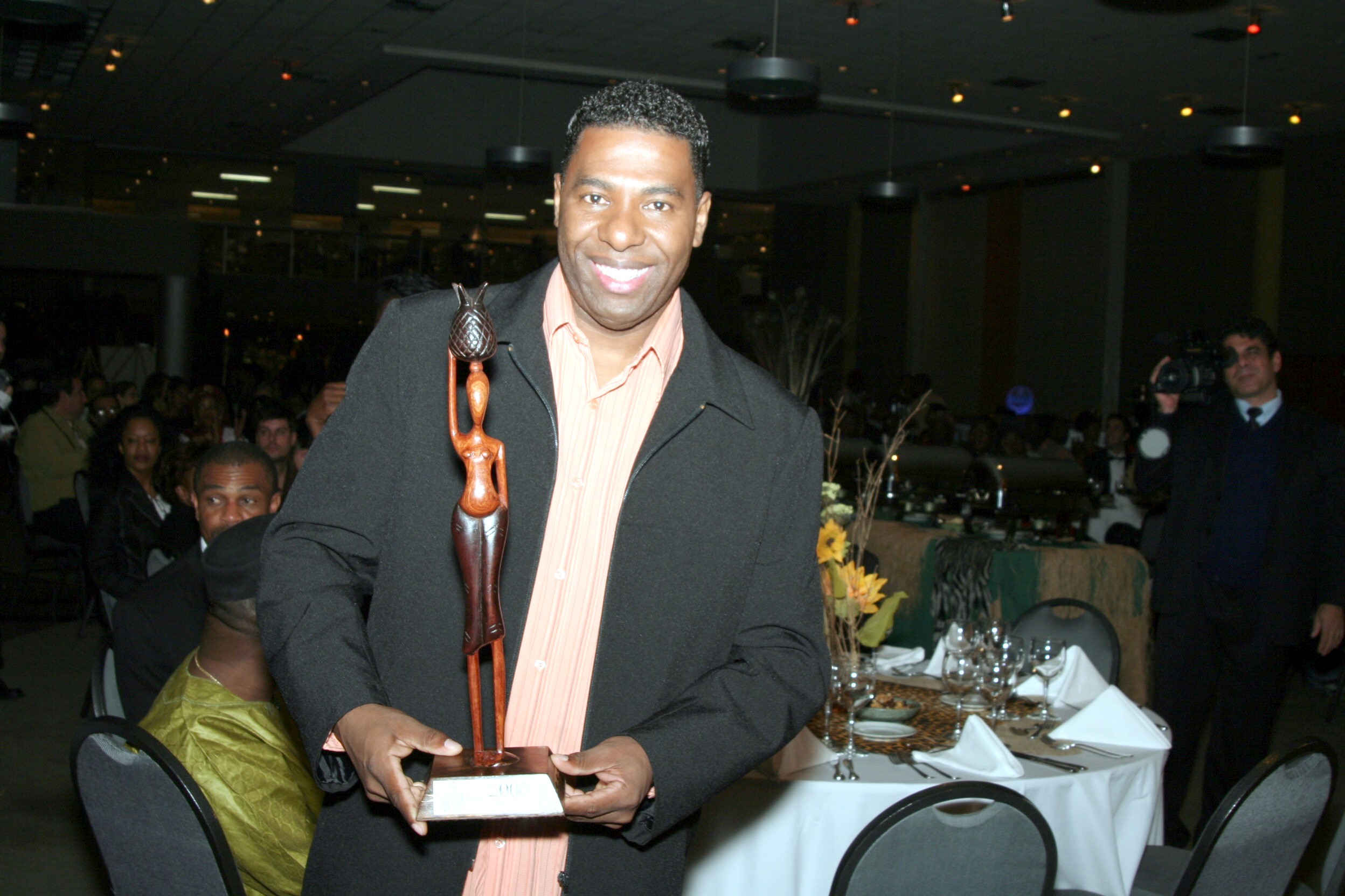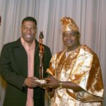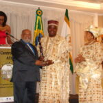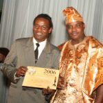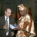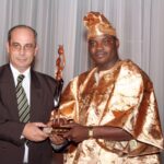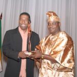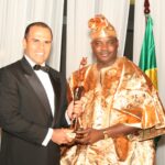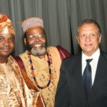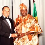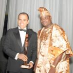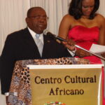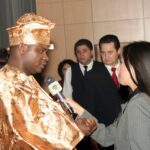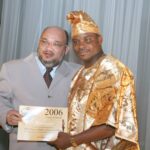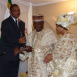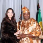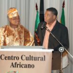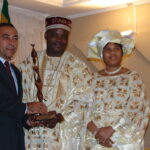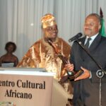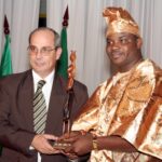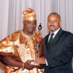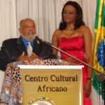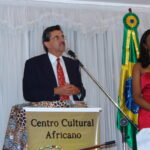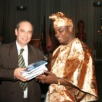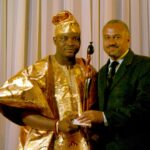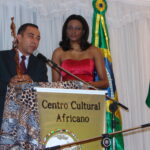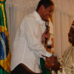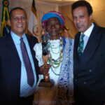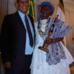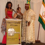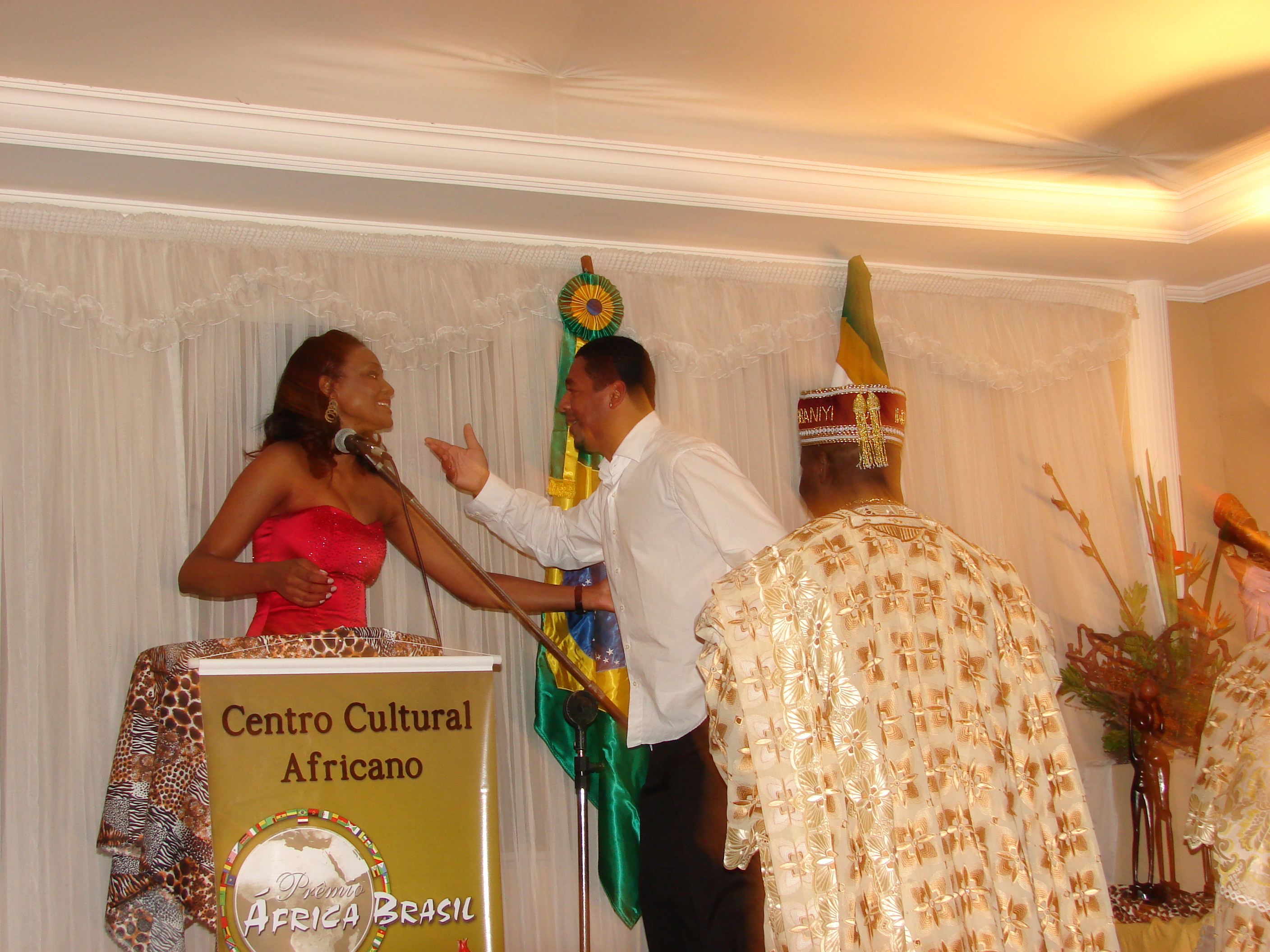 Entregar do prêmio África Brasil para Adekunle em seu escritório no Palácio de Justiça do Estado de São Paulo