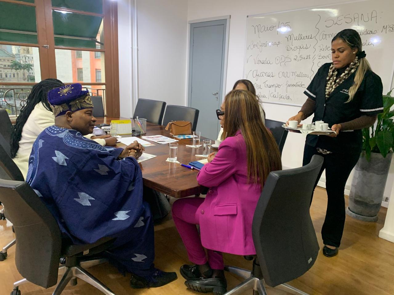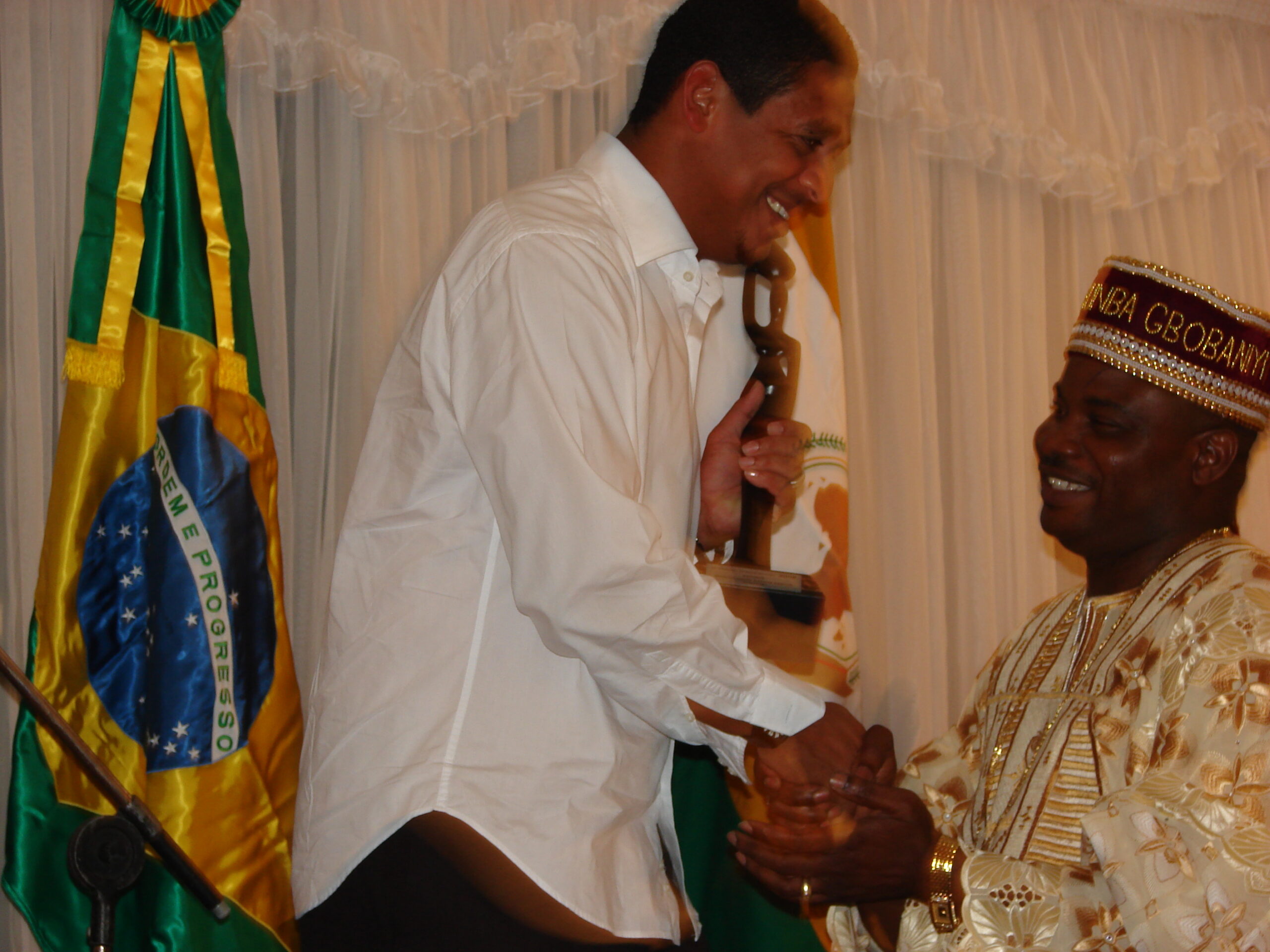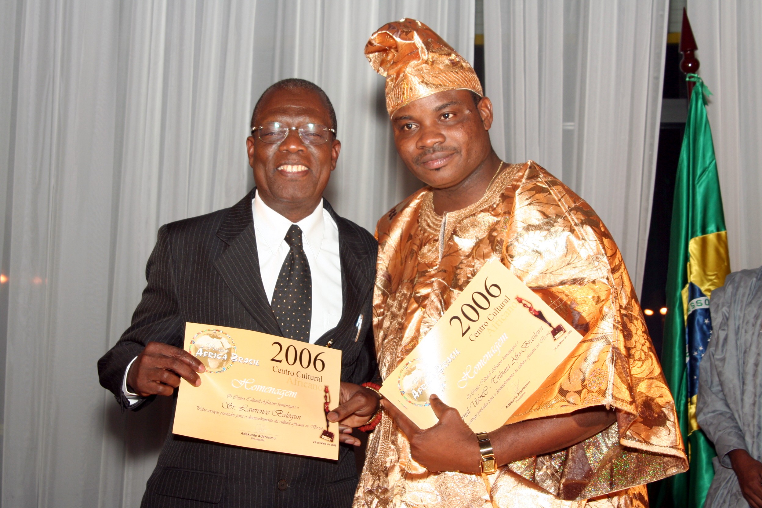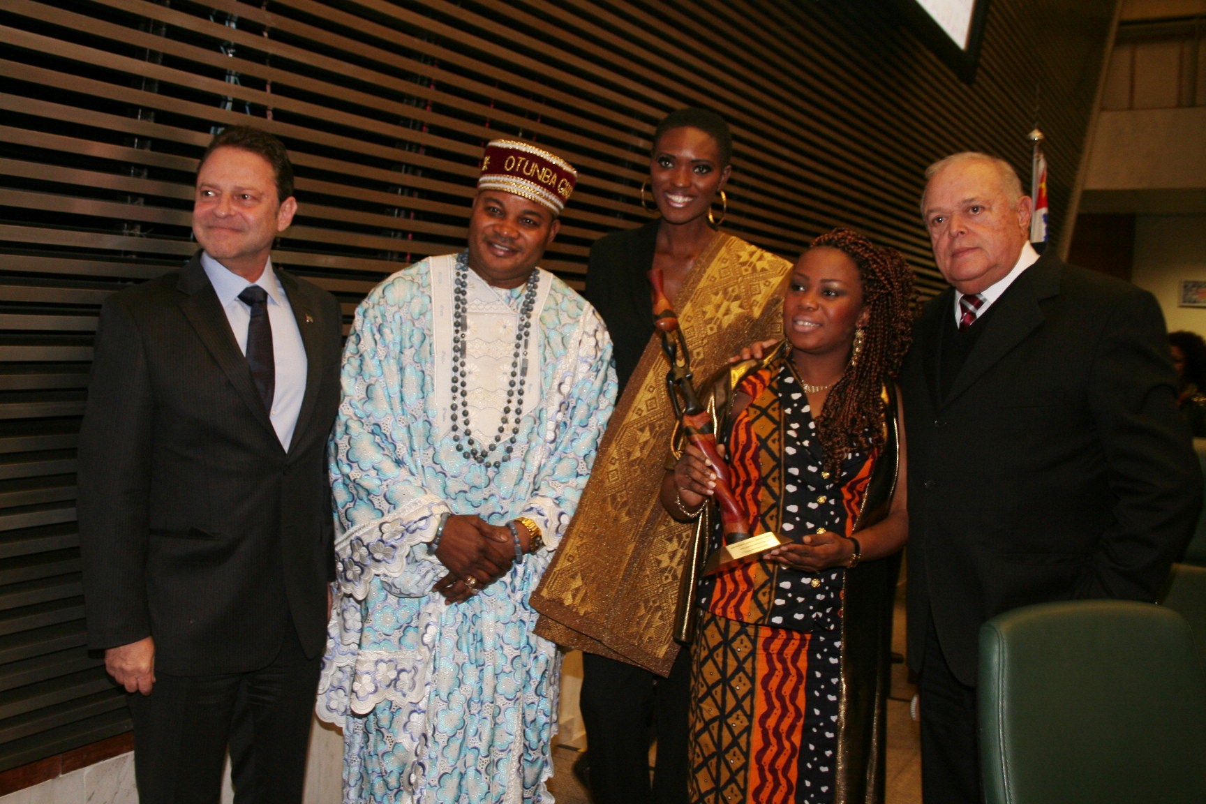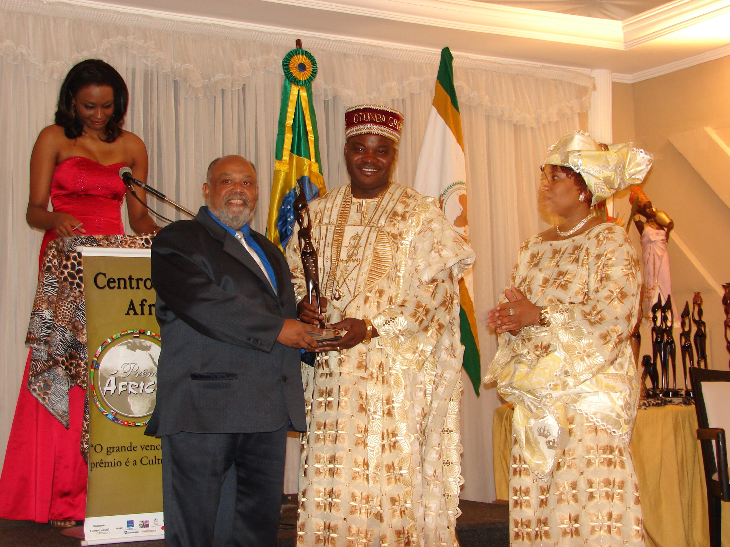 Entregar do prêmio África Brasil para Adekunle em seu escritório no Palácio de Justiça do Estado de São Paulo