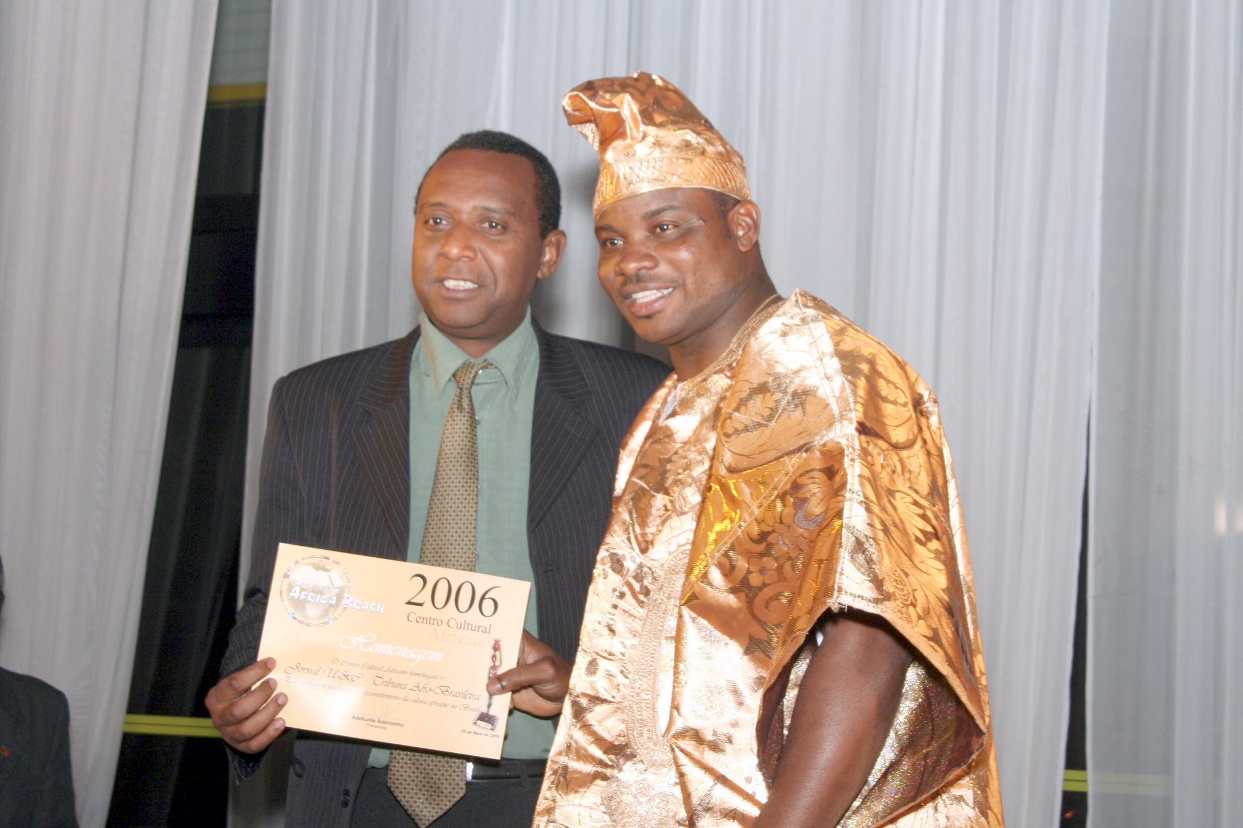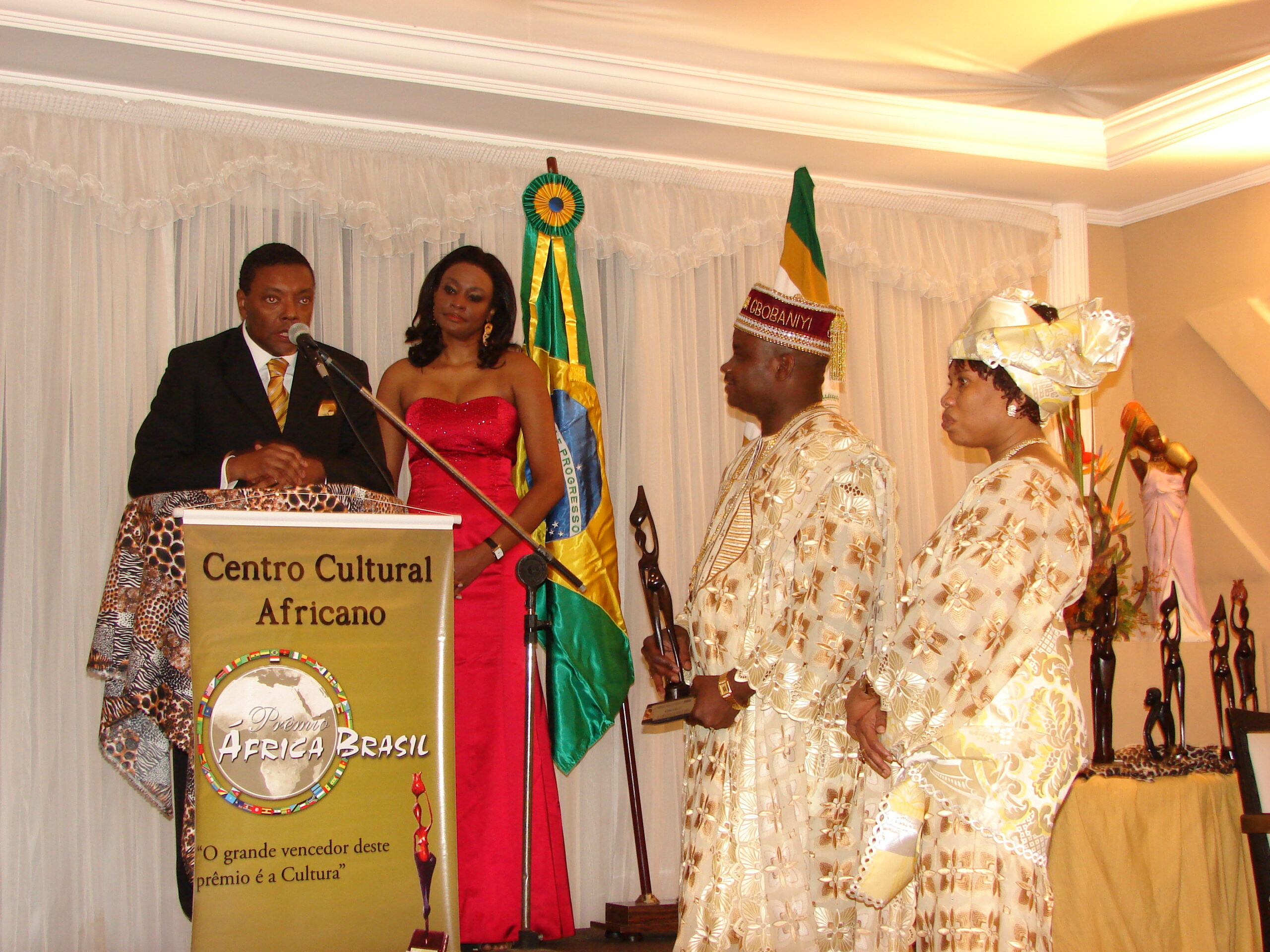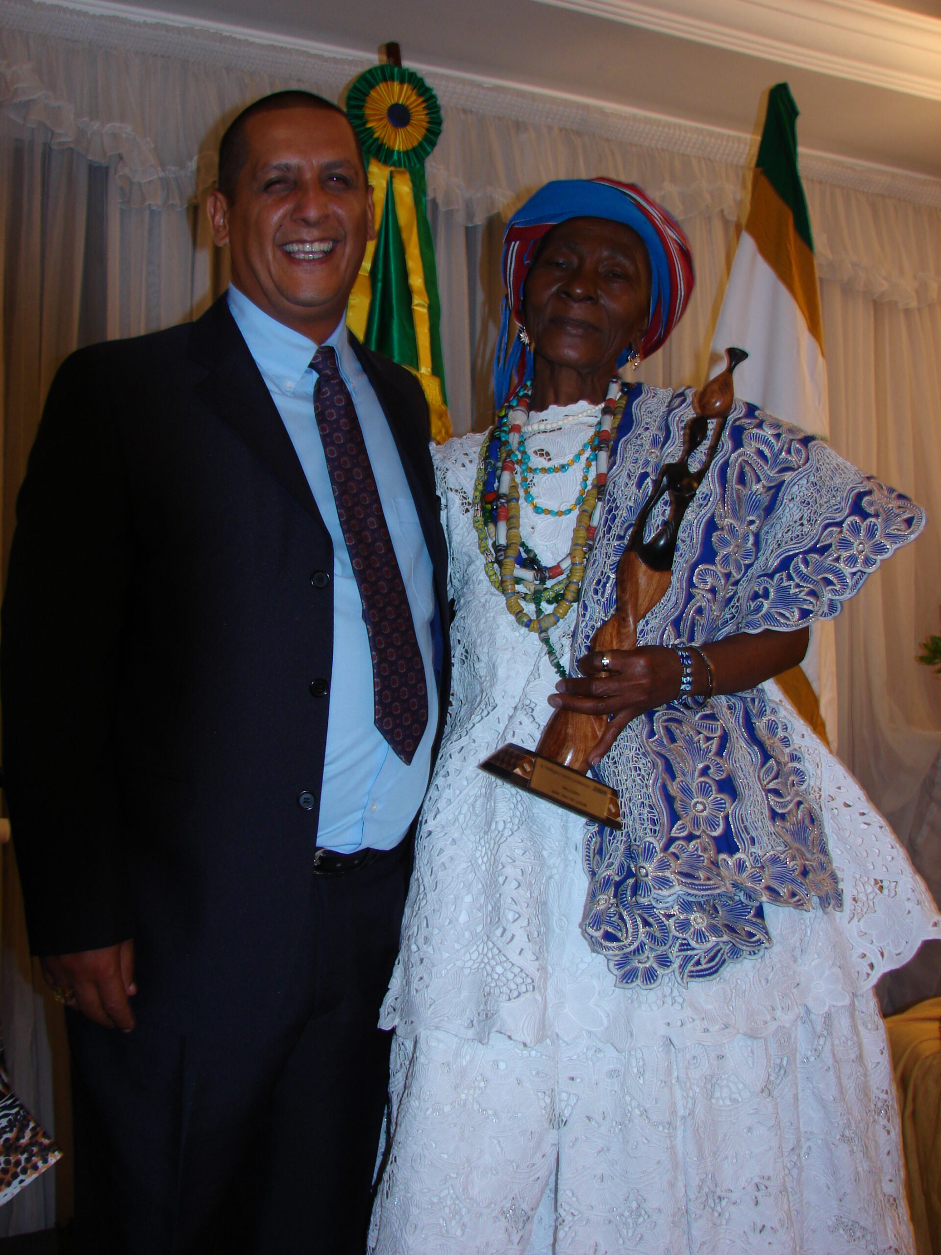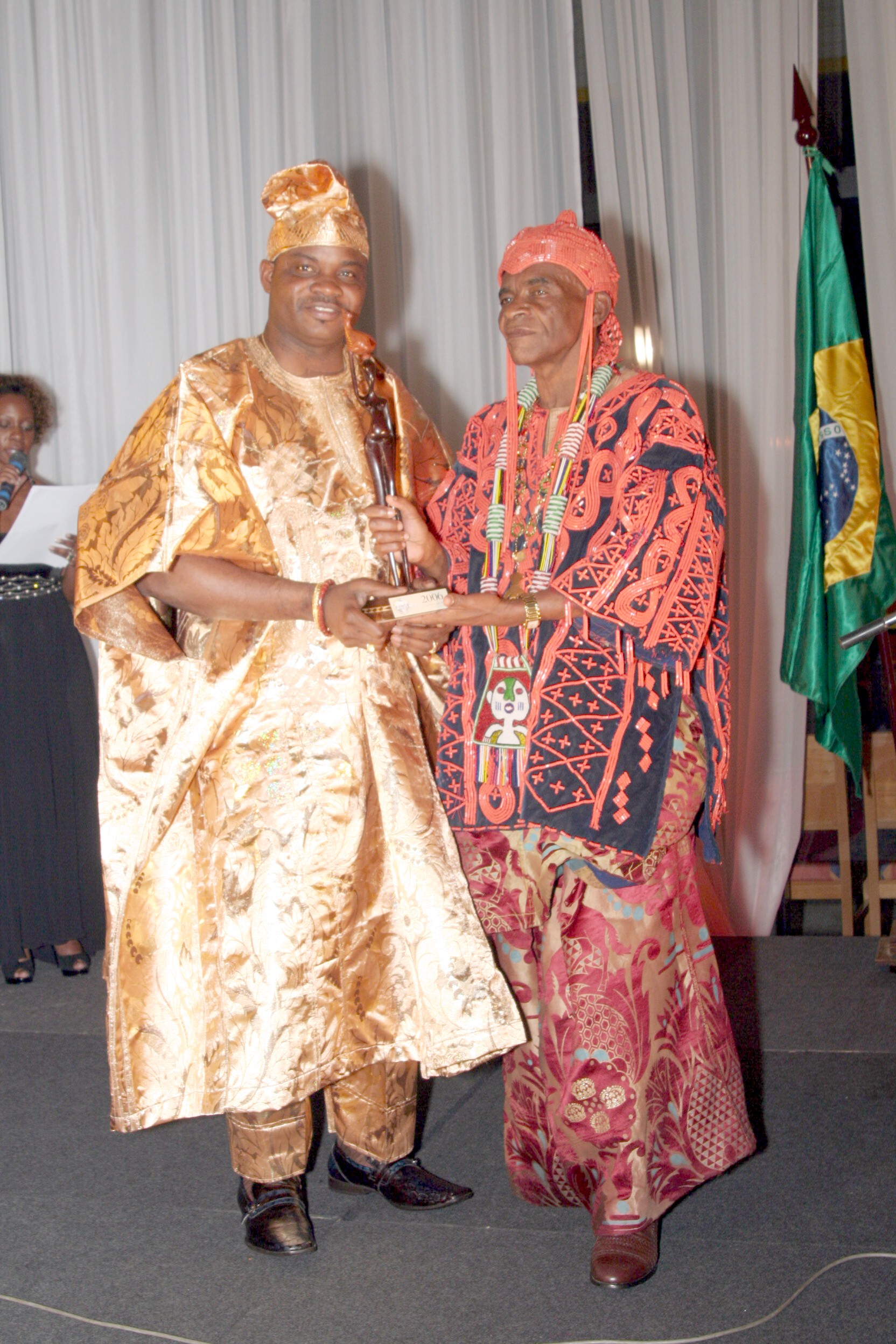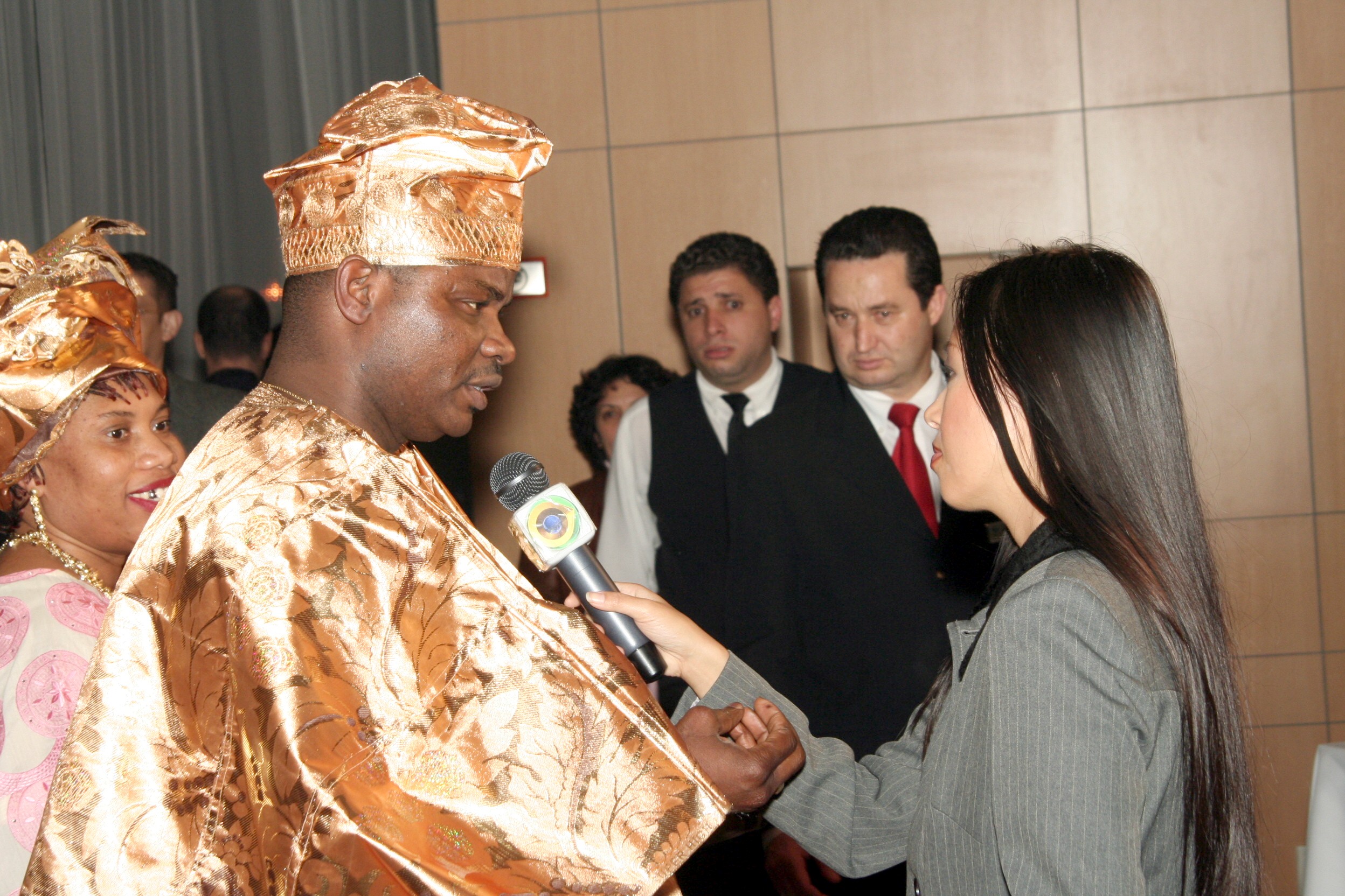 Entregar do prêmio África Brasil para Adekunle em seu escritório no Palácio de Justiça do Estado de São Paulo