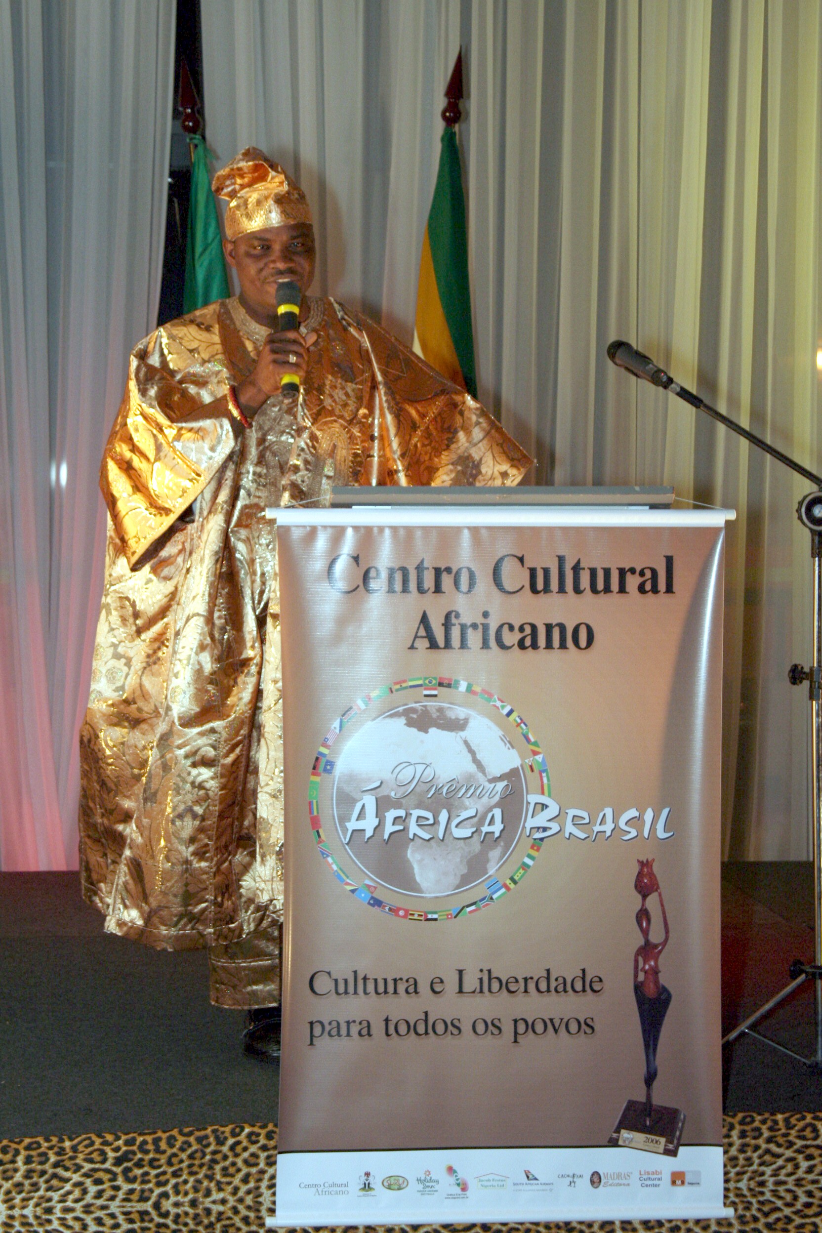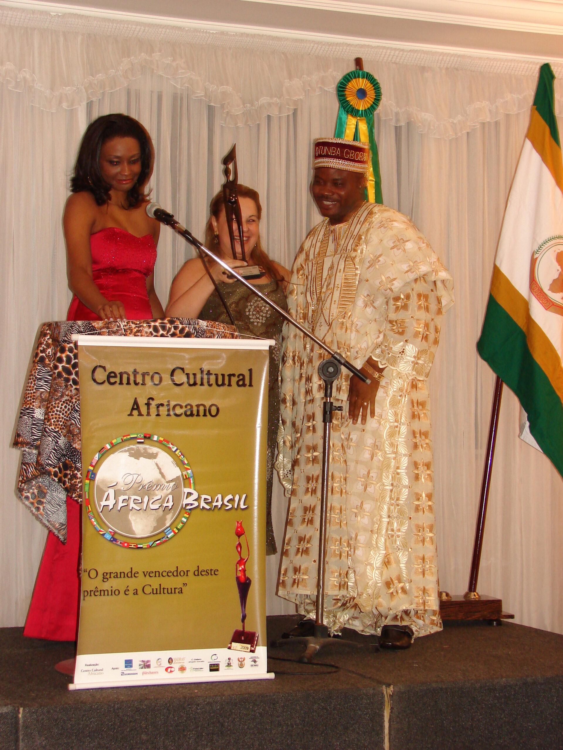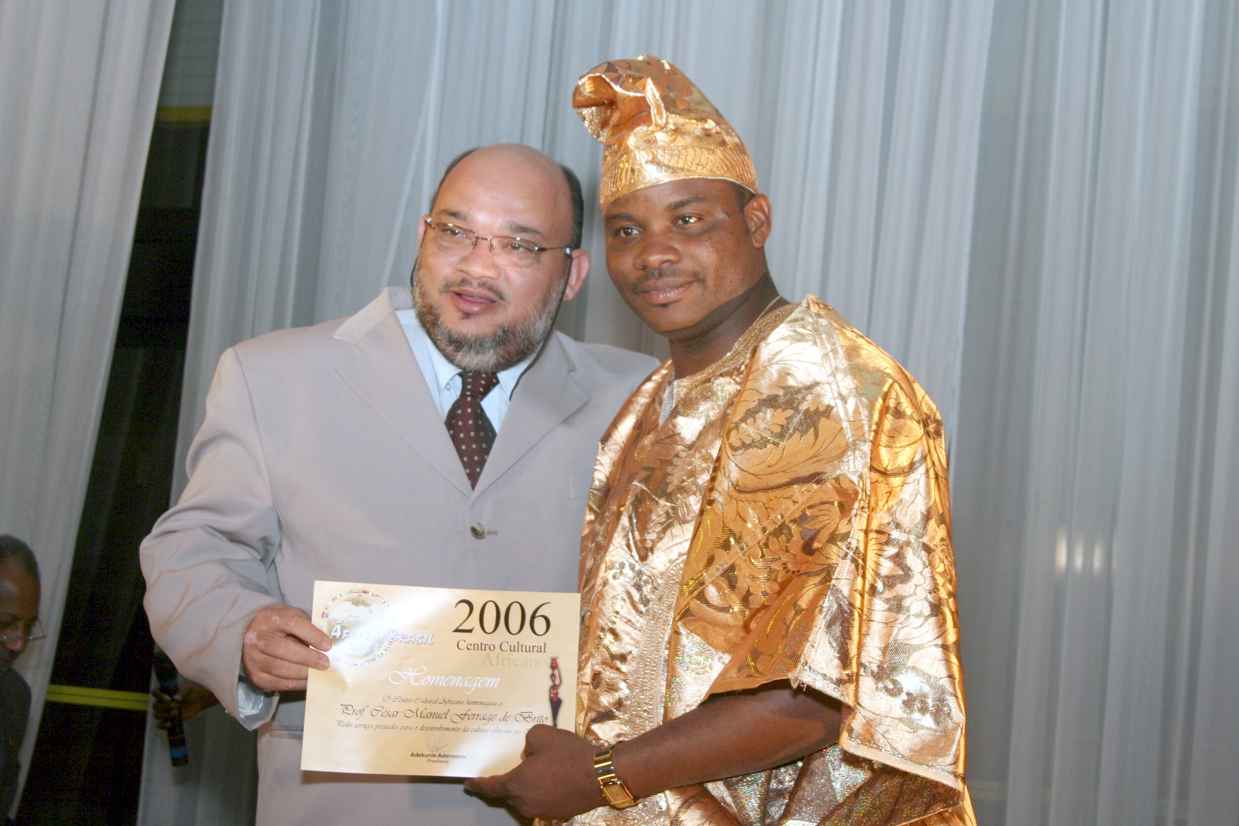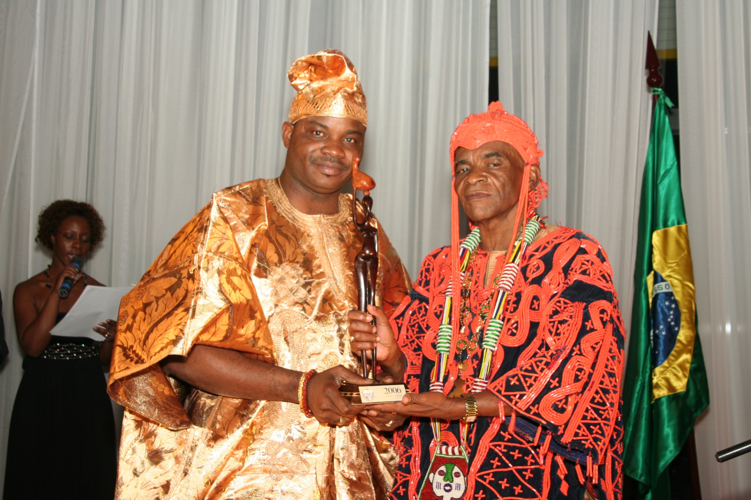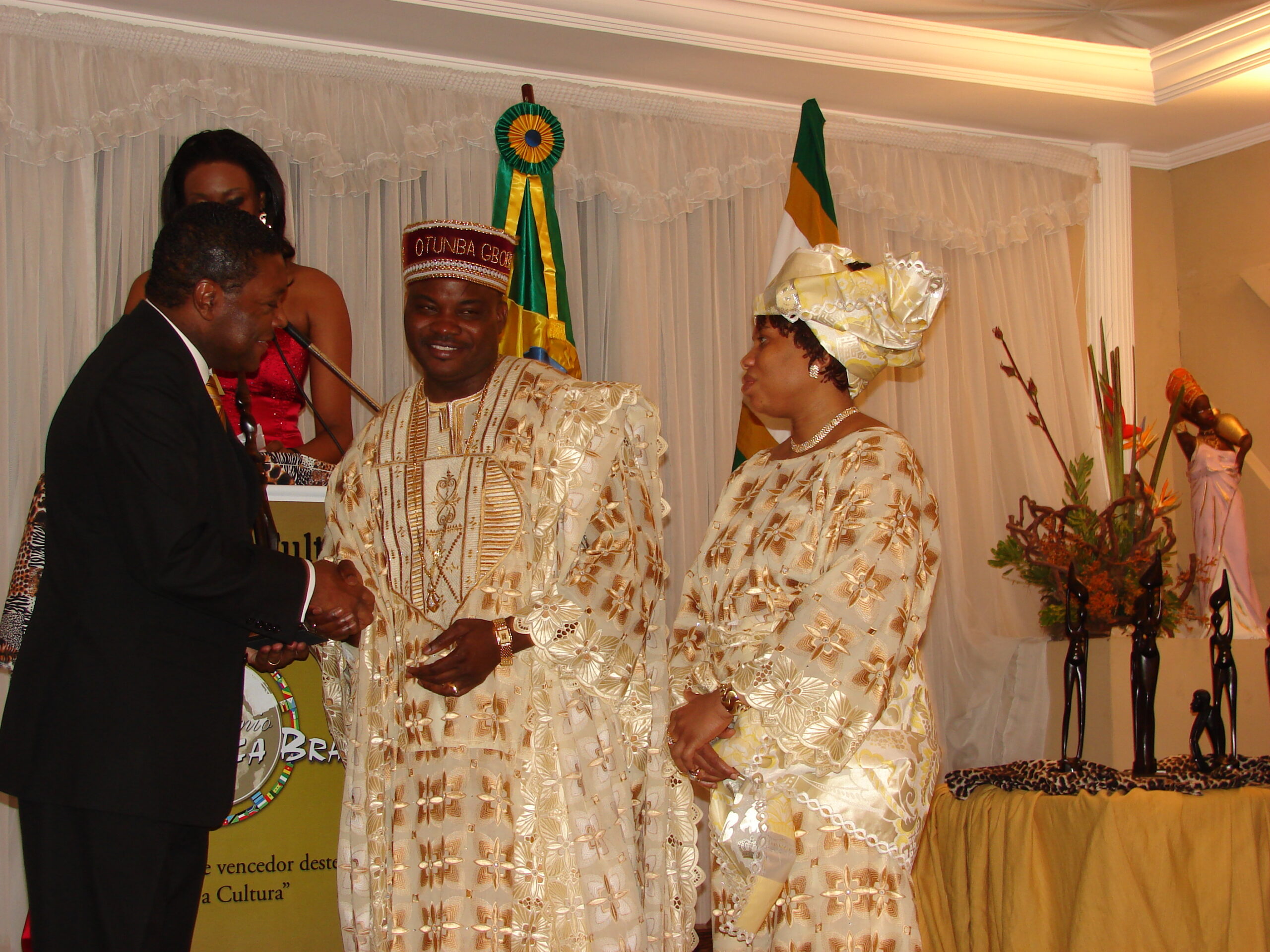 Entregar do prêmio África Brasil para Adekunle em seu escritório no Palácio de Justiça do Estado de São Paulo