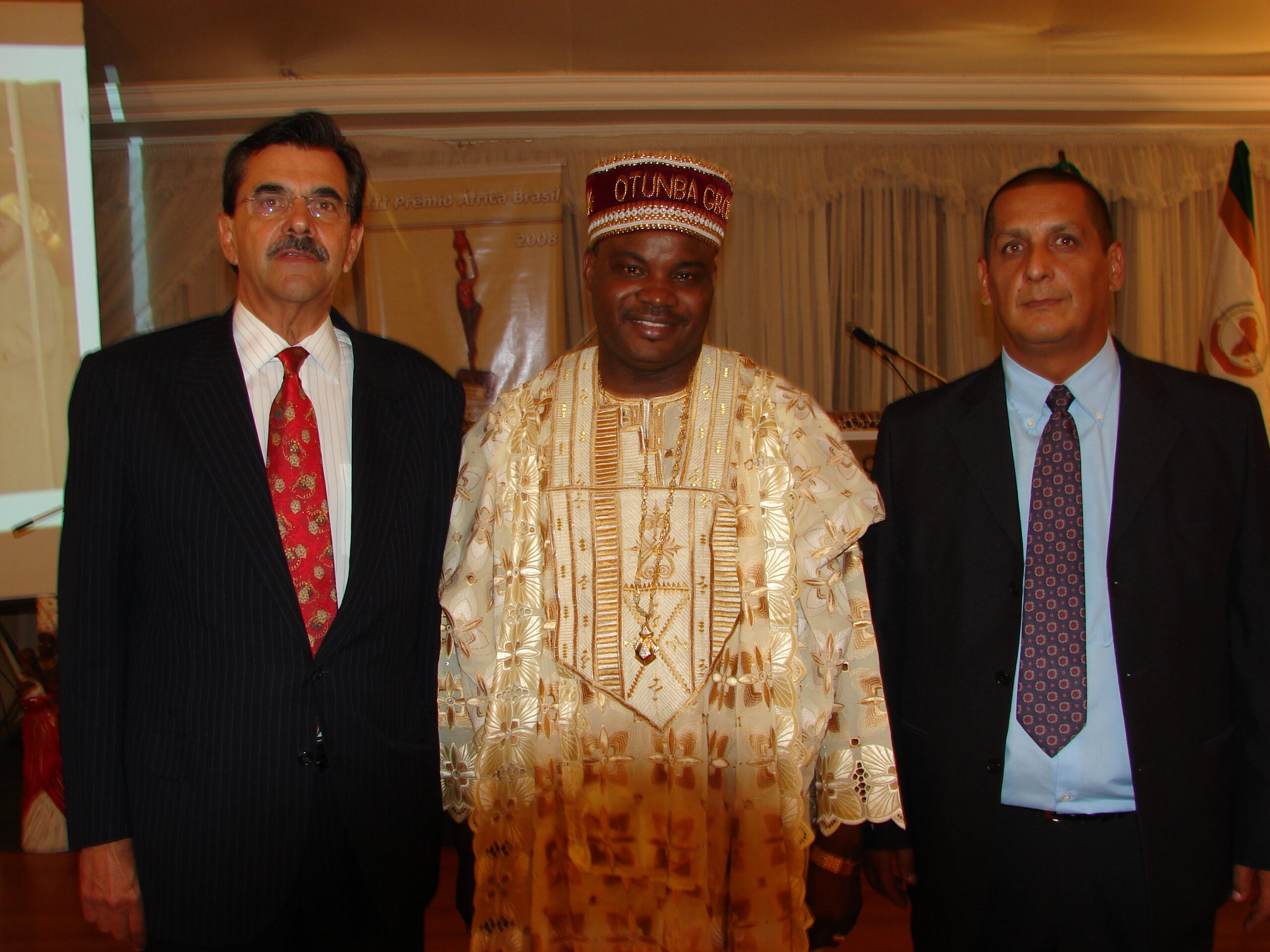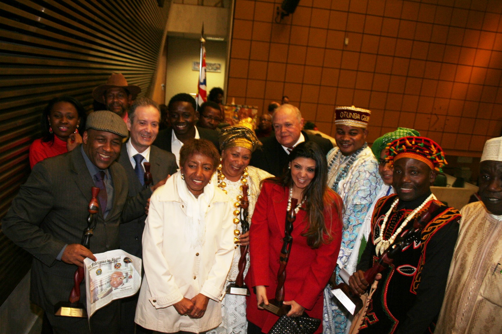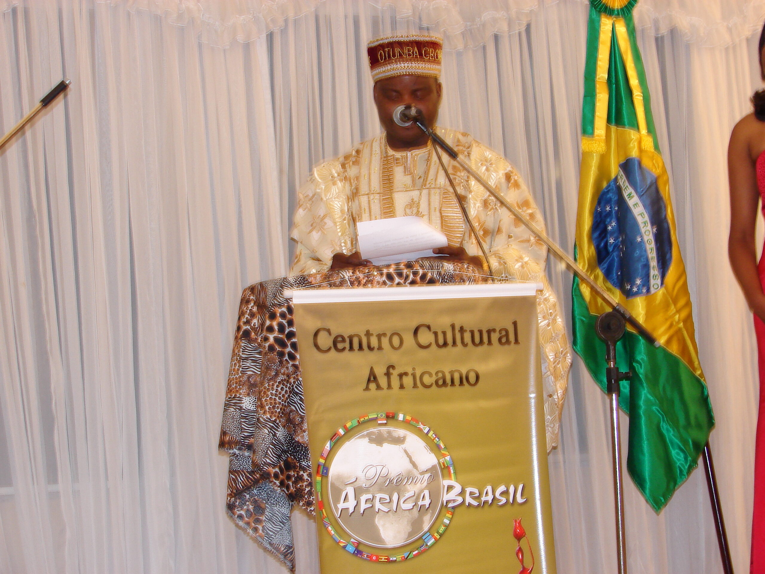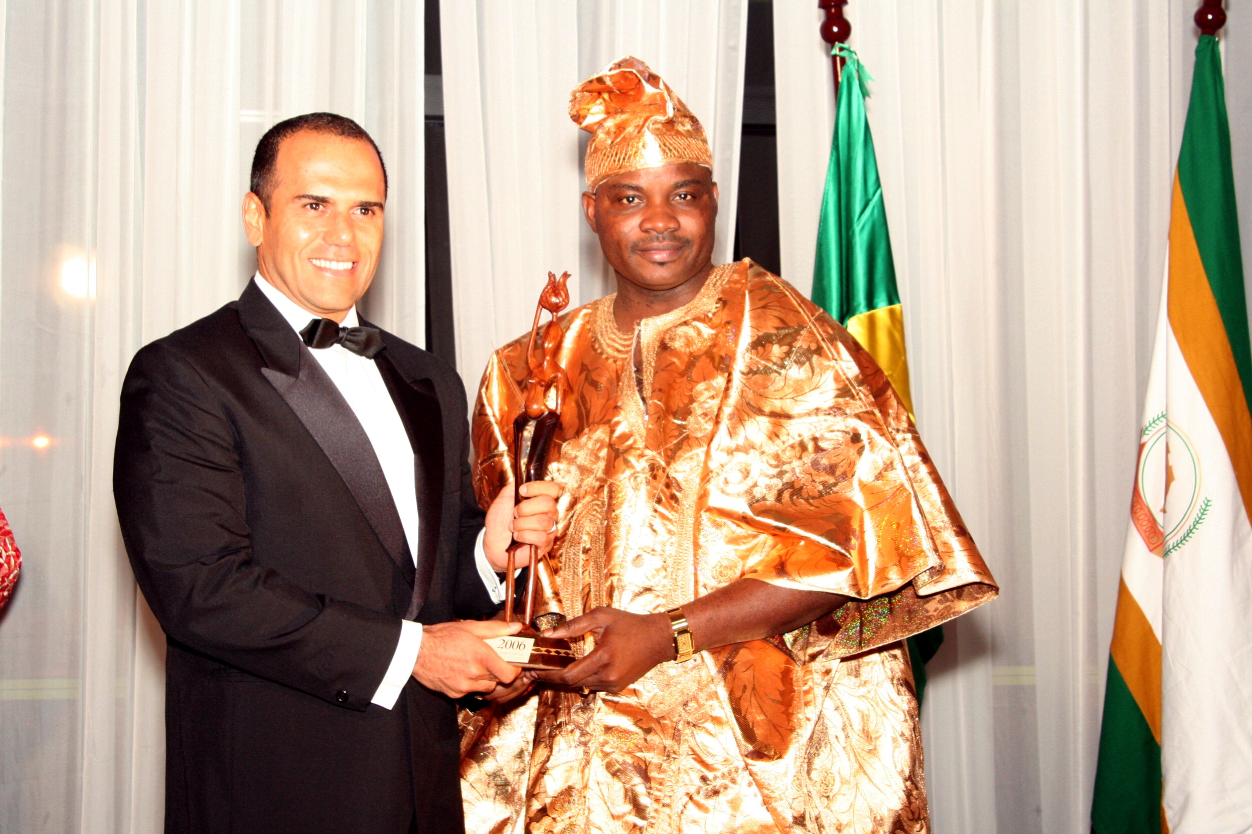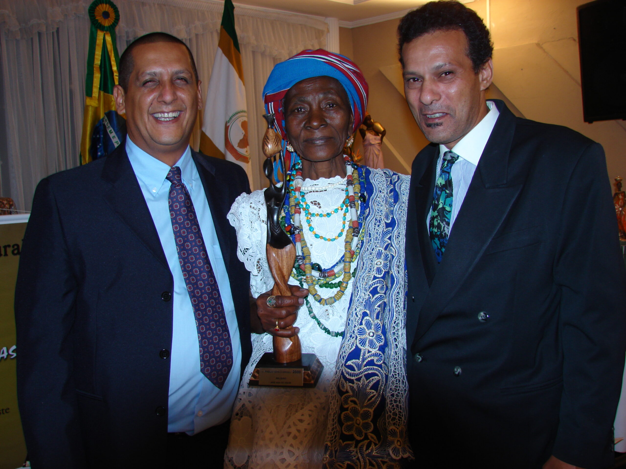 Entregar do prêmio África Brasil para Adekunle em seu escritório no Palácio de Justiça do Estado de São Paulo