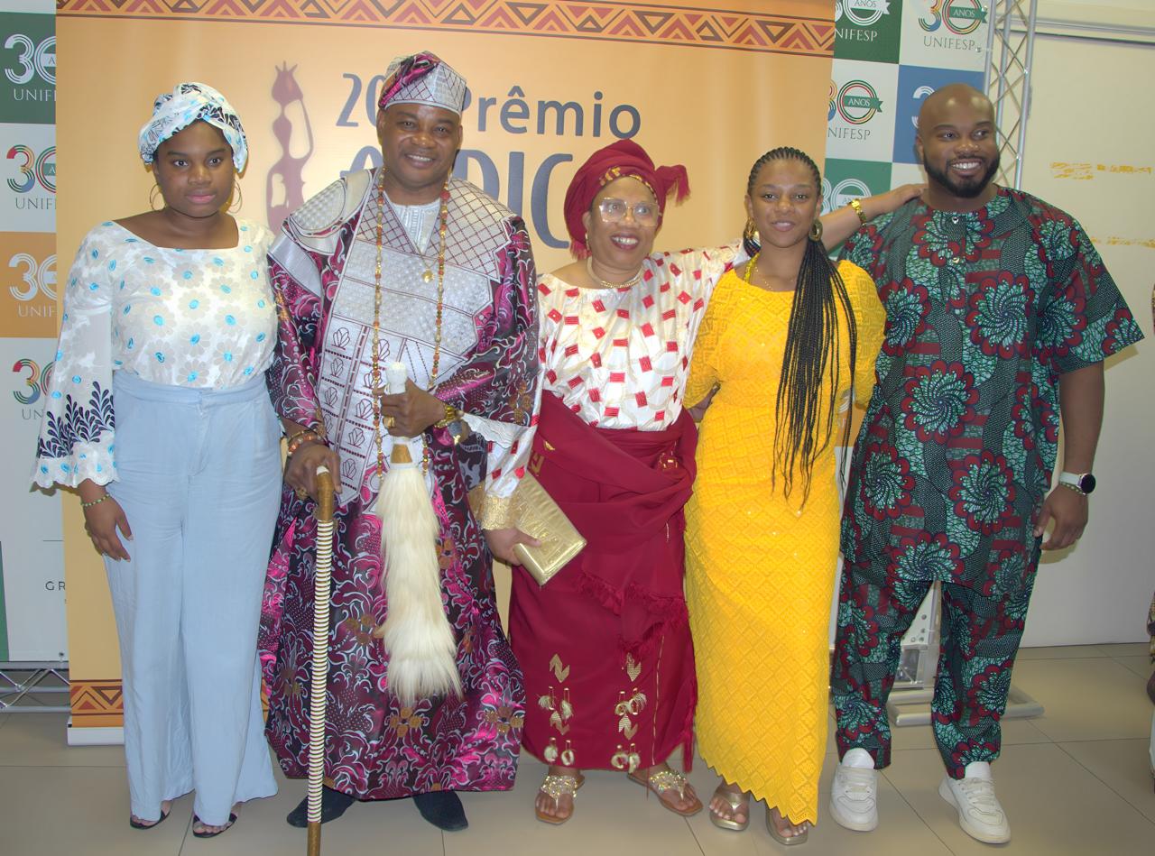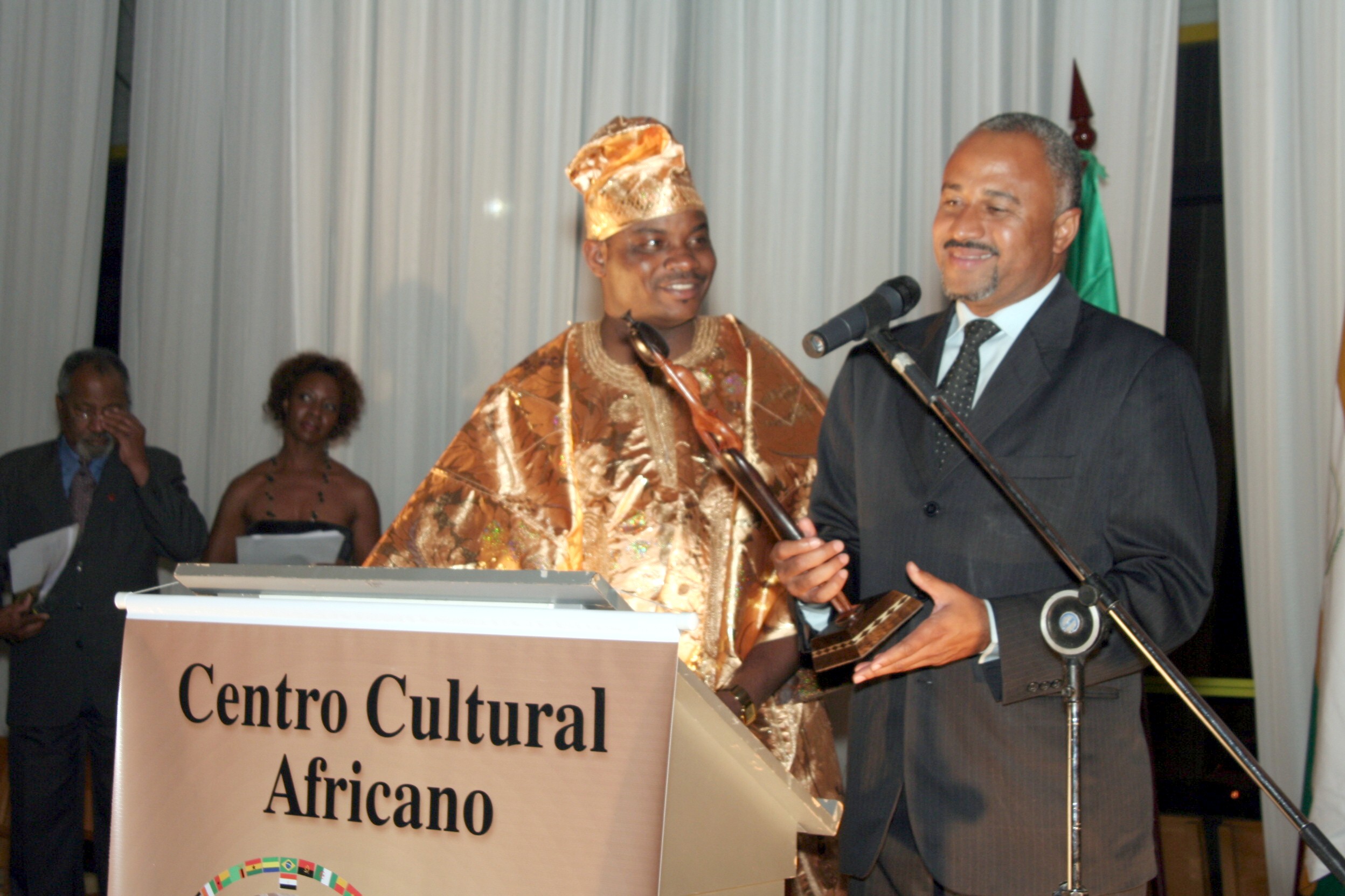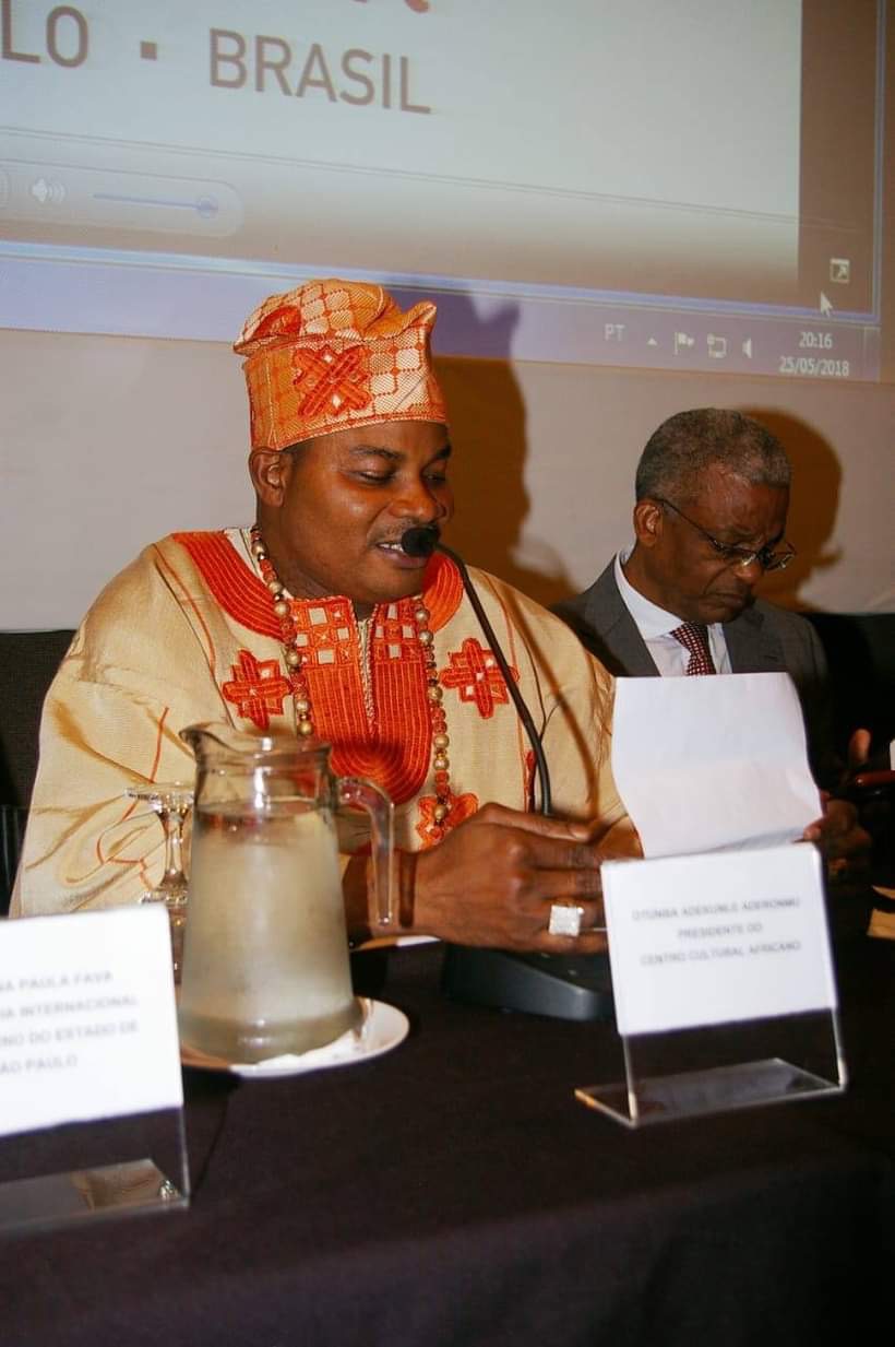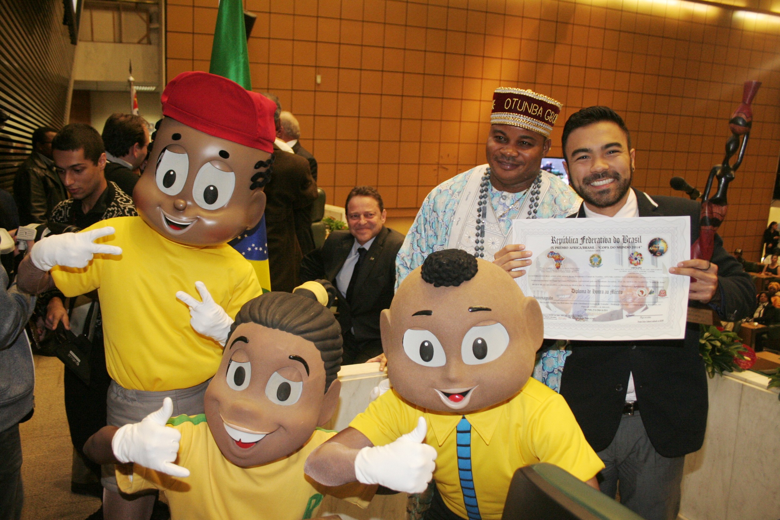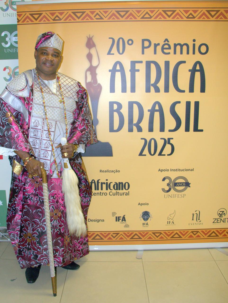 Entregar do prêmio África Brasil para Adekunle em seu escritório no Palácio de Justiça do Estado de São Paulo