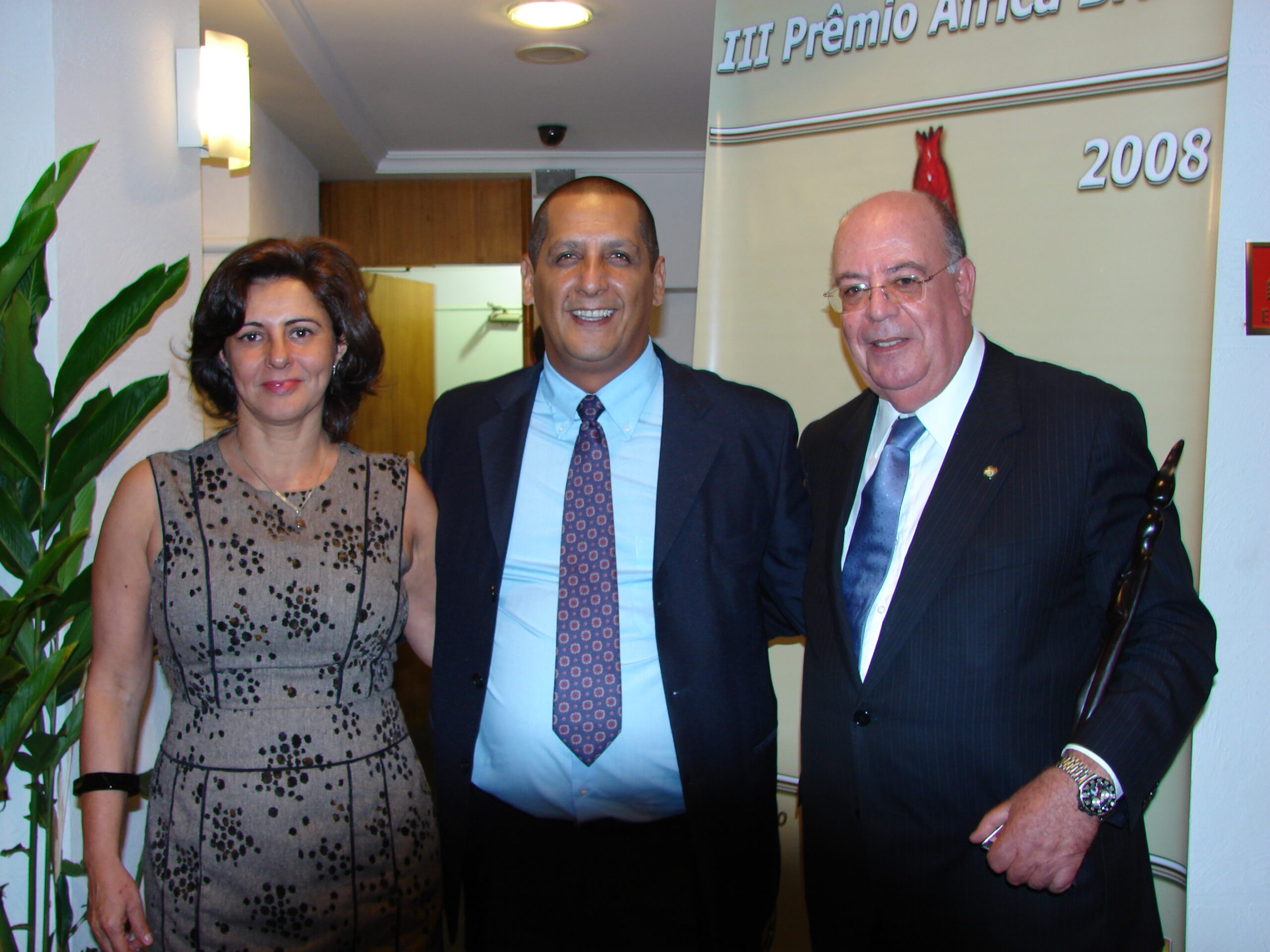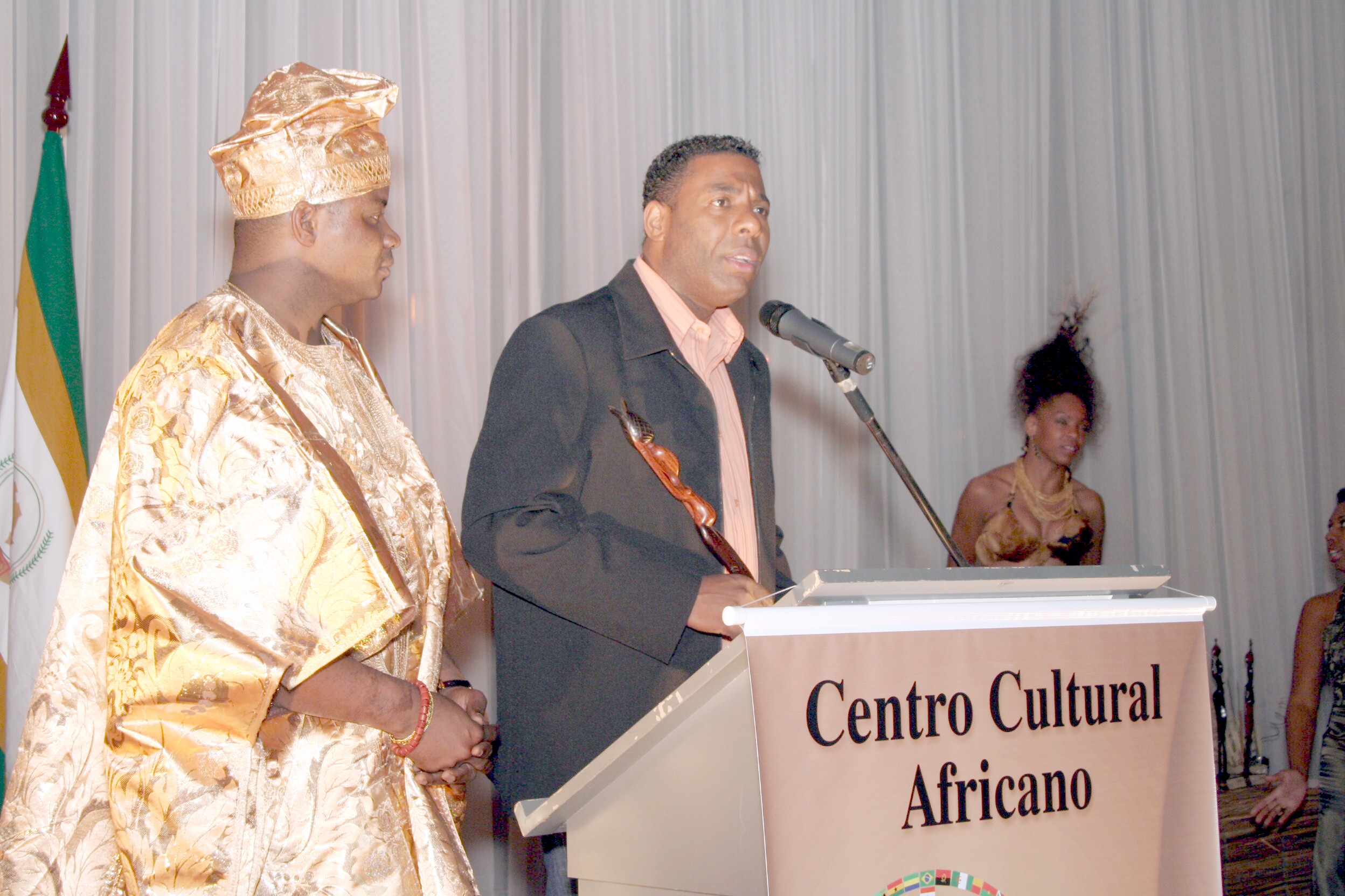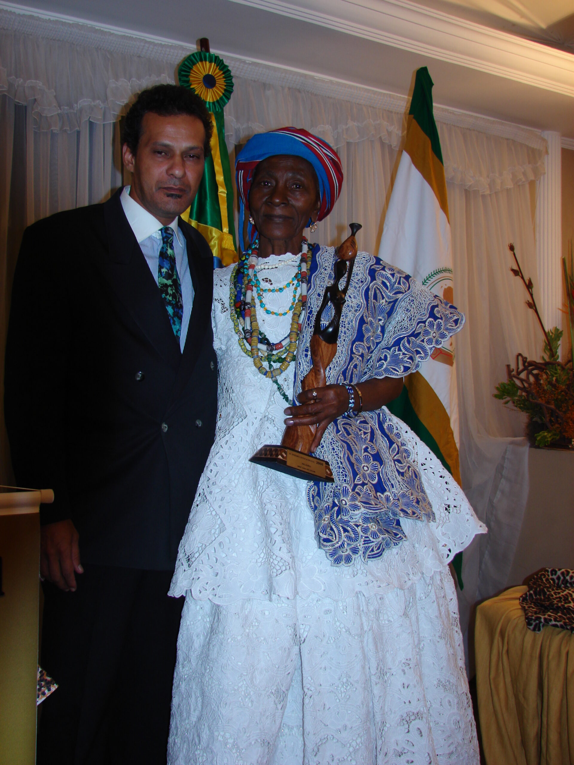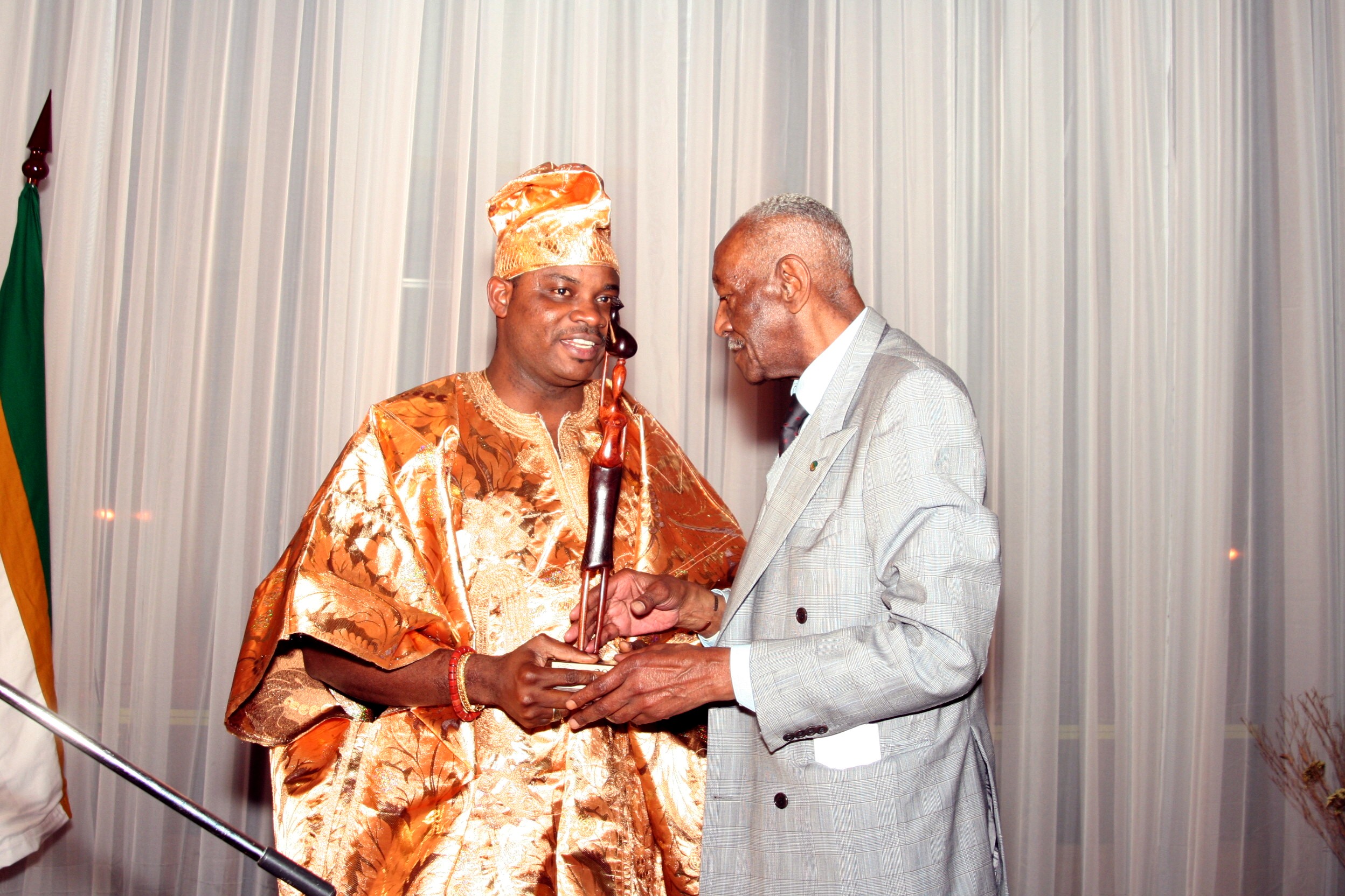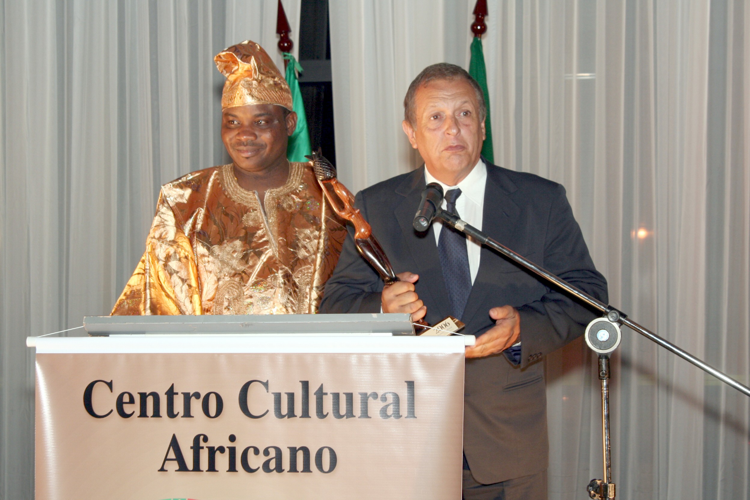 Entregar do prêmio África Brasil para Adekunle em seu escritório no Palácio de Justiça do Estado de São Paulo