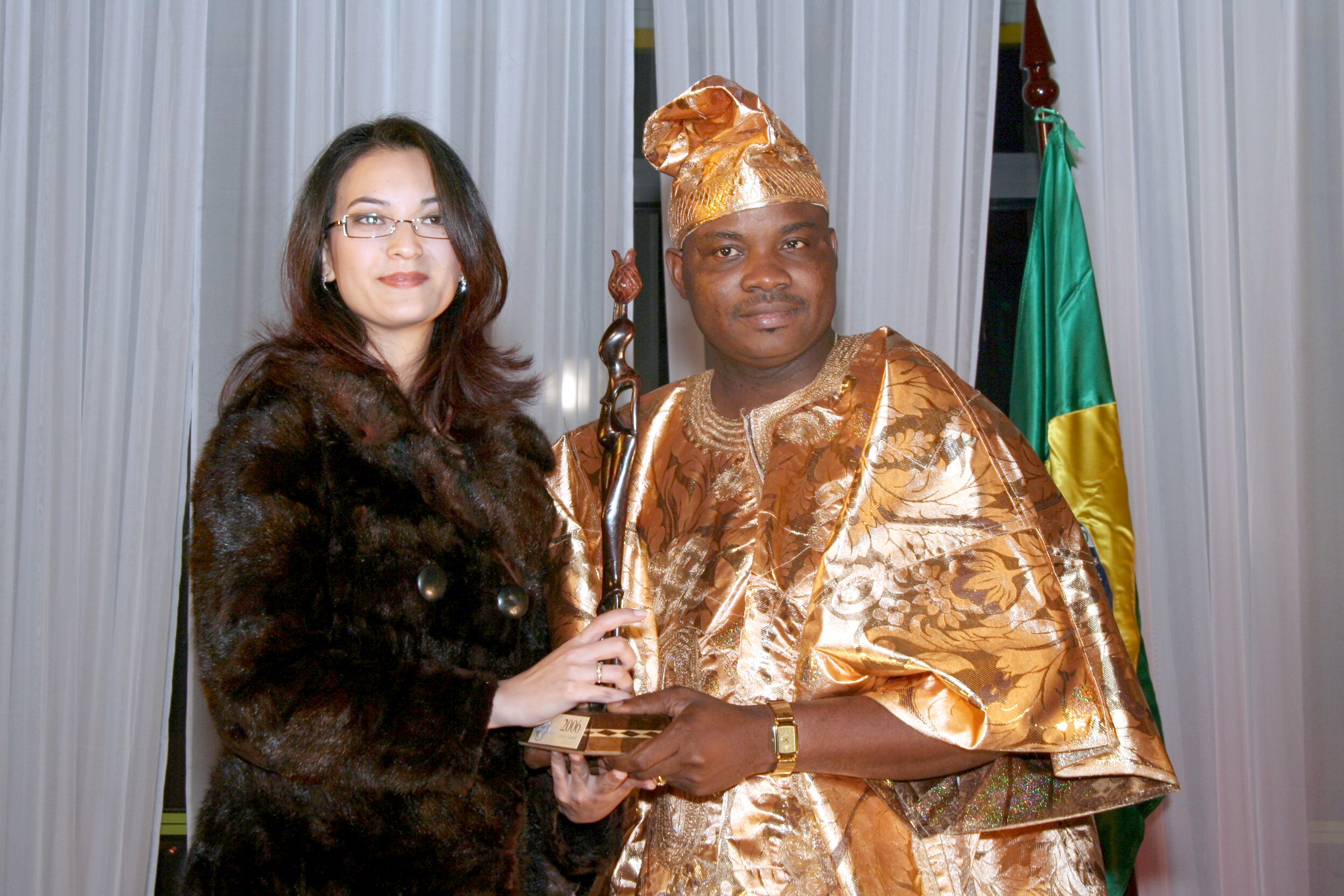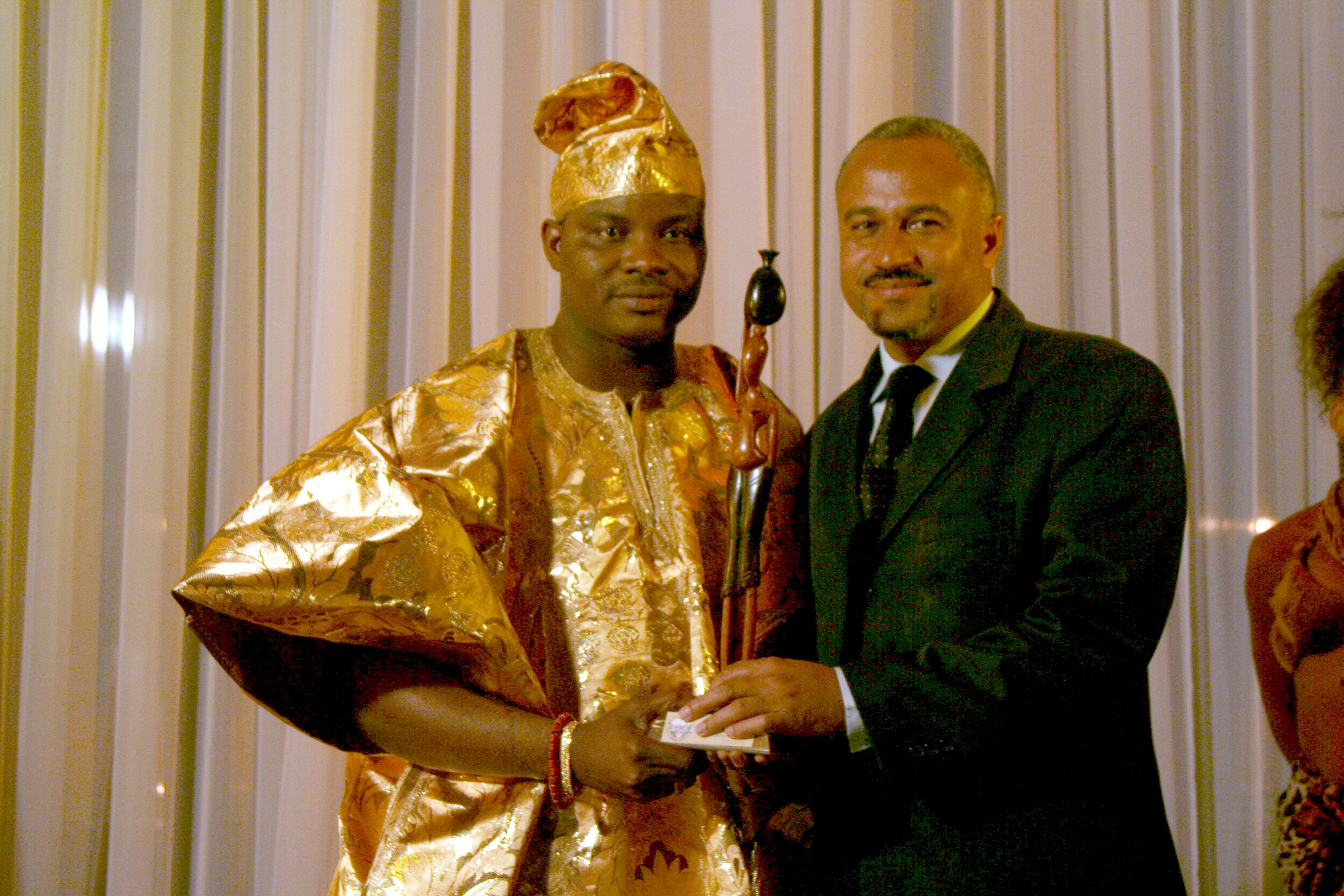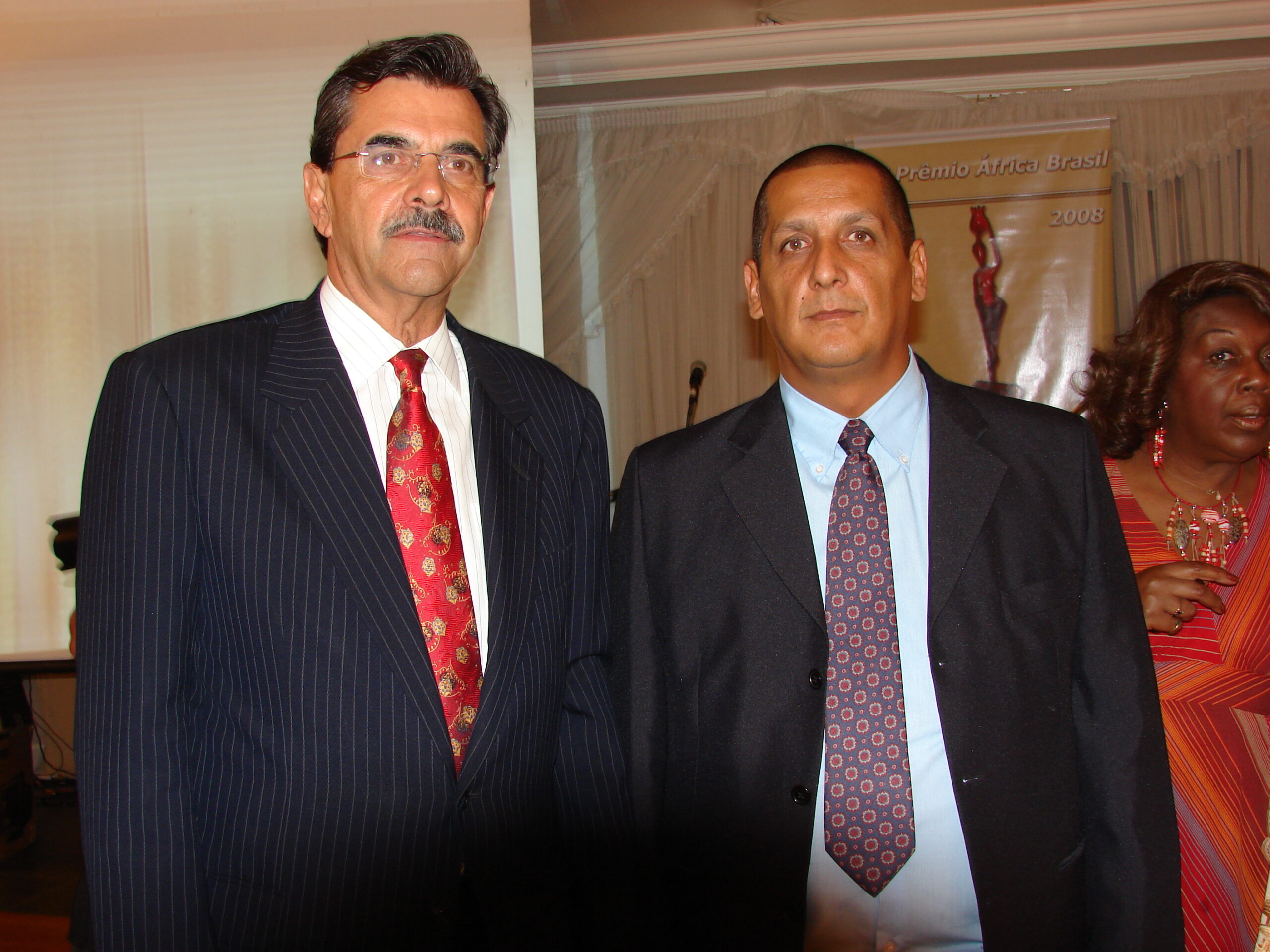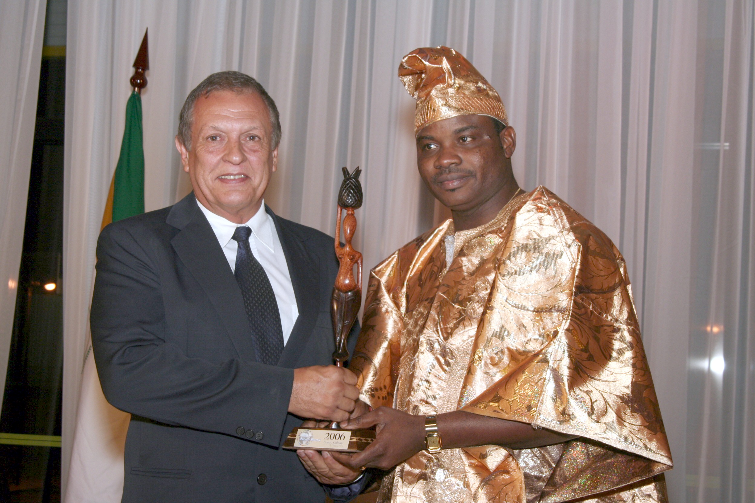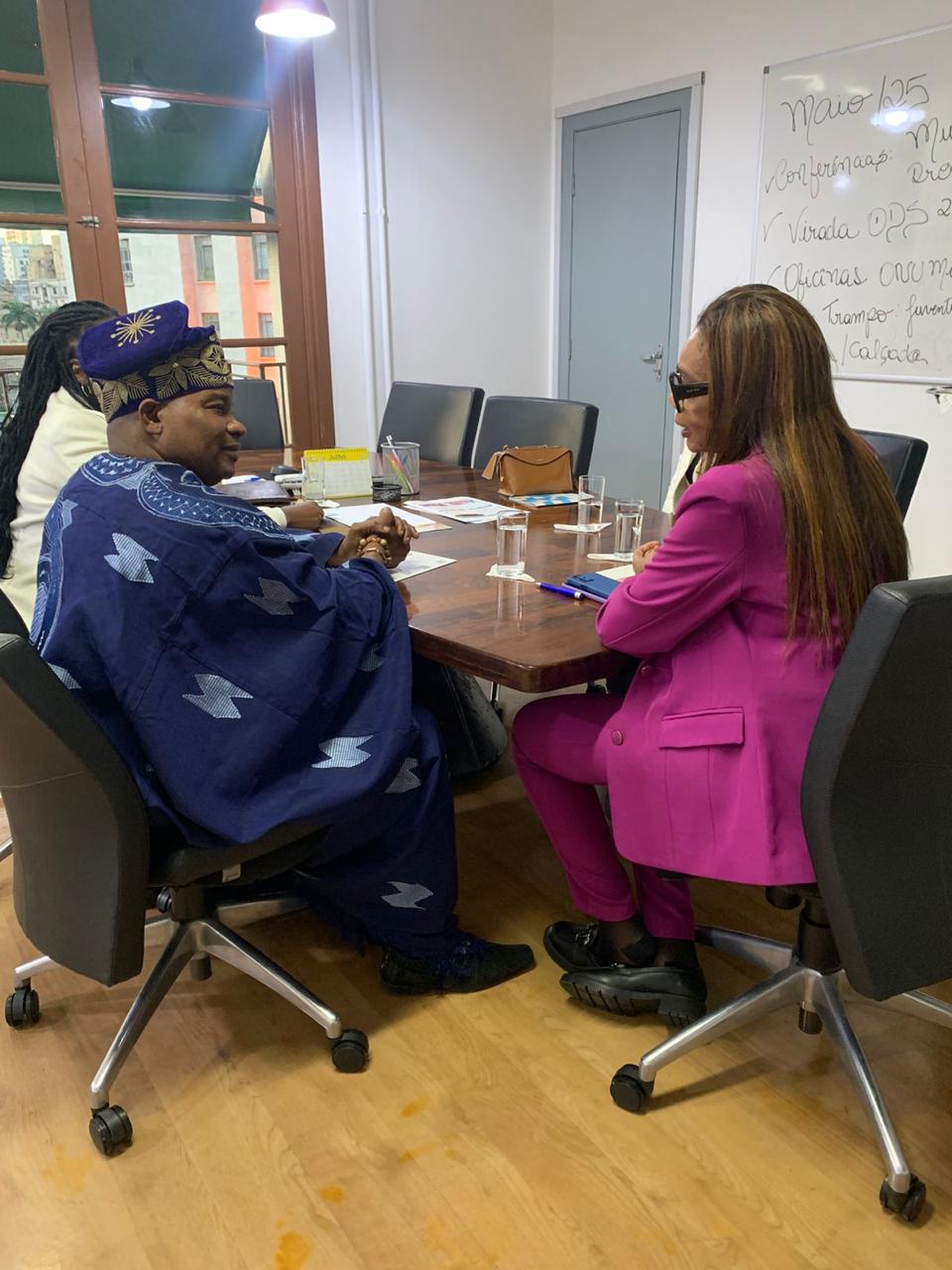 Entregar do prêmio África Brasil para Adekunle em seu escritório no Palácio de Justiça do Estado de São Paulo