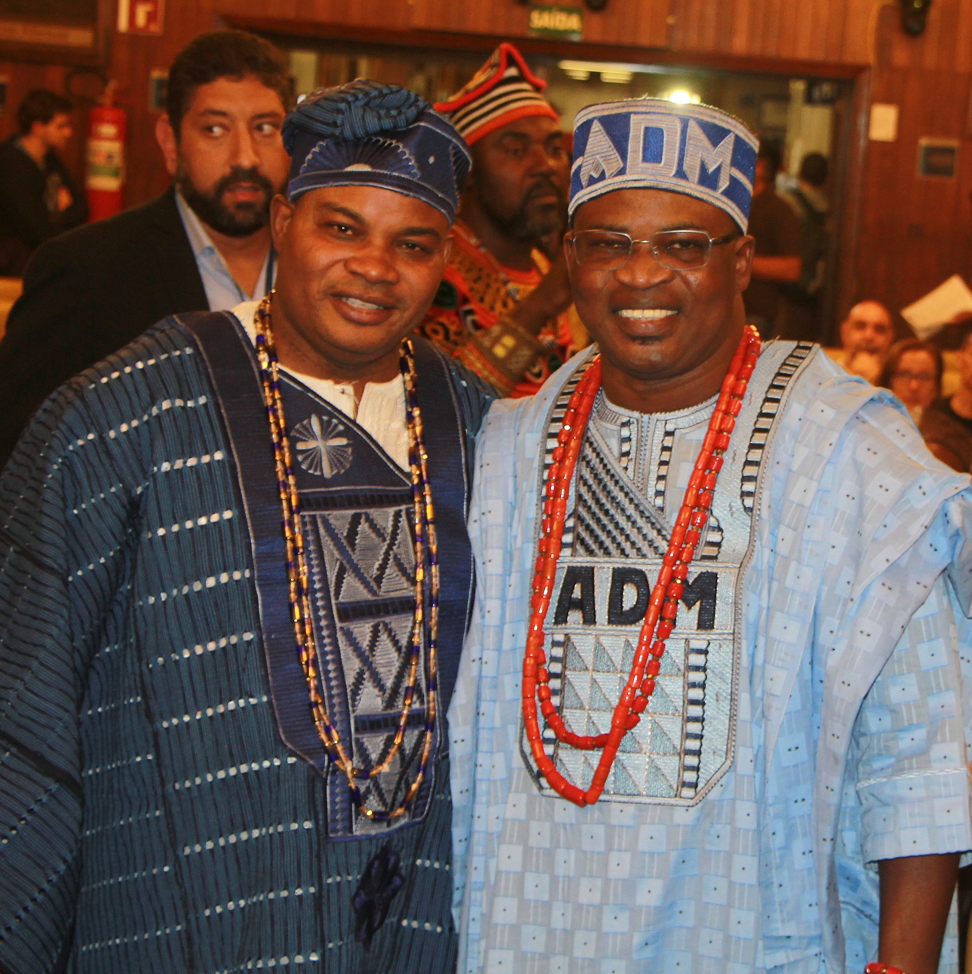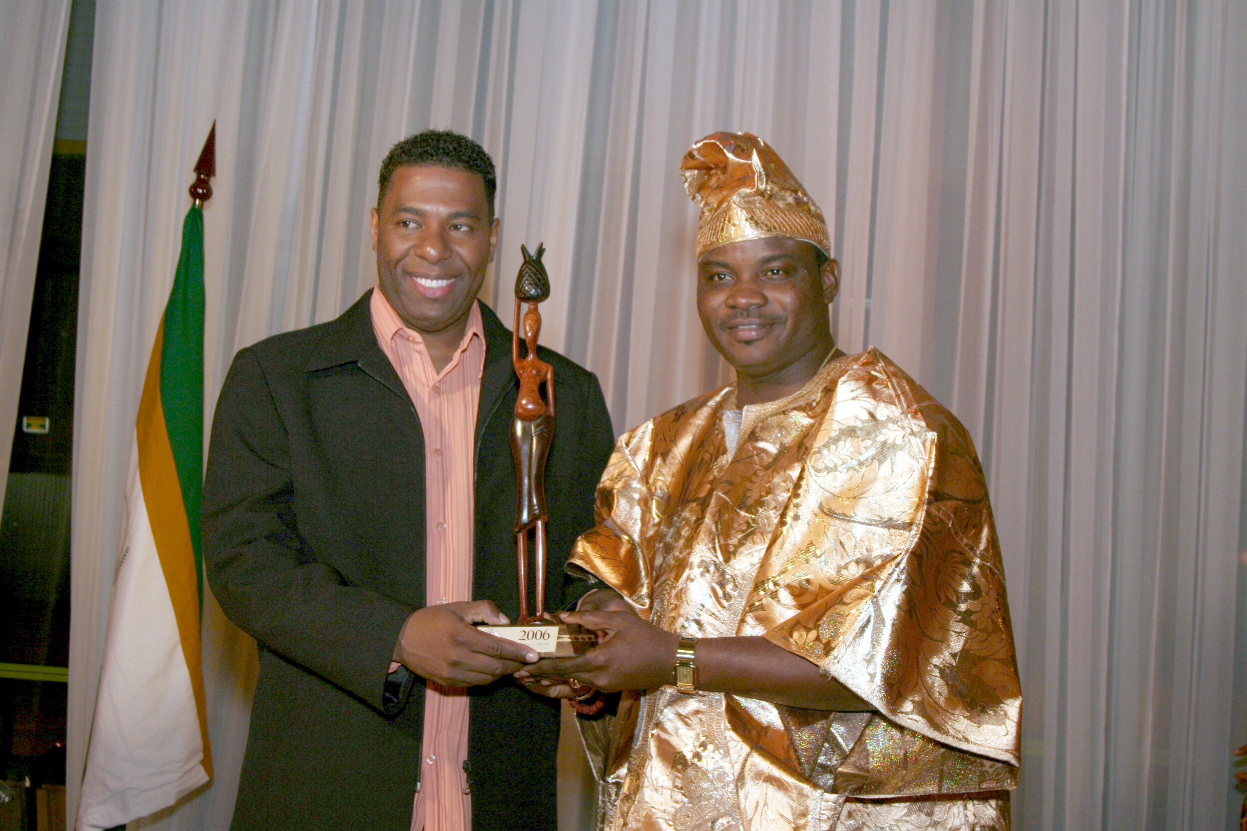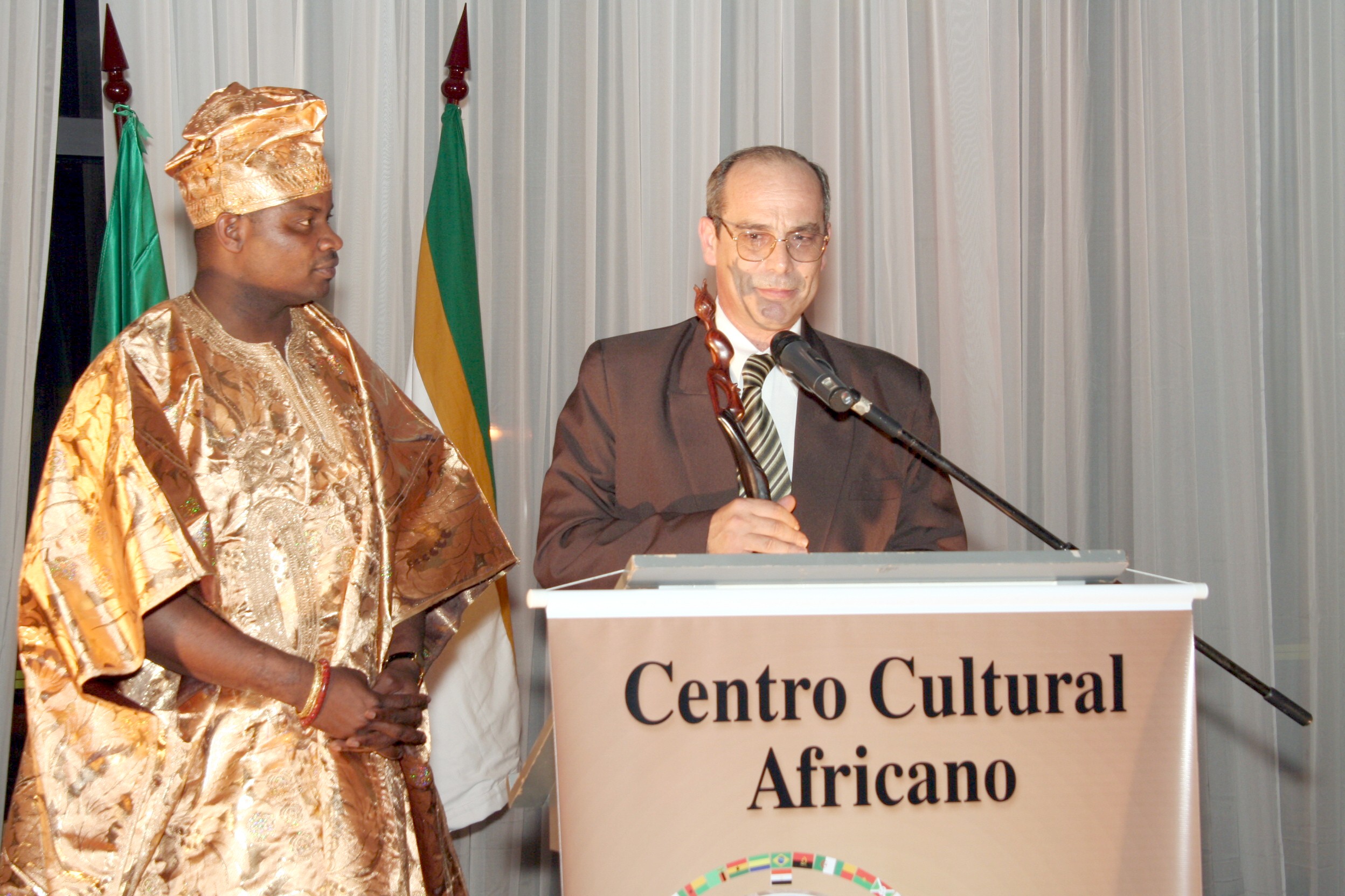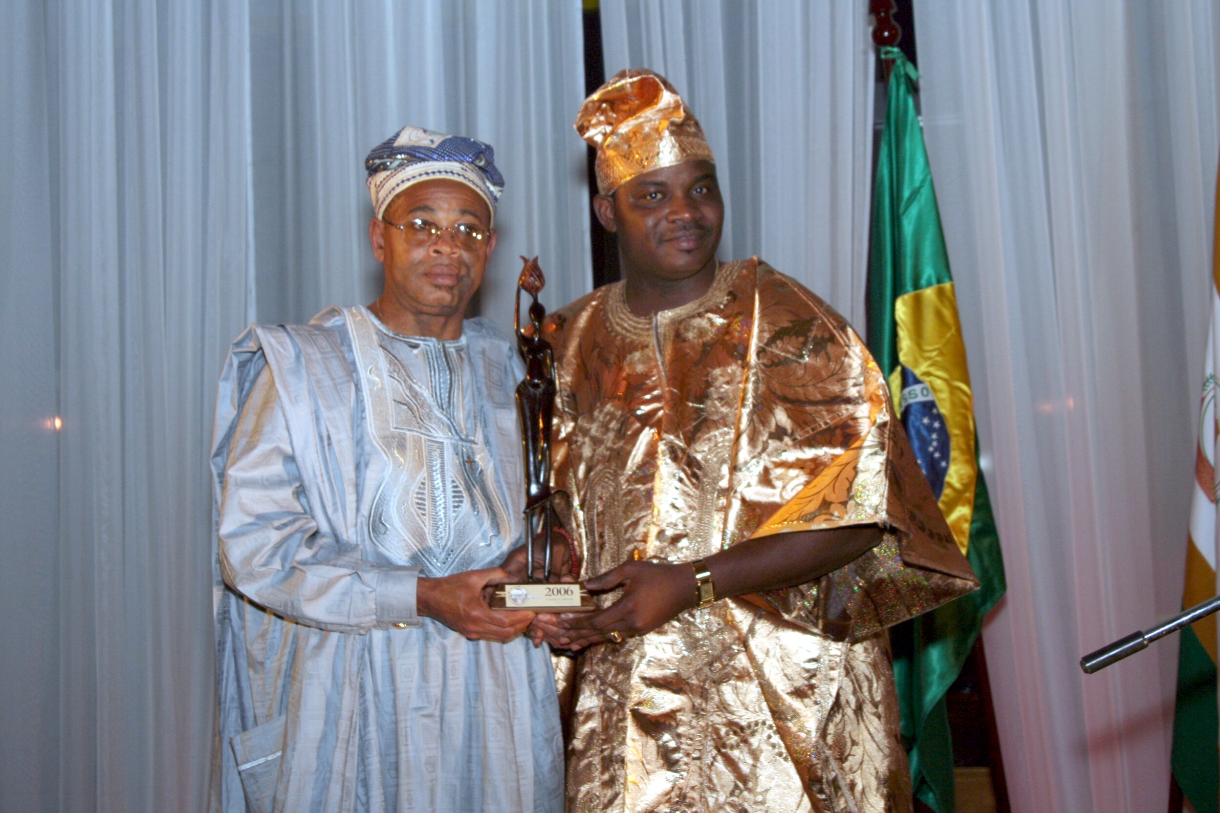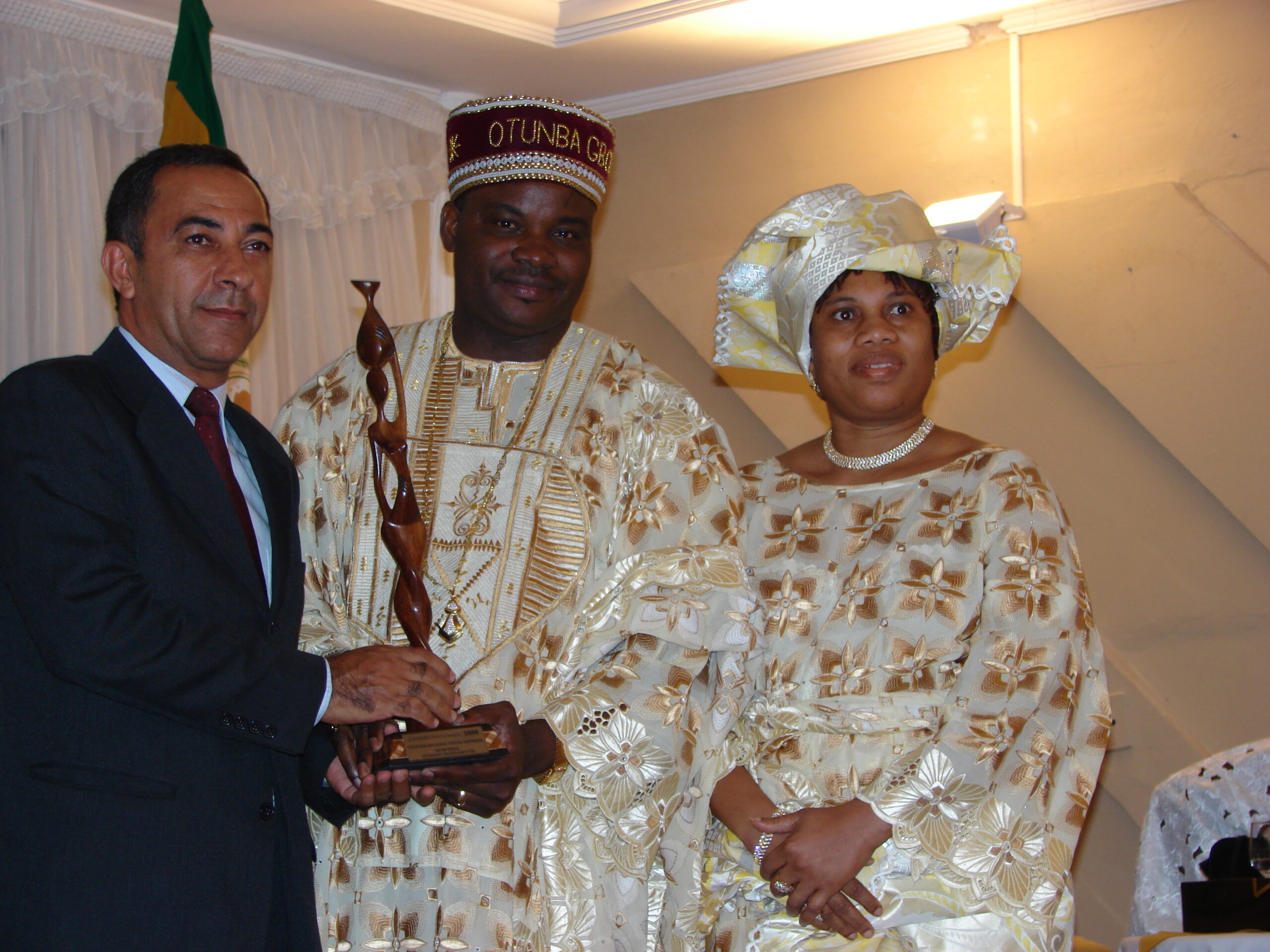Entregar do prêmio África Brasil para Adekunle em seu escritório no Palácio de Justiça do Estado de São Paulo