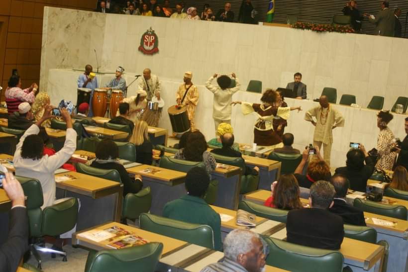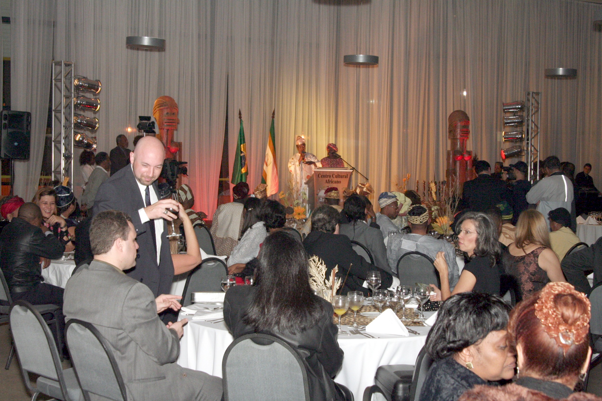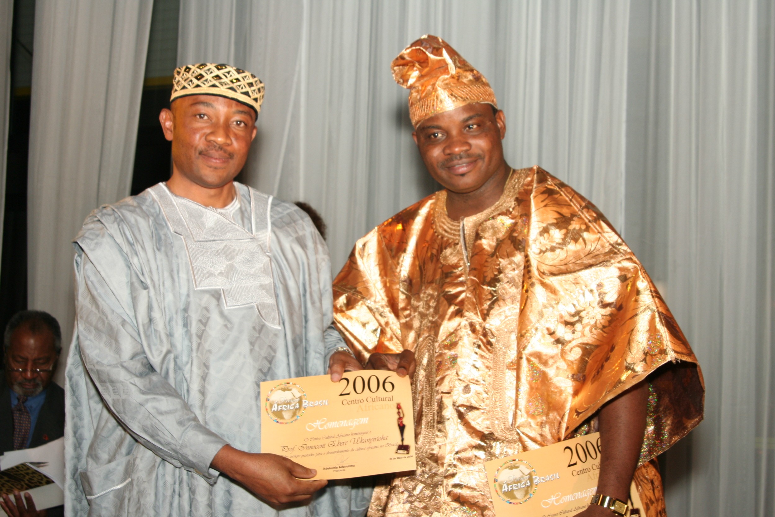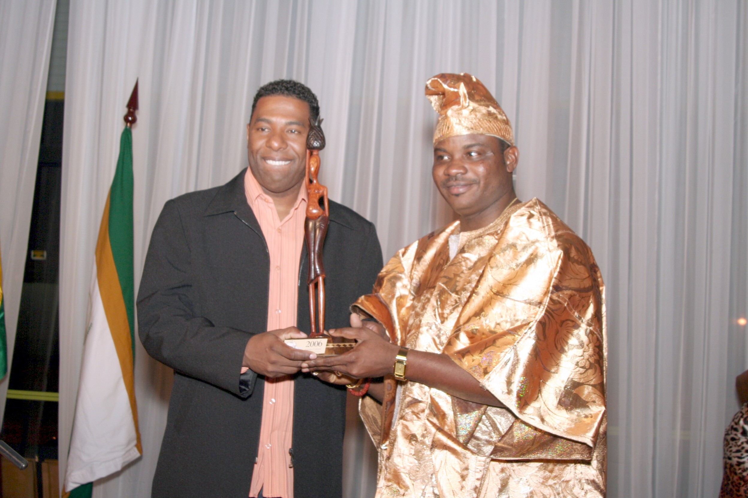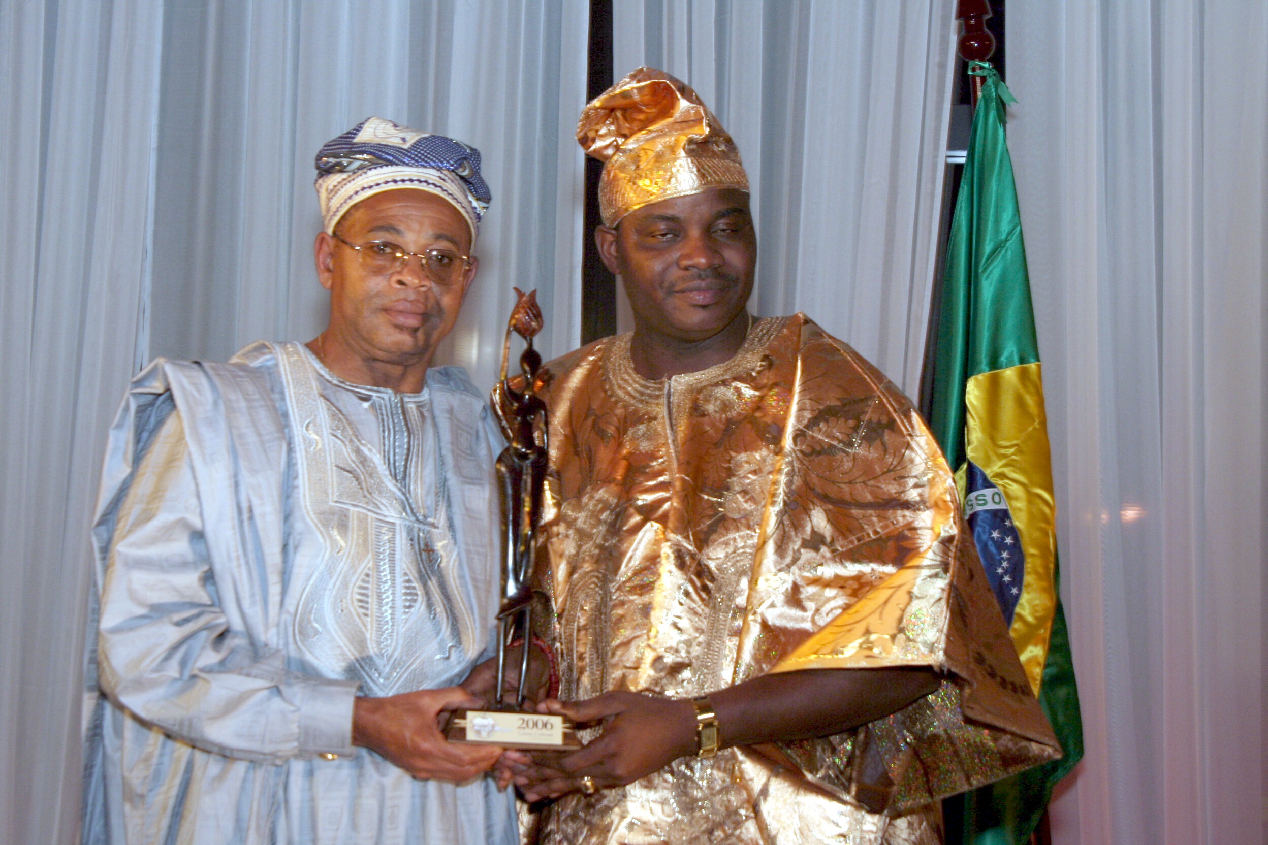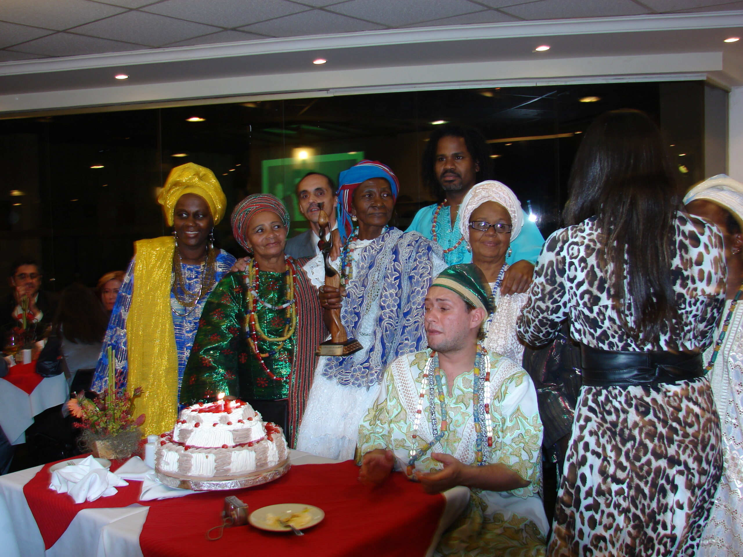 Entregar do prêmio África Brasil para Adekunle em seu escritório no Palácio de Justiça do Estado de São Paulo