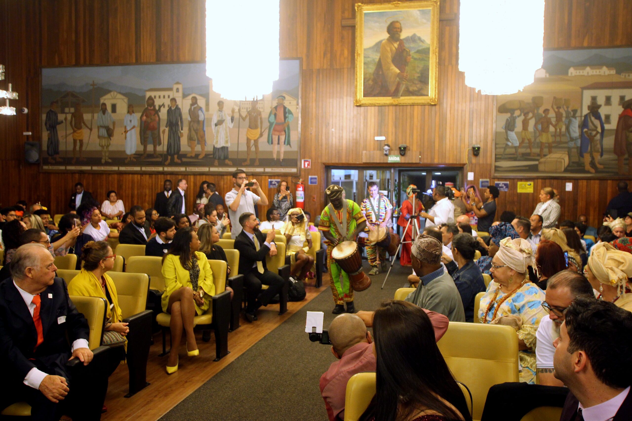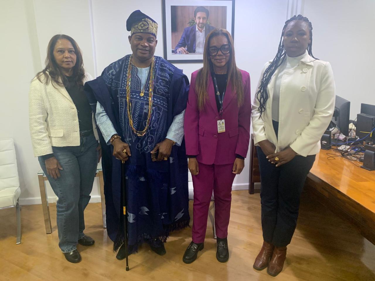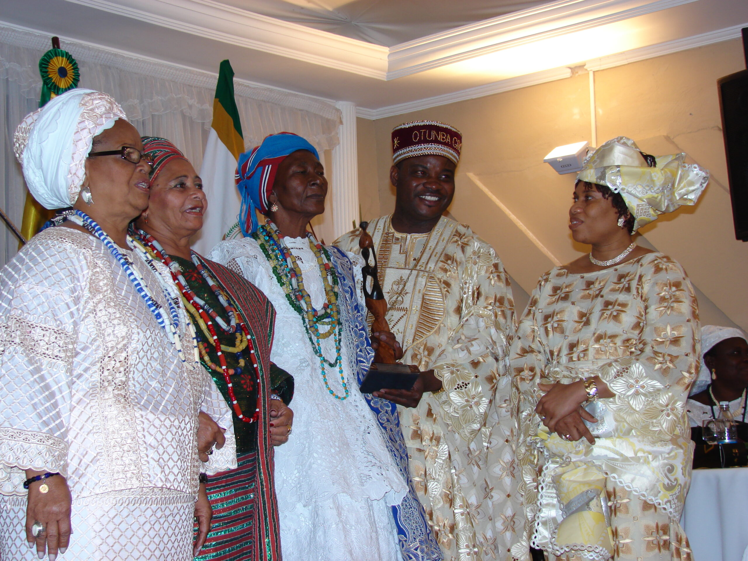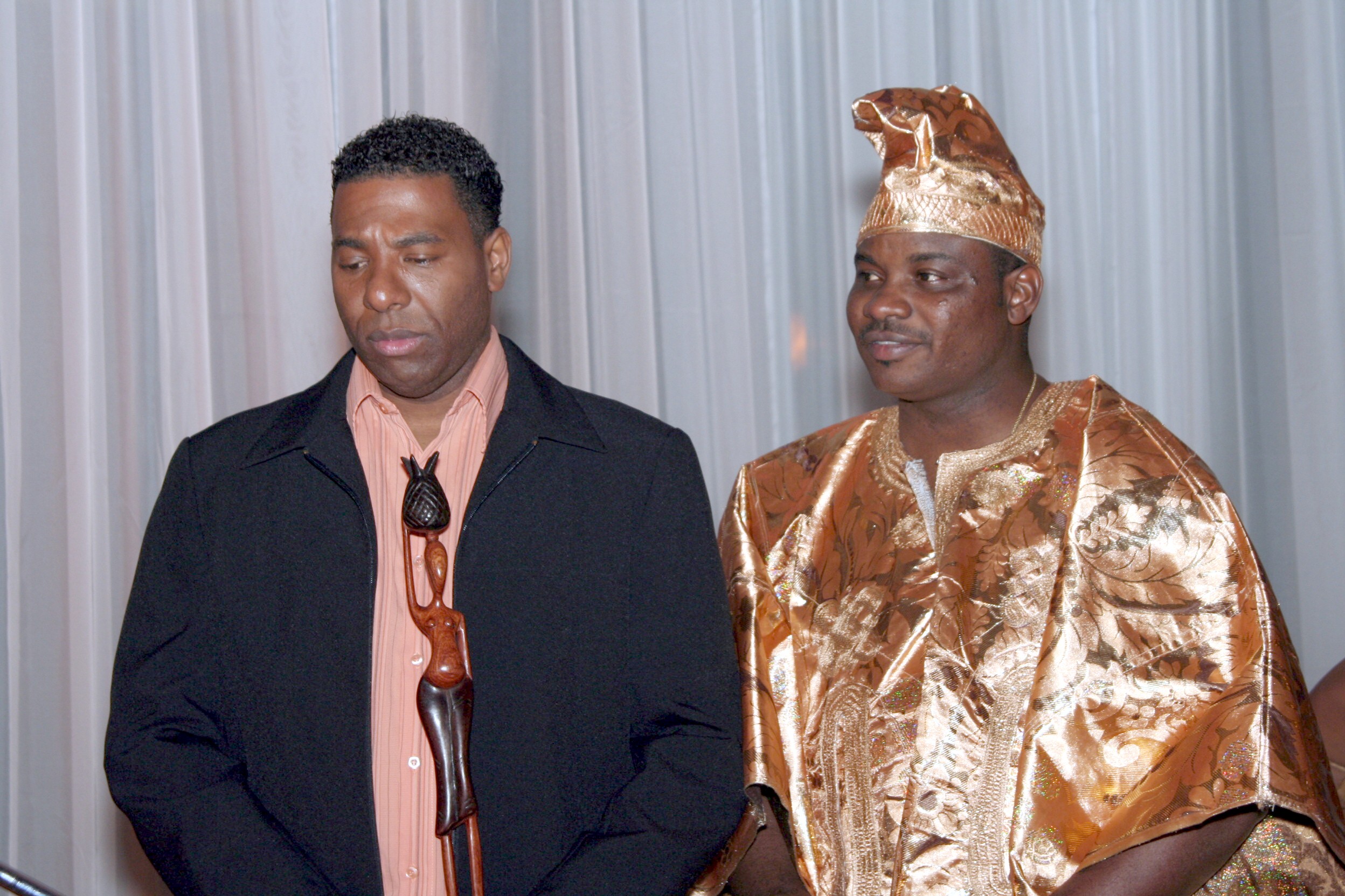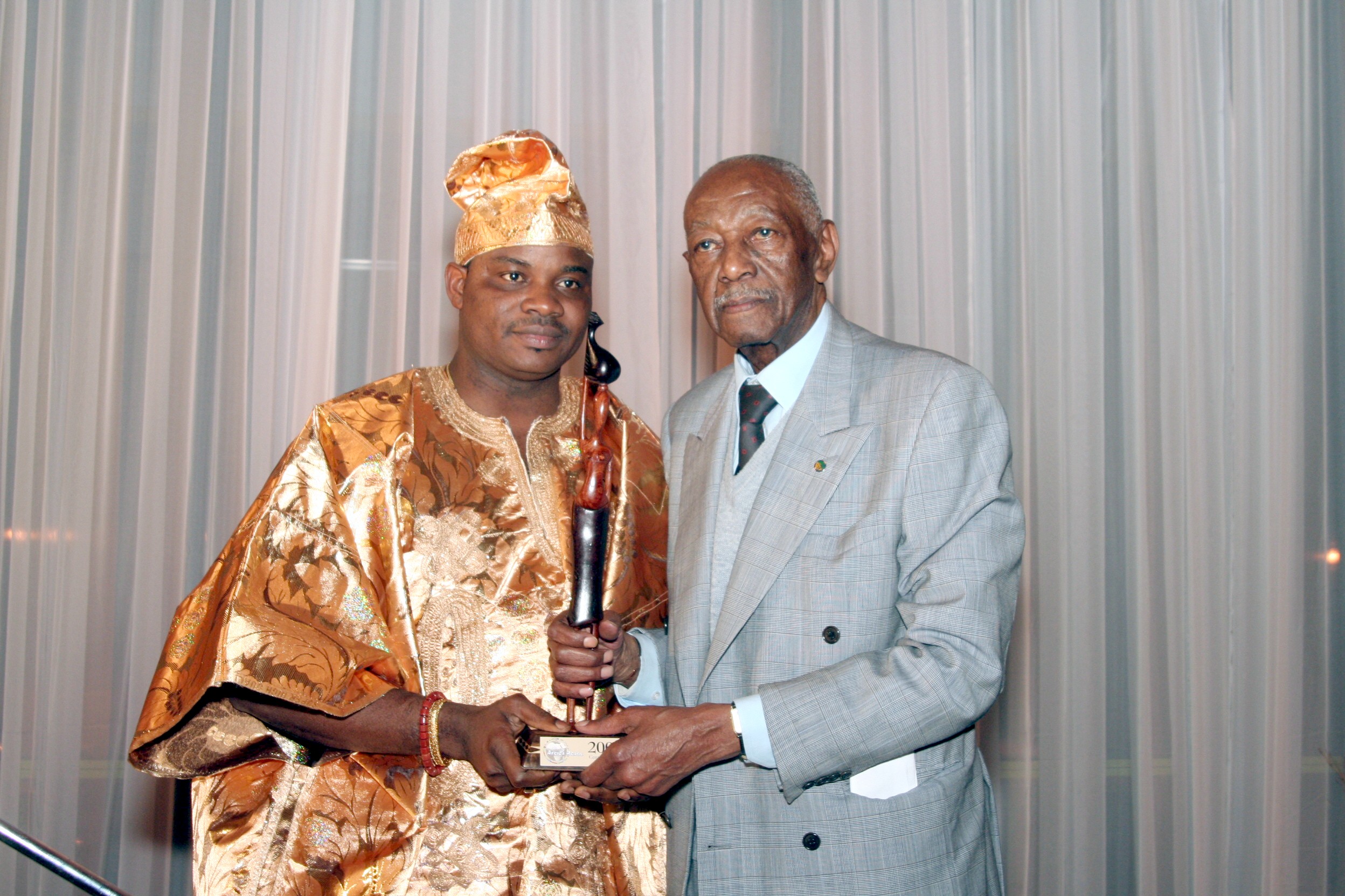 Entregar do prêmio África Brasil para Adekunle em seu escritório no Palácio de Justiça do Estado de São Paulo