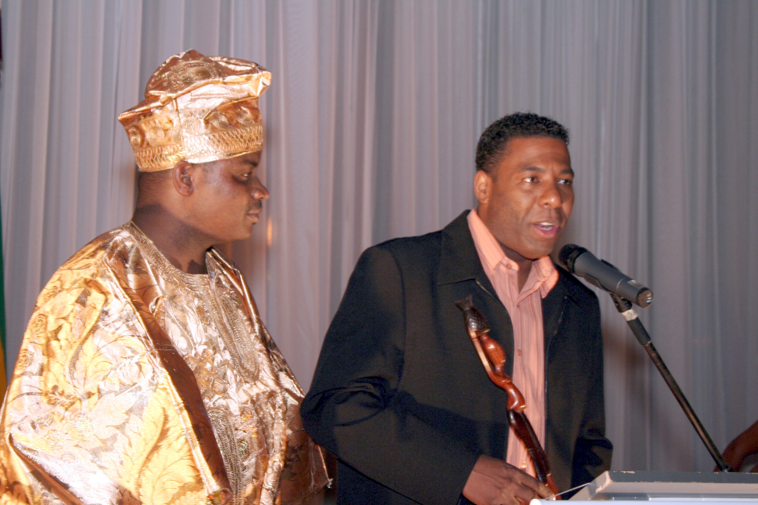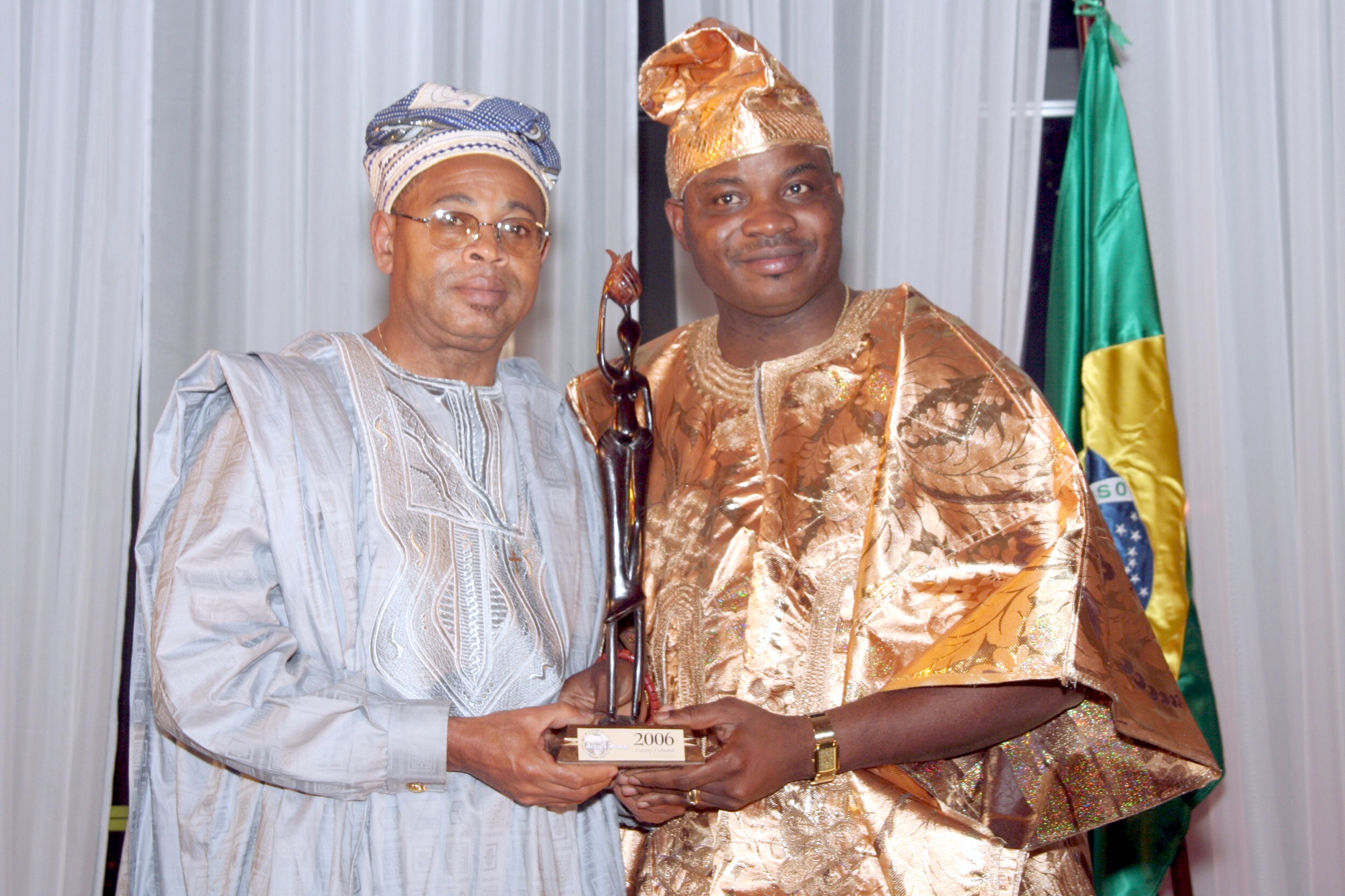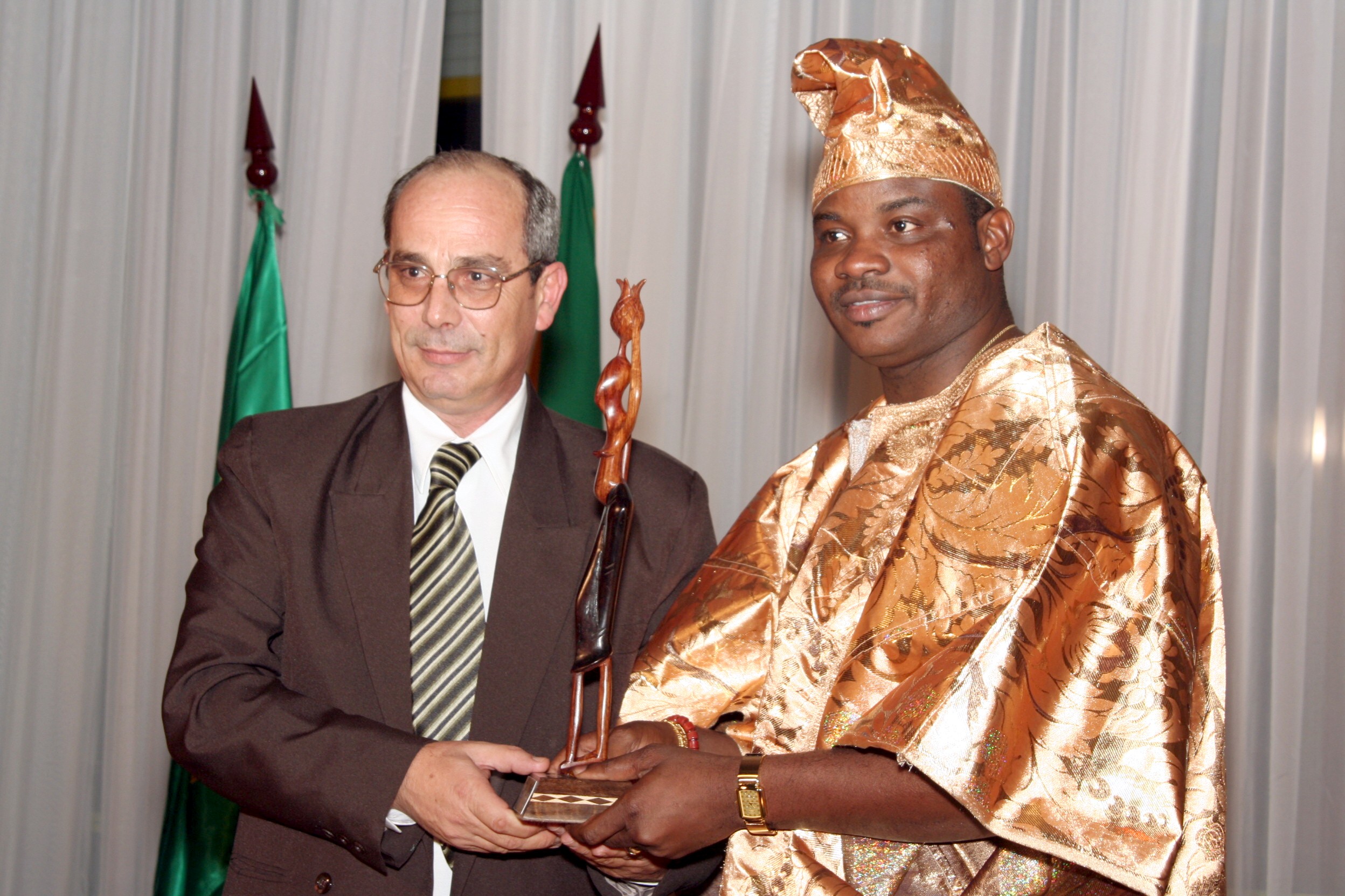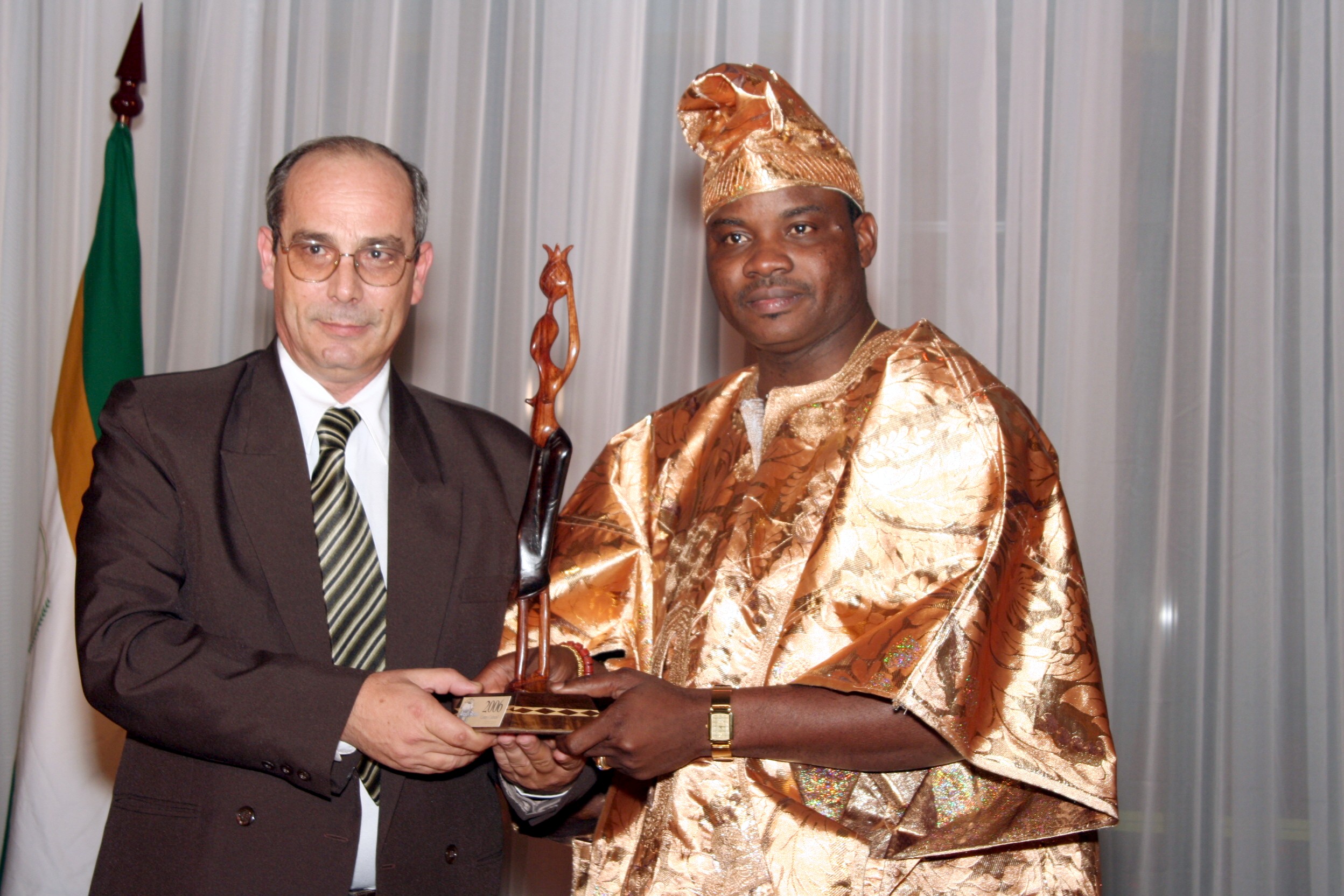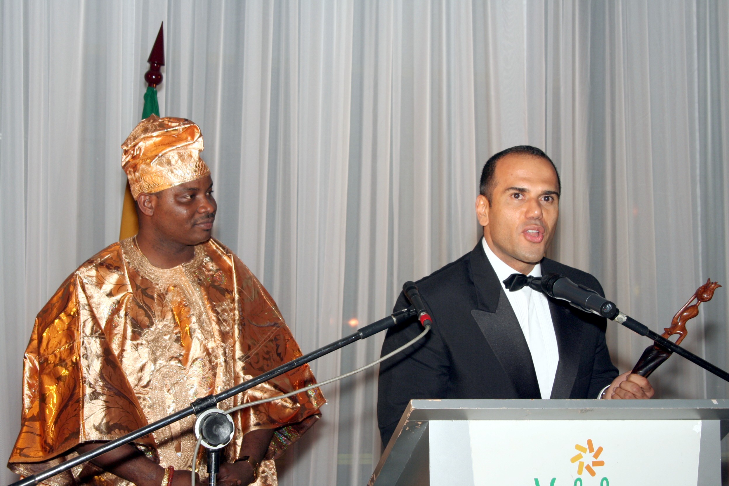 Entregar do prêmio África Brasil para Adekunle em seu escritório no Palácio de Justiça do Estado de São Paulo