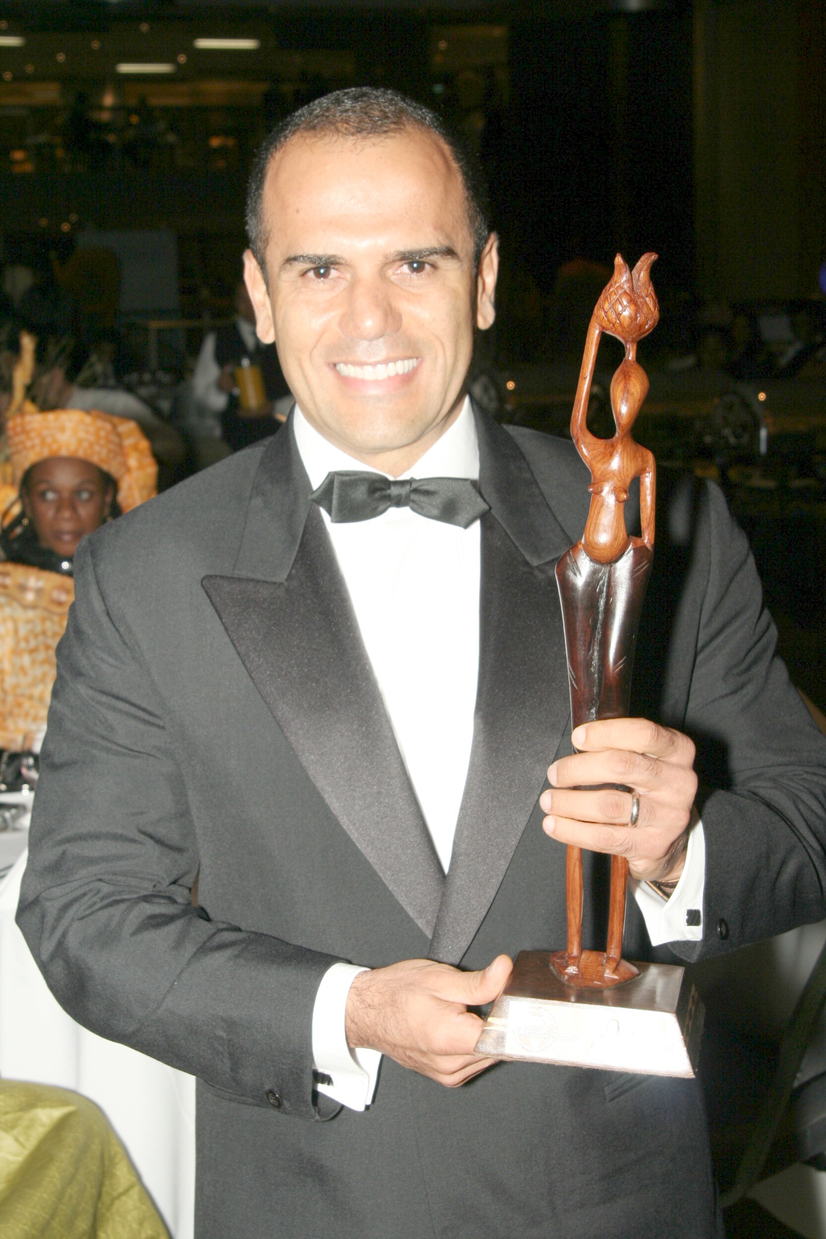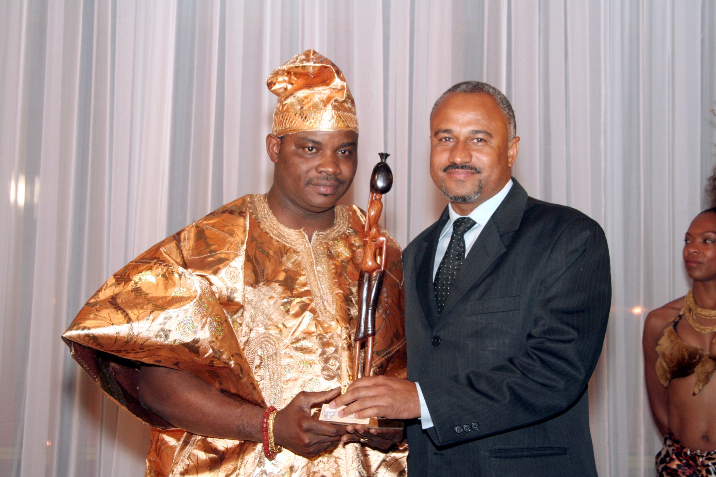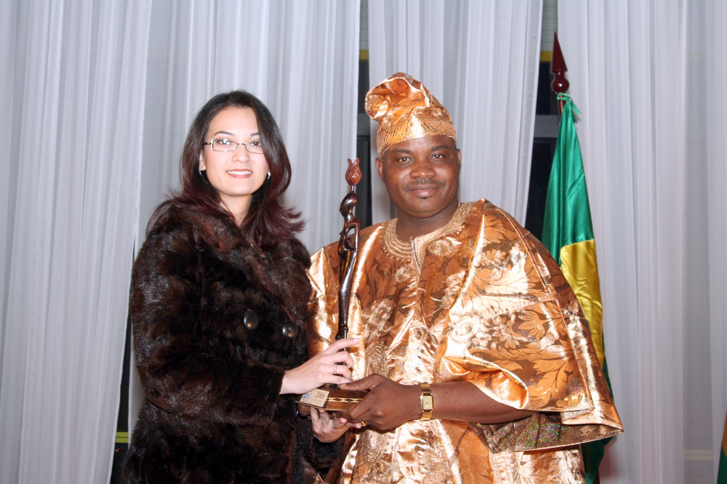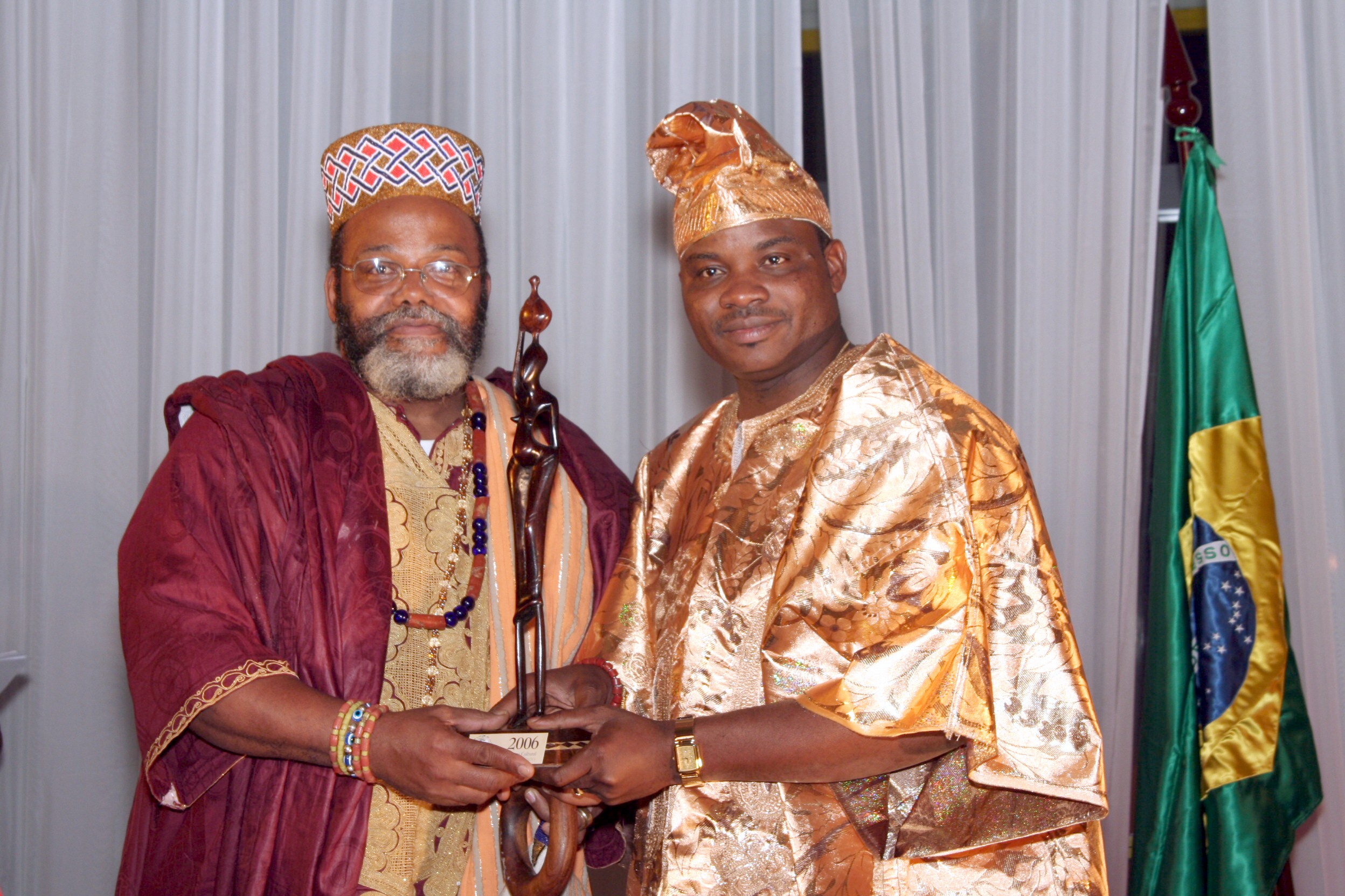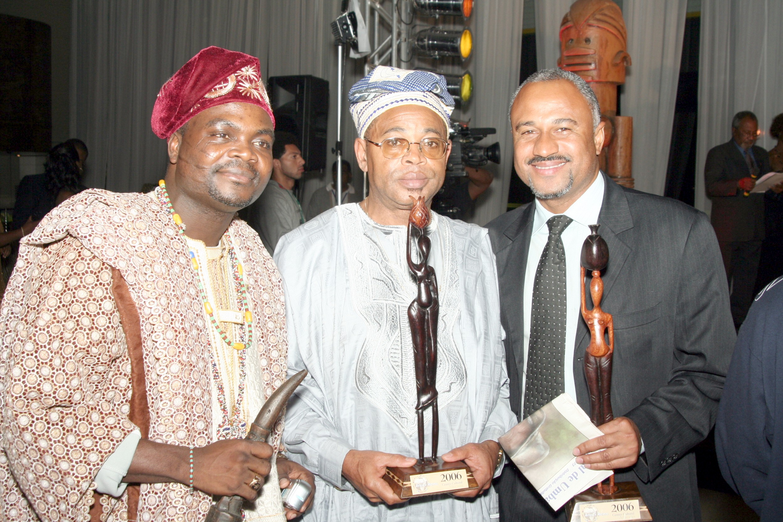Entregar do prêmio África Brasil para Adekunle em seu escritório no Palácio de Justiça do Estado de São Paulo