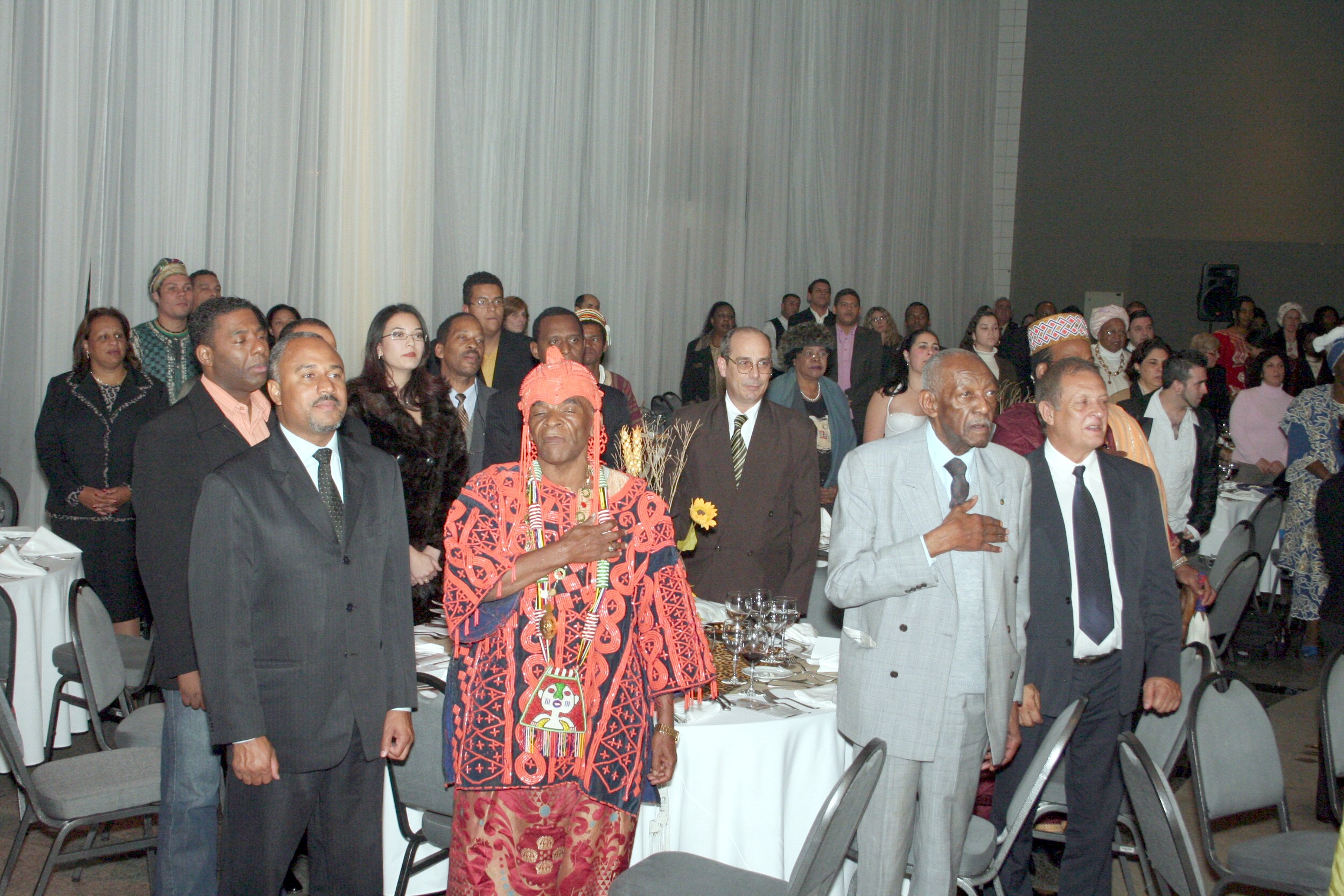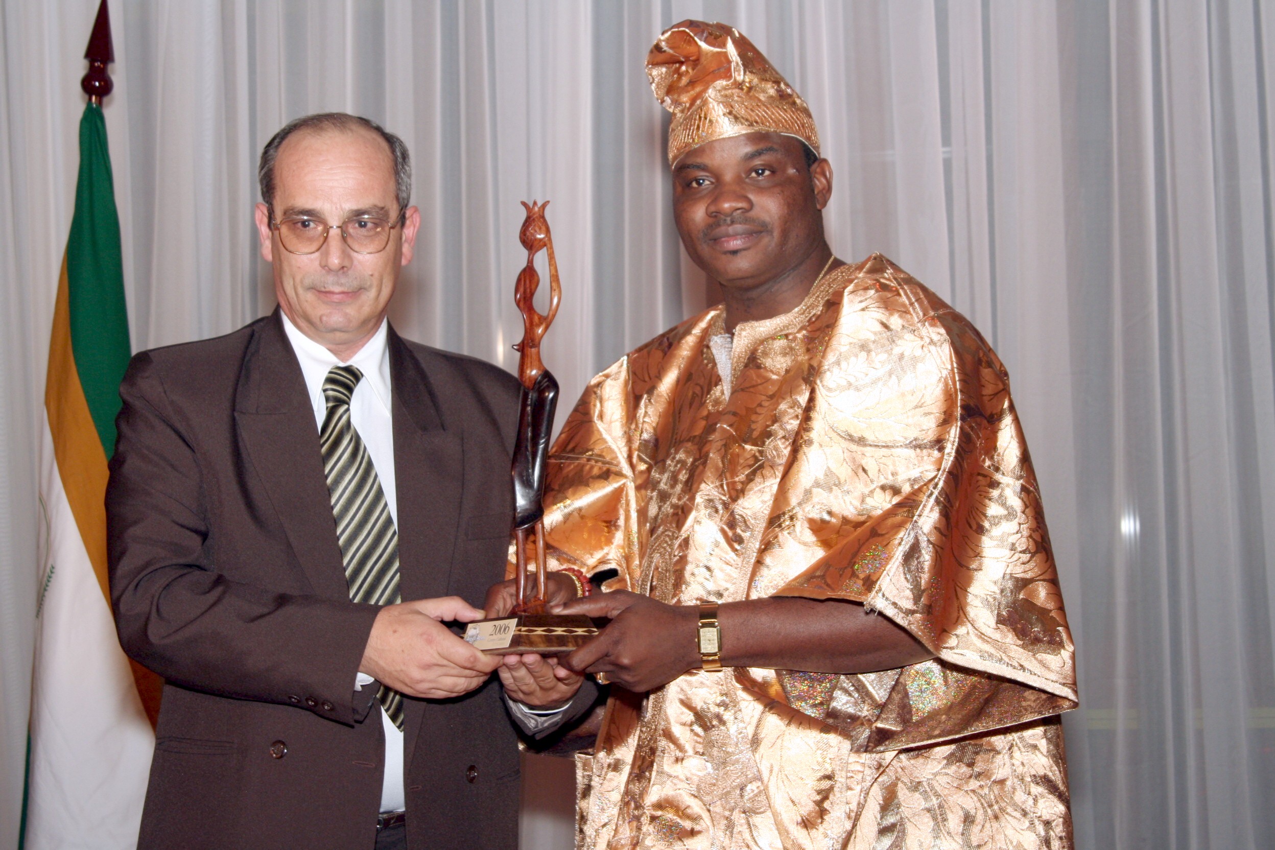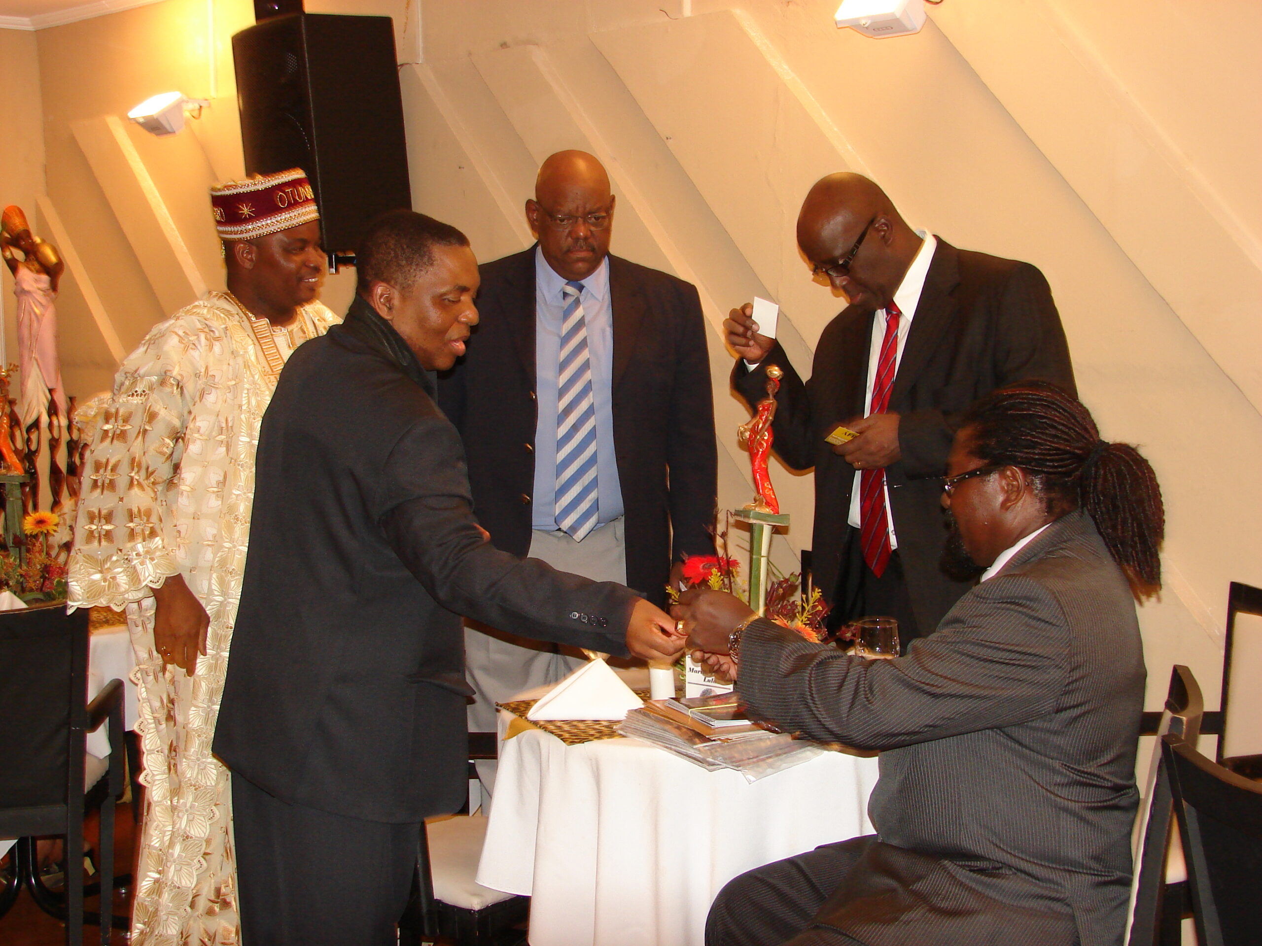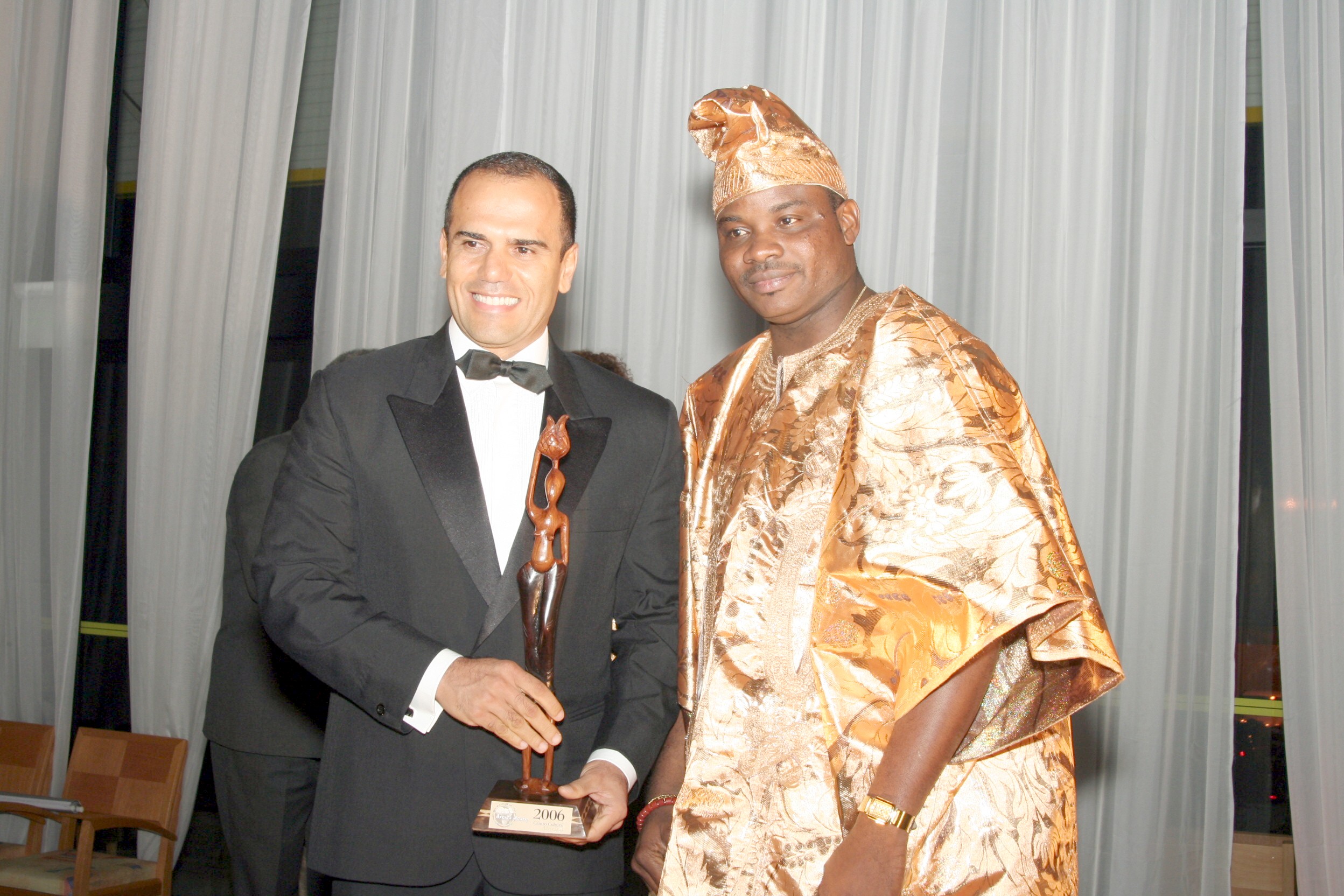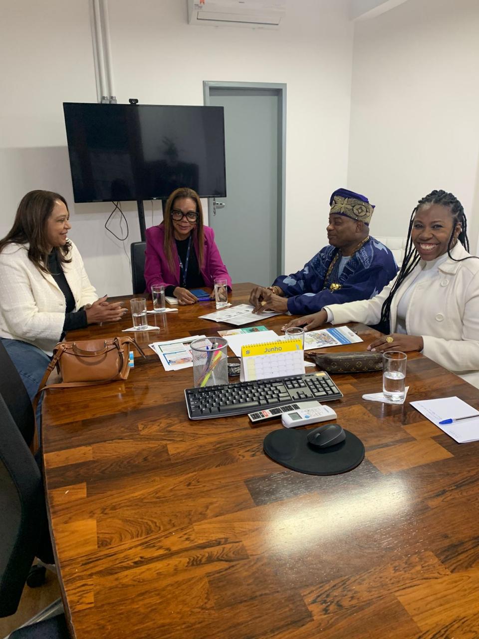 Entregar do prêmio África Brasil para Adekunle em seu escritório no Palácio de Justiça do Estado de São Paulo