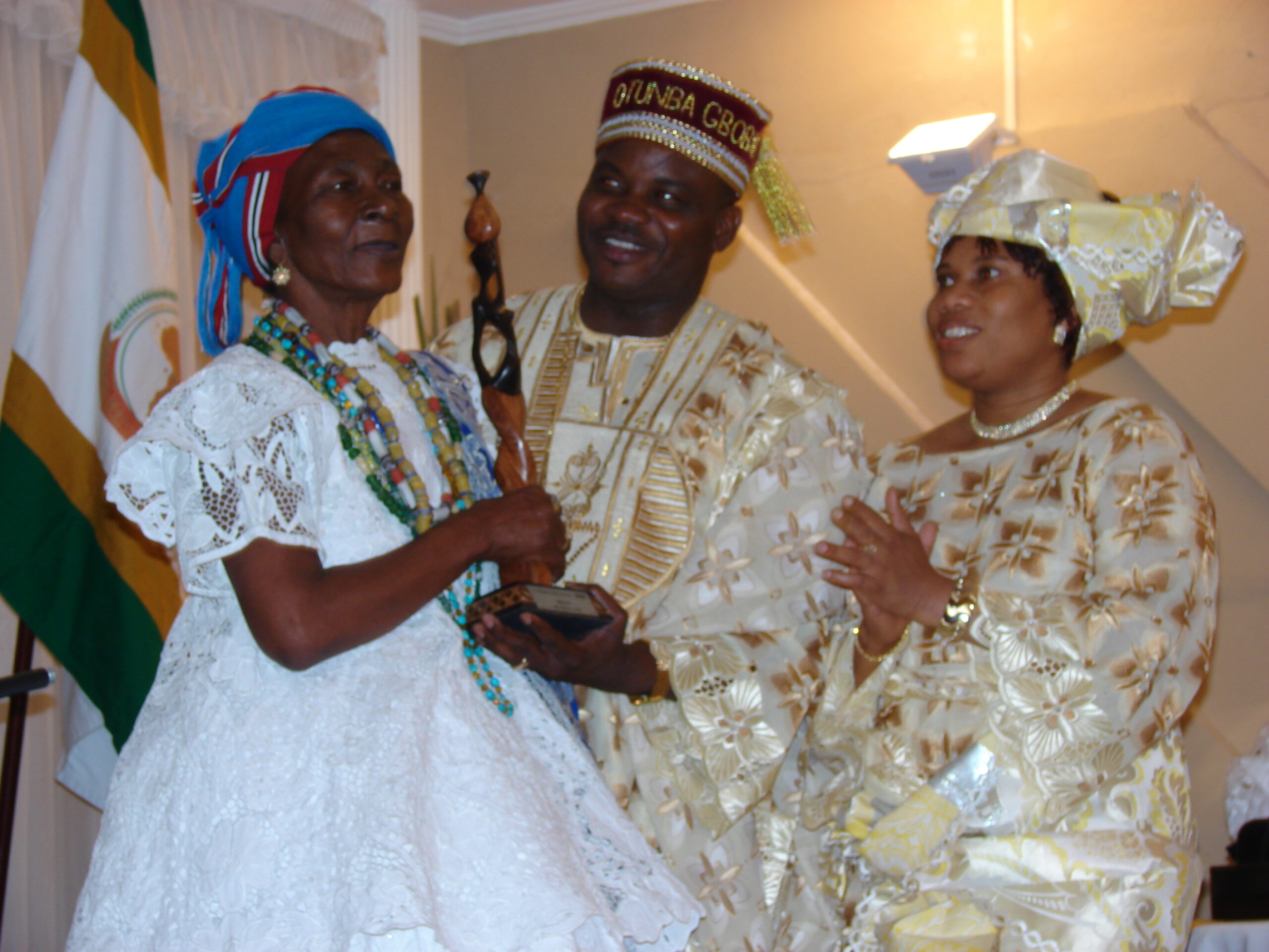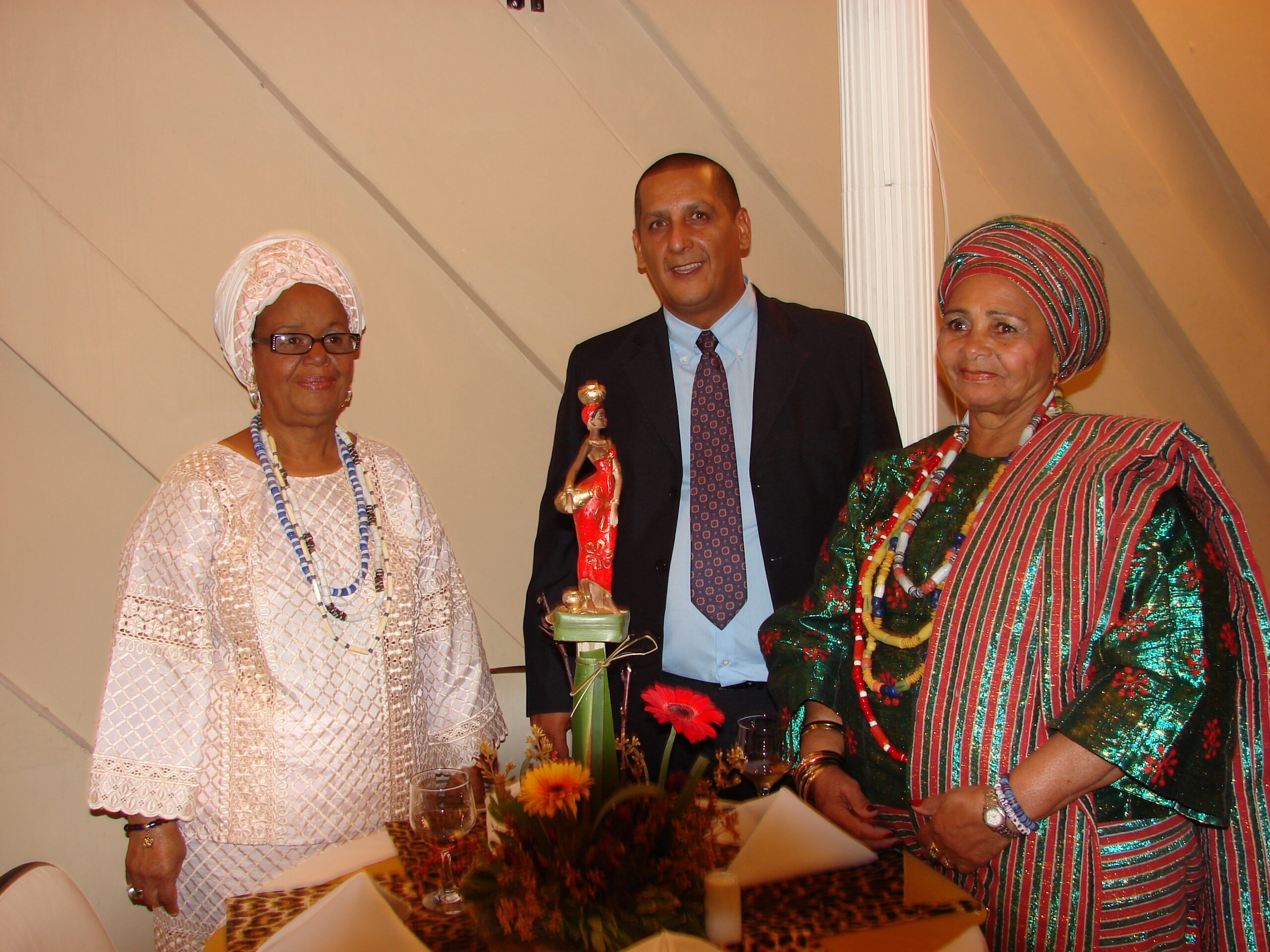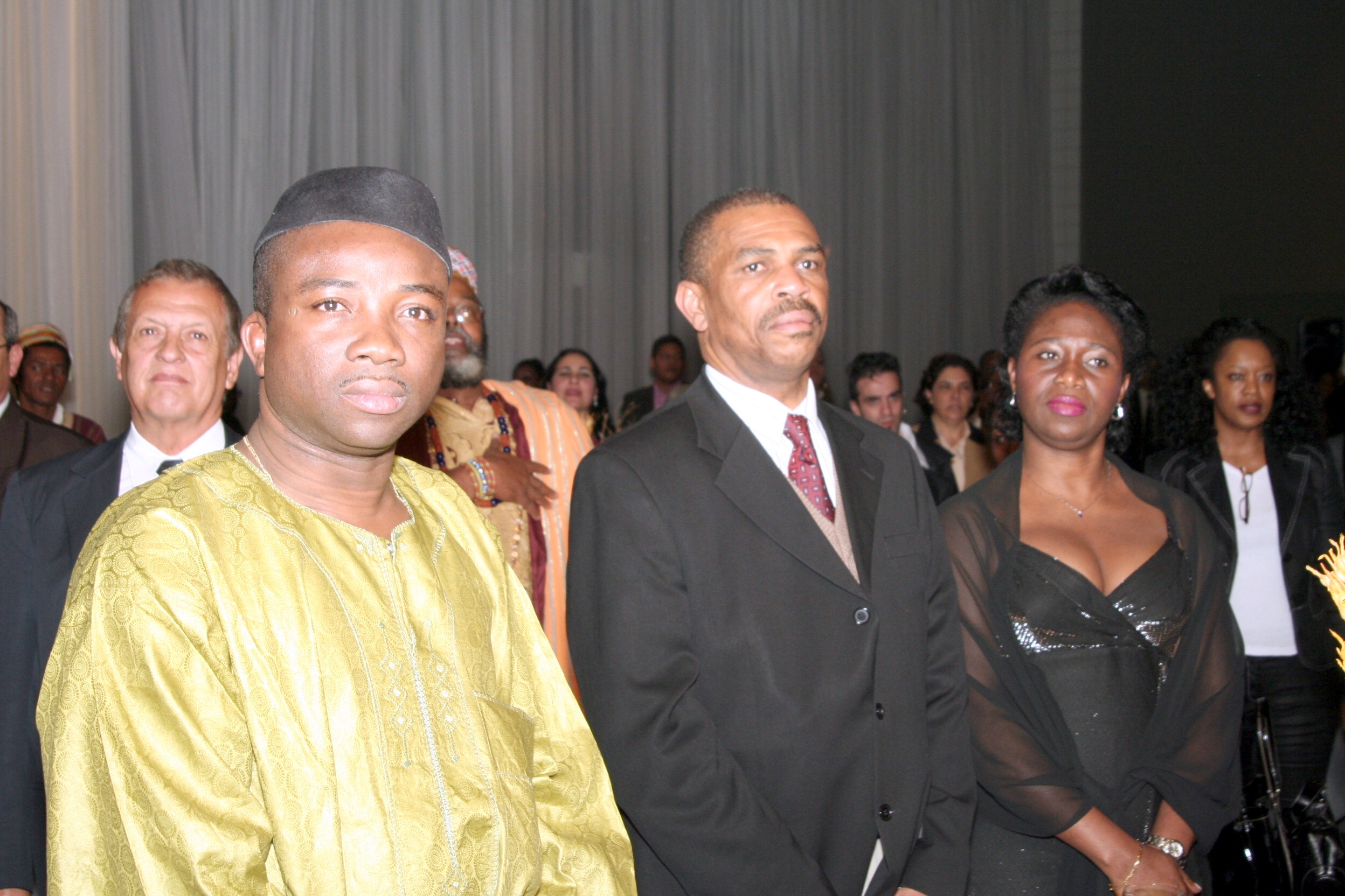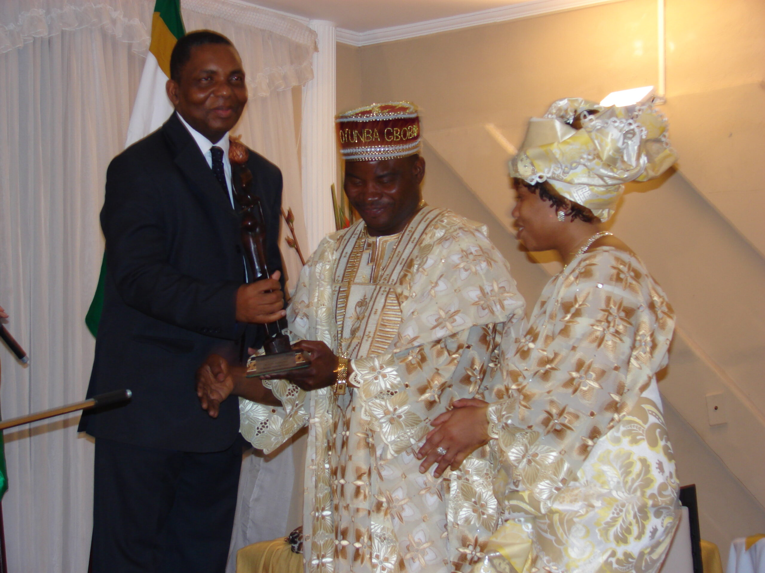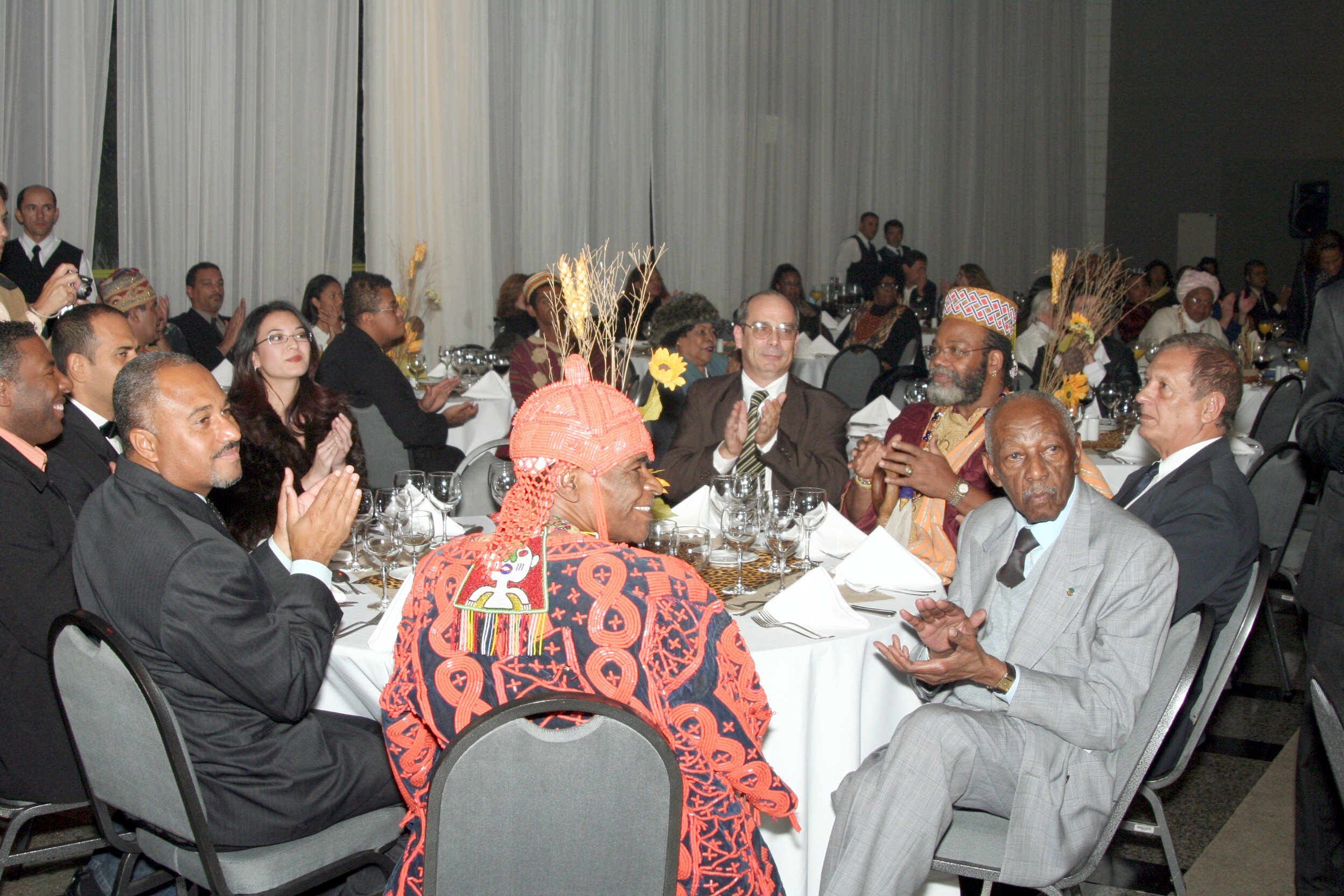 Entregar do prêmio África Brasil para Adekunle em seu escritório no Palácio de Justiça do Estado de São Paulo