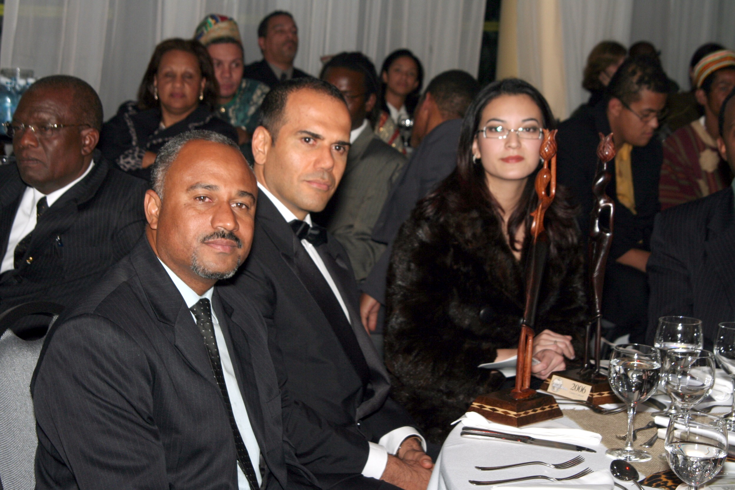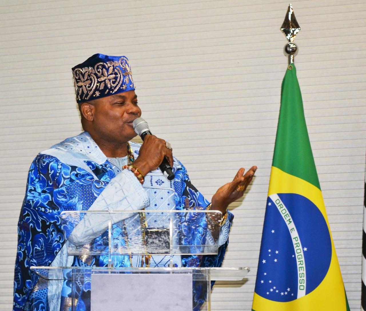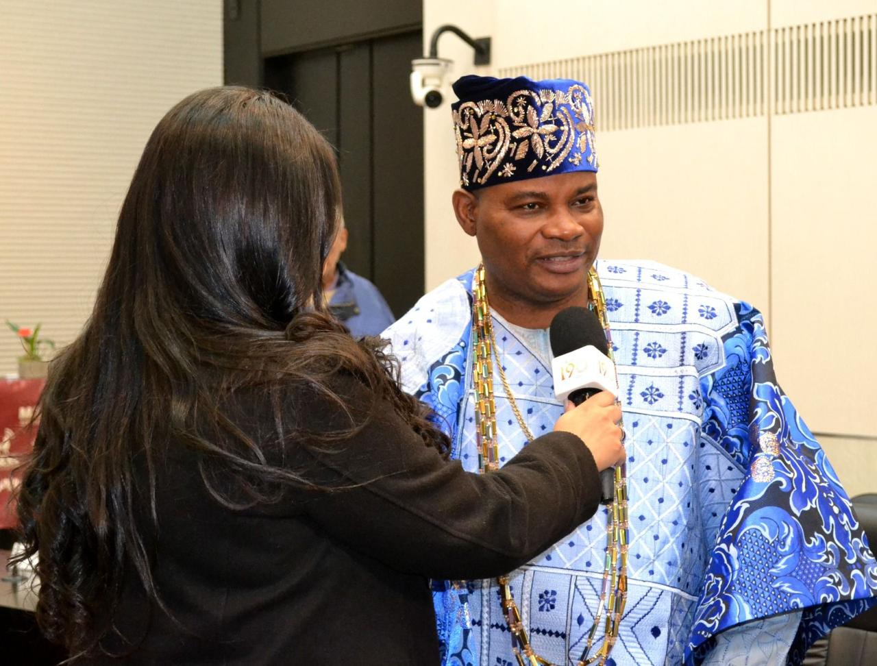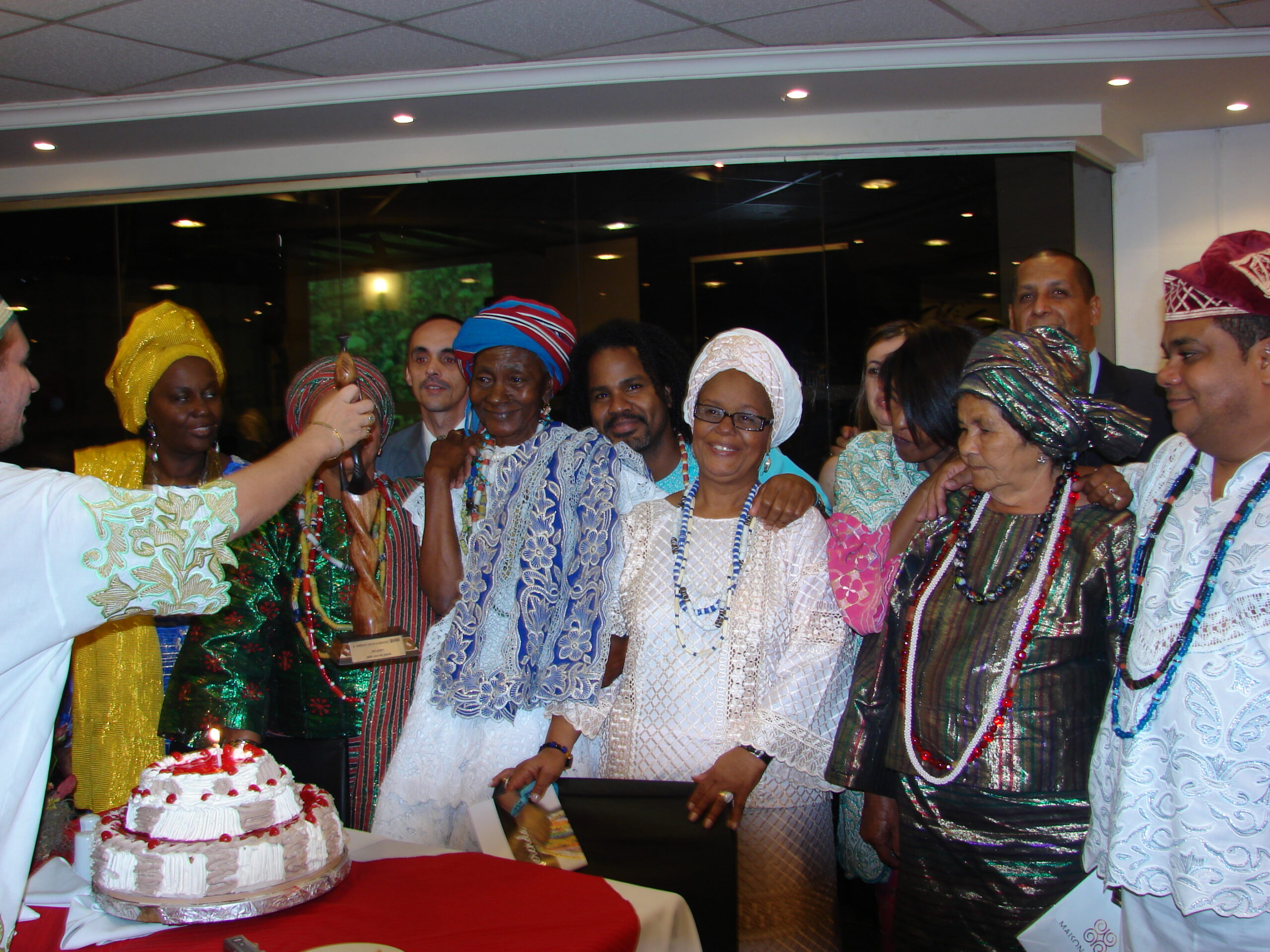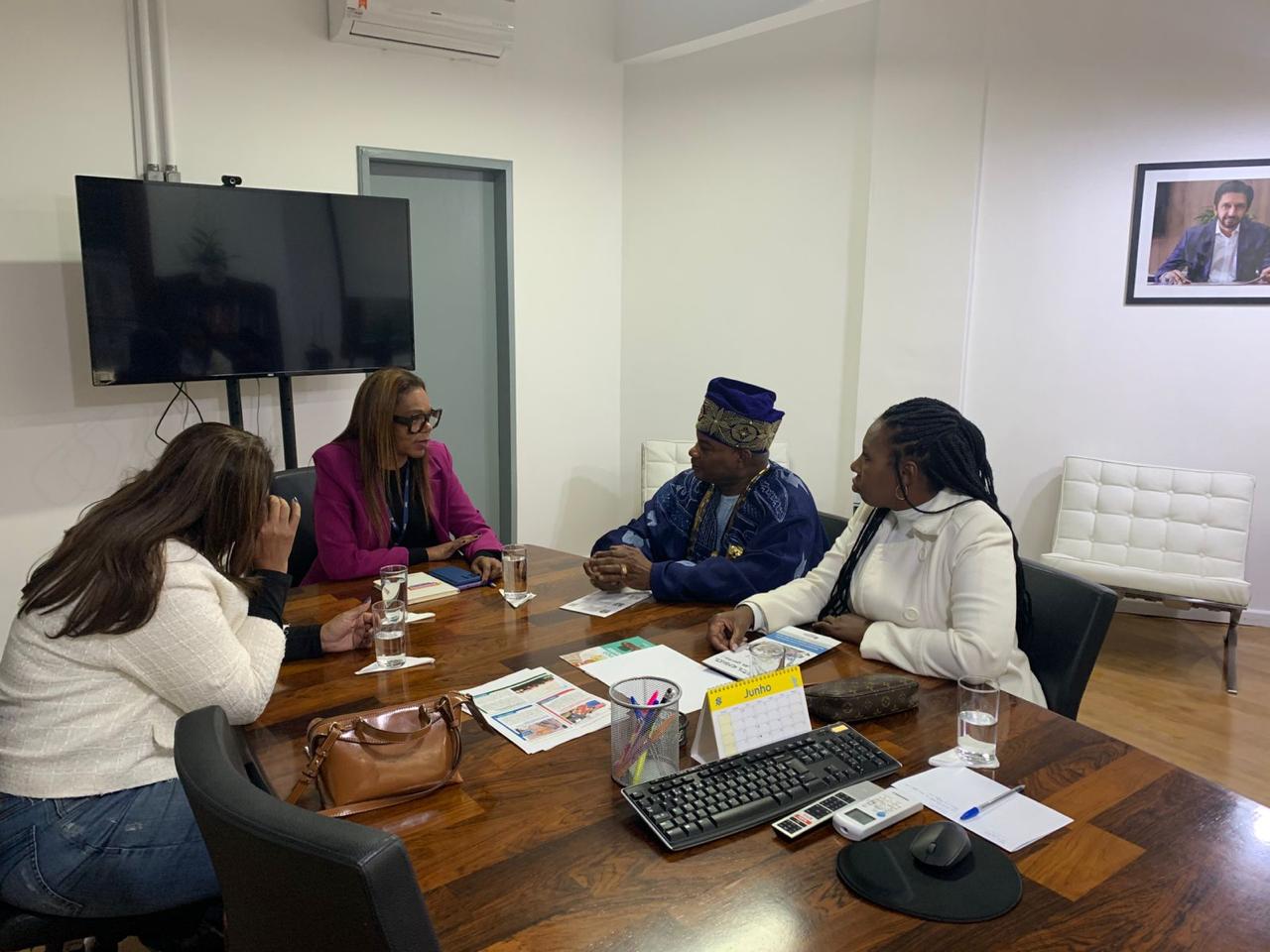 Entregar do prêmio África Brasil para Adekunle em seu escritório no Palácio de Justiça do Estado de São Paulo