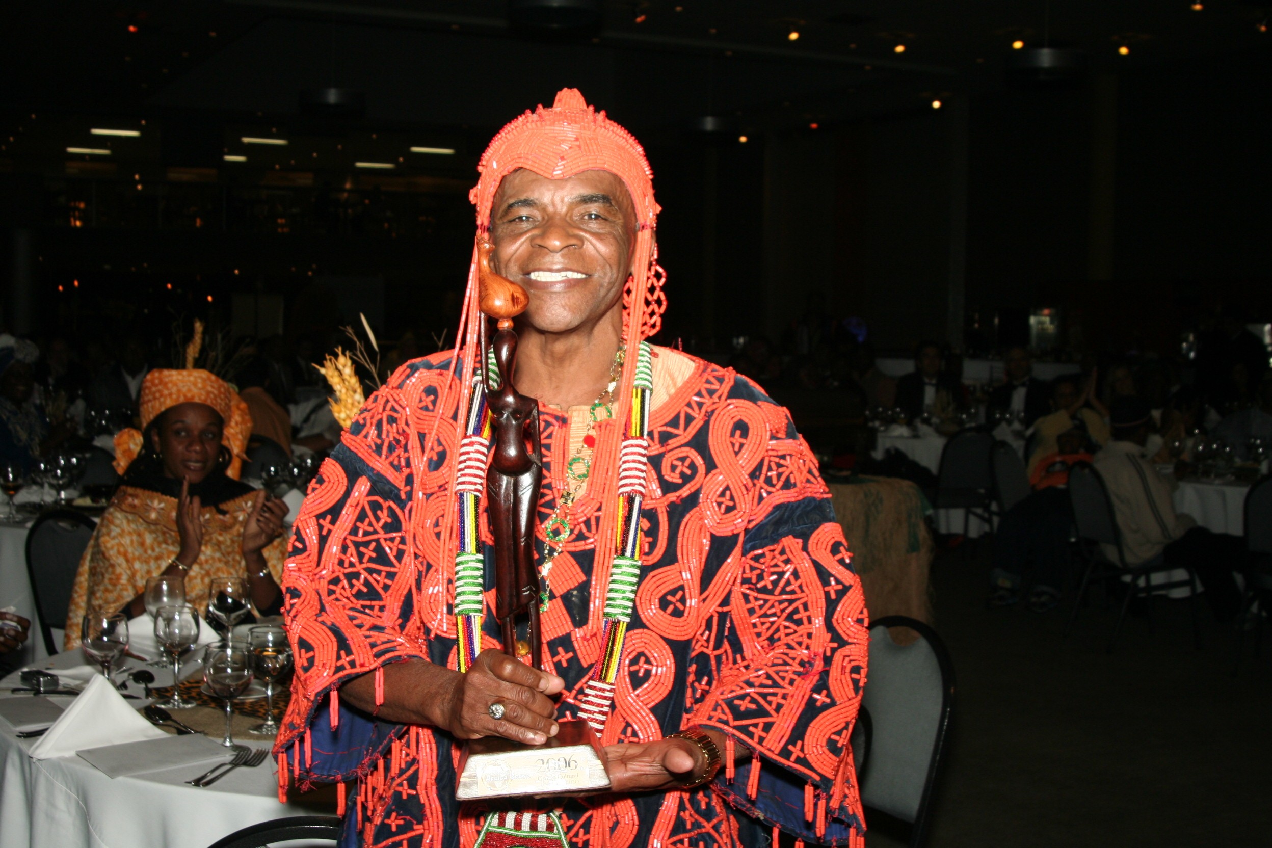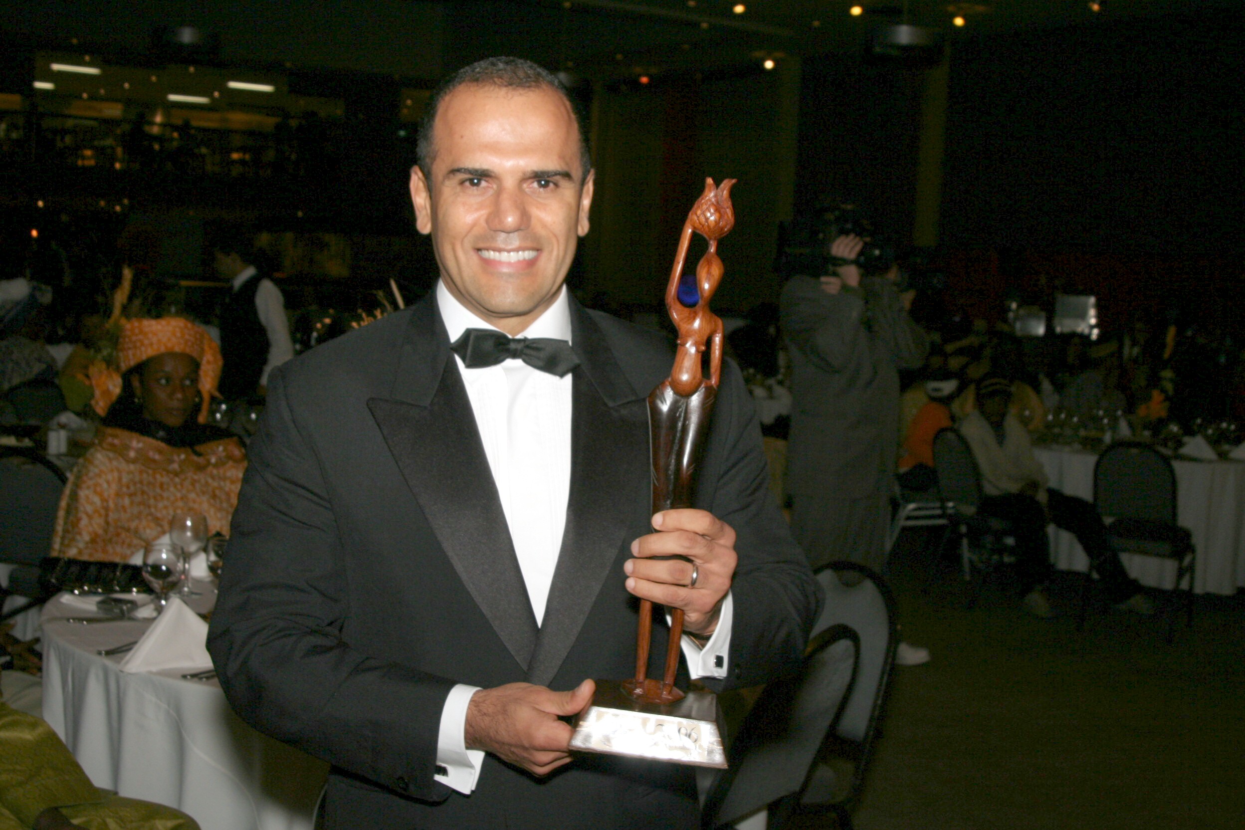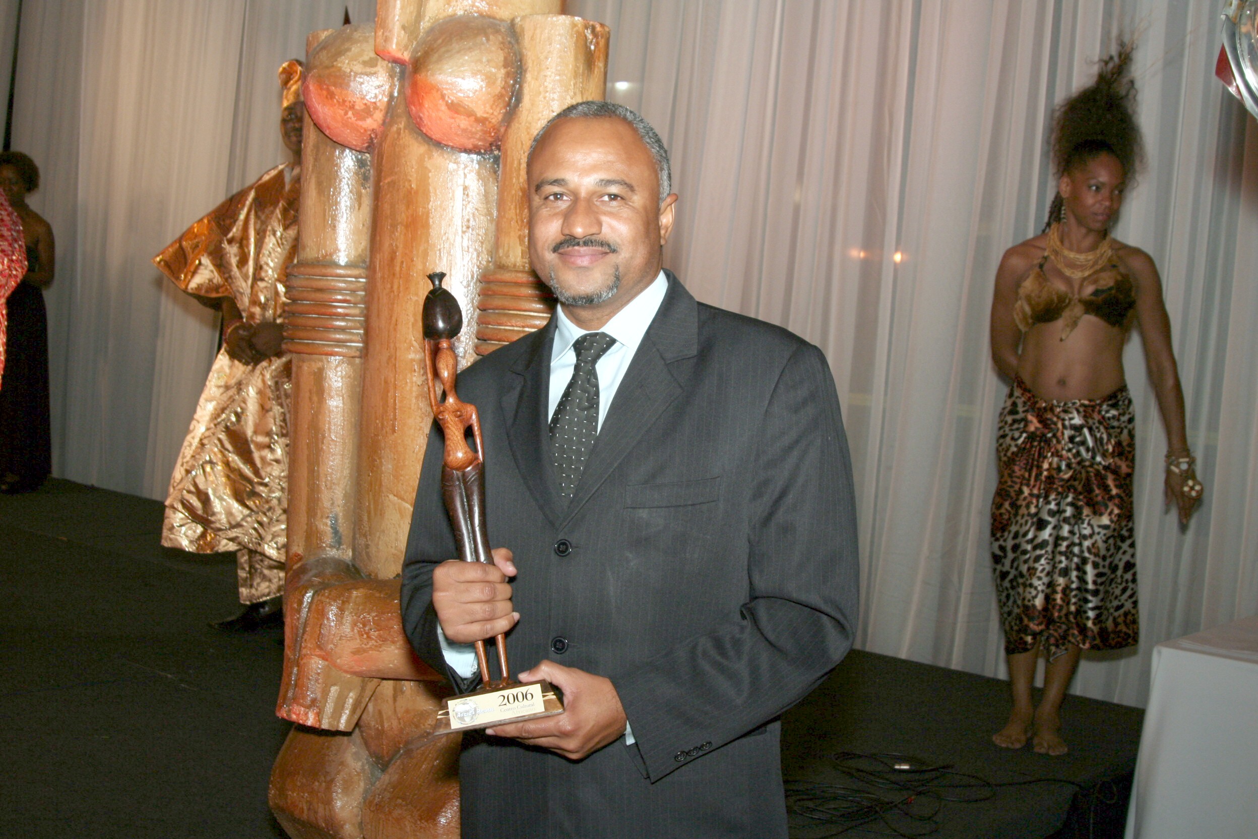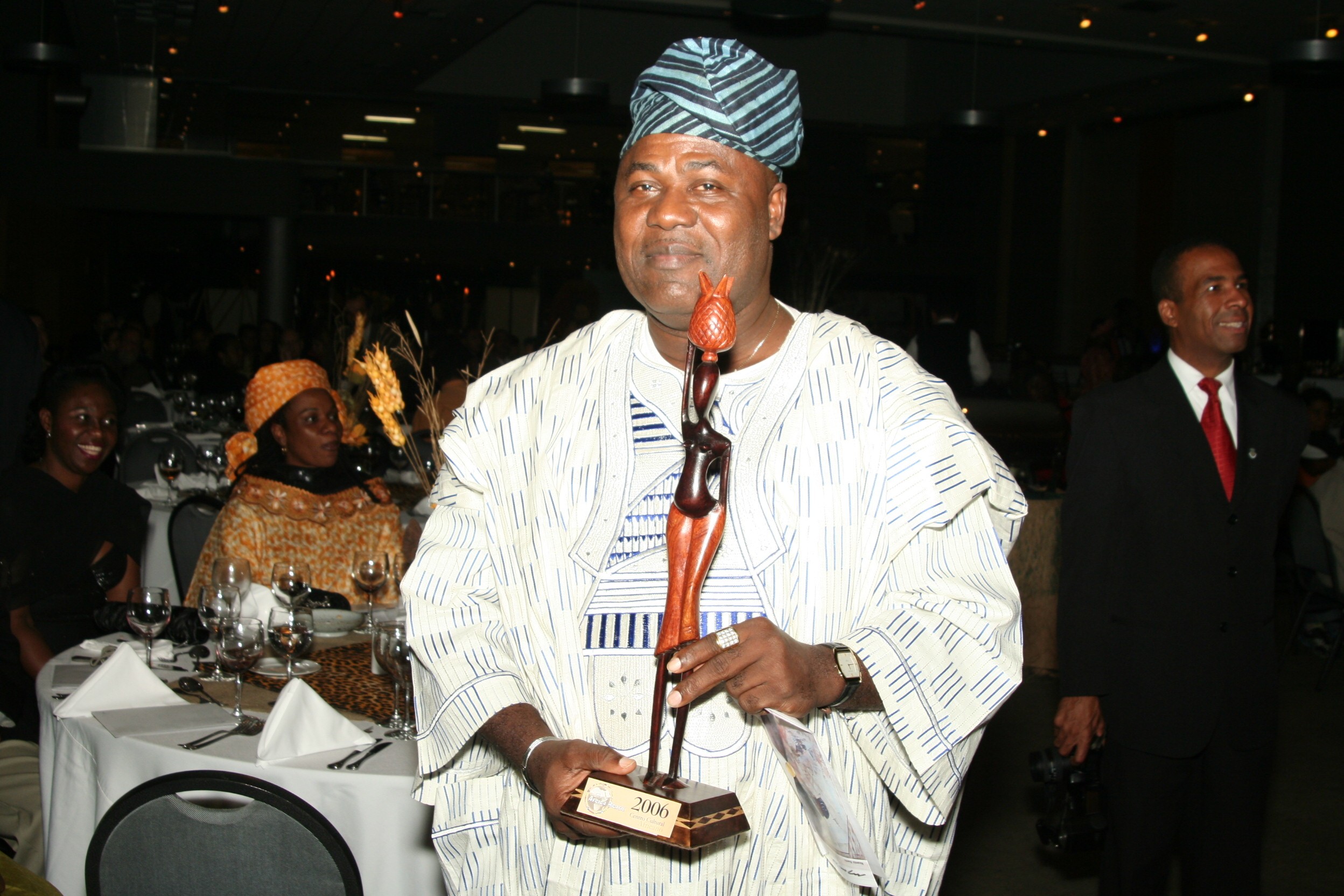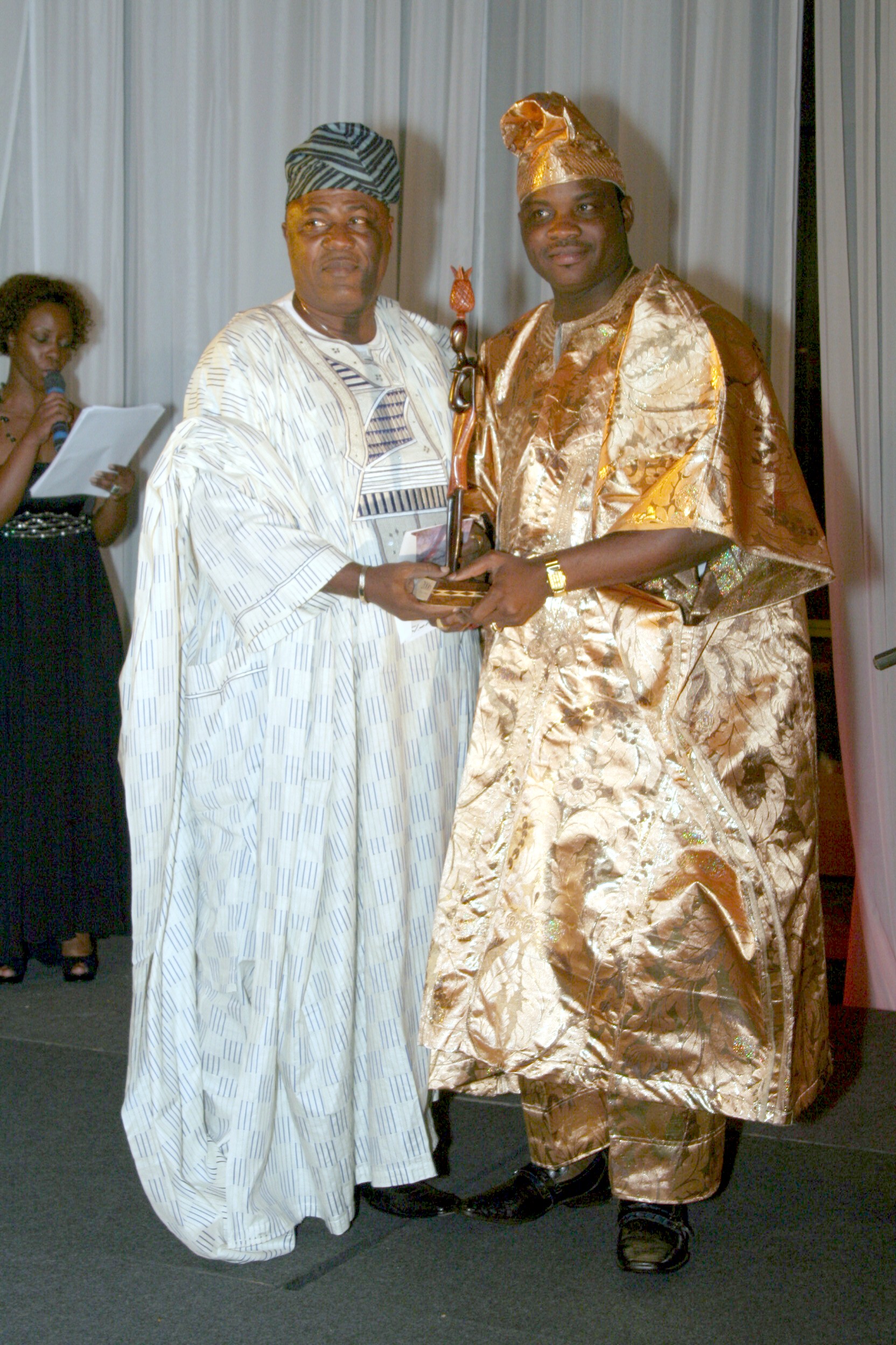 Entregar do prêmio África Brasil para Adekunle em seu escritório no Palácio de Justiça do Estado de São Paulo