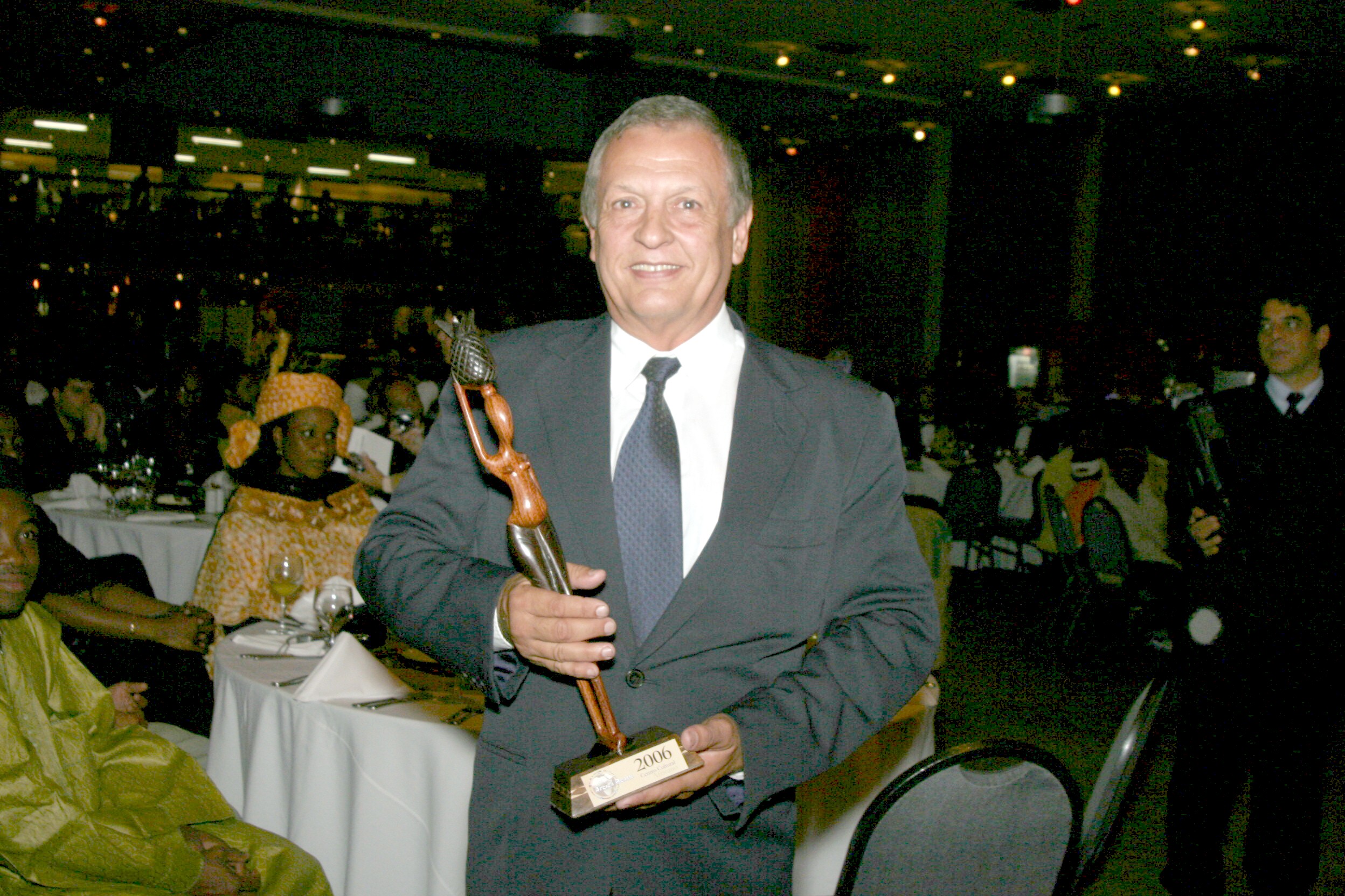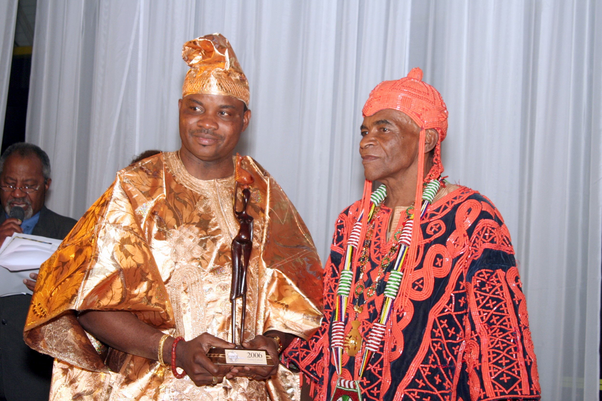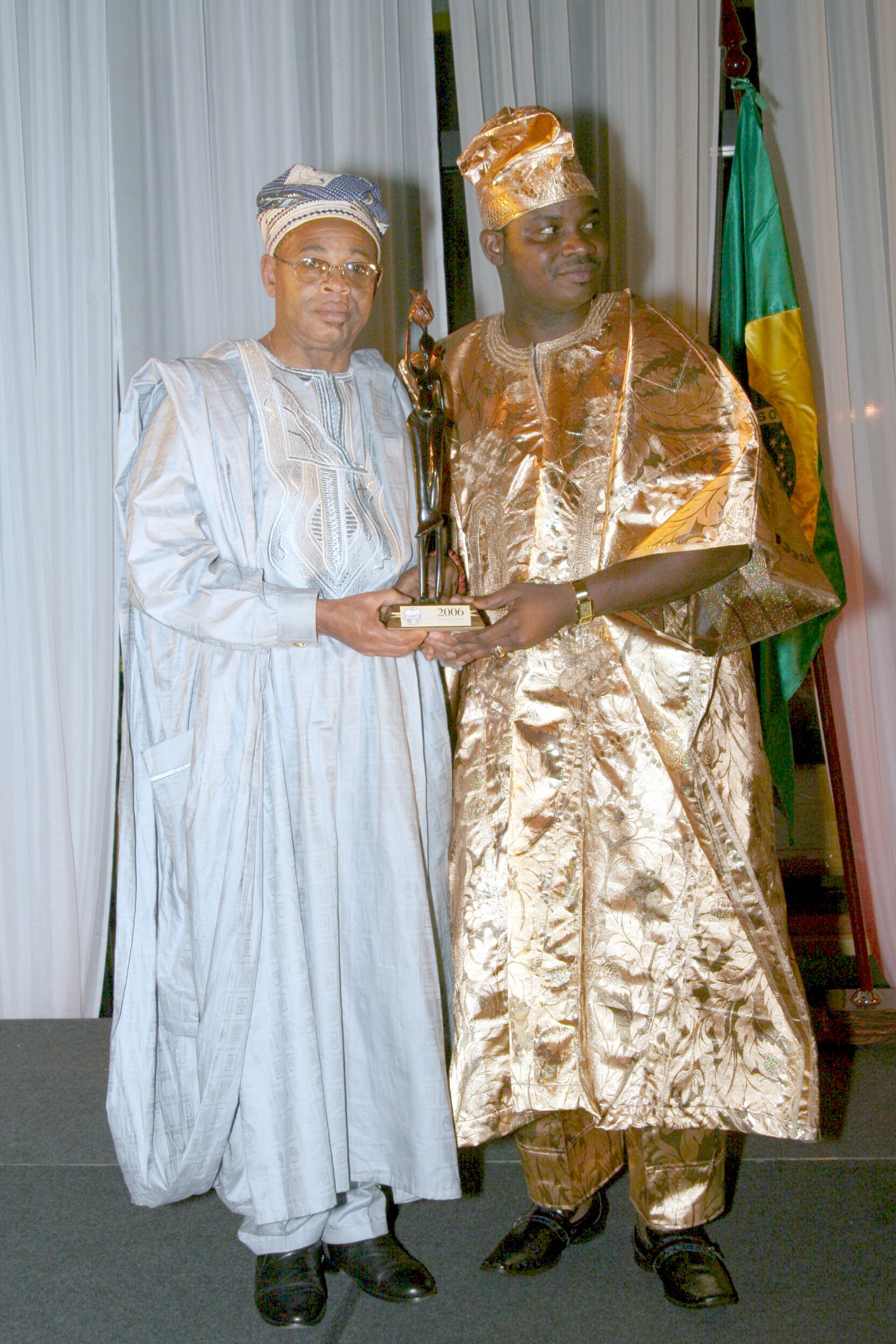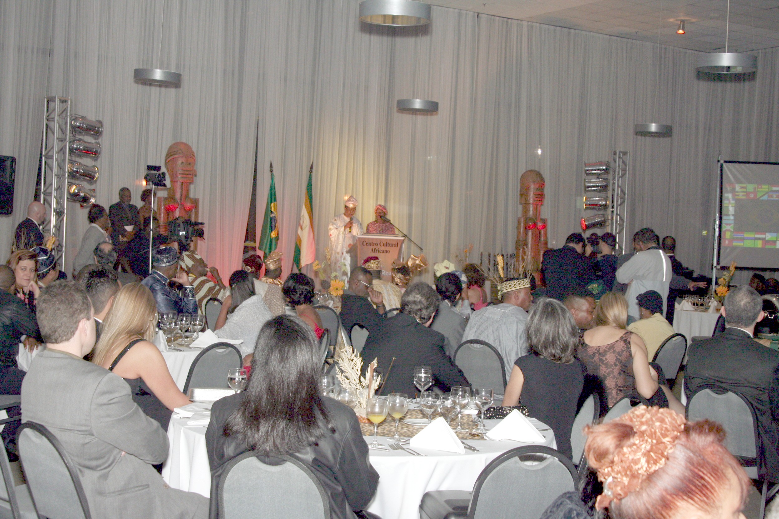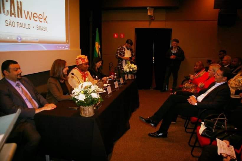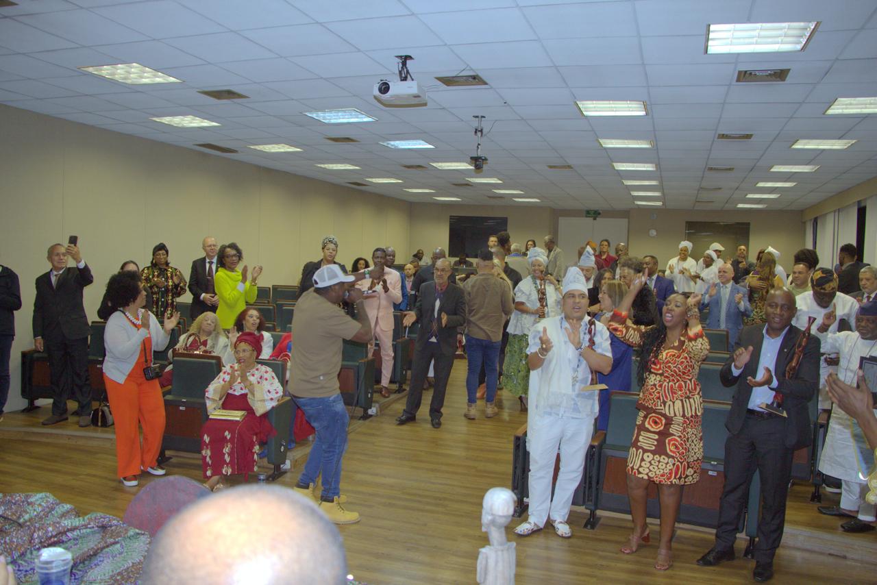 Entregar do prêmio África Brasil para Adekunle em seu escritório no Palácio de Justiça do Estado de São Paulo