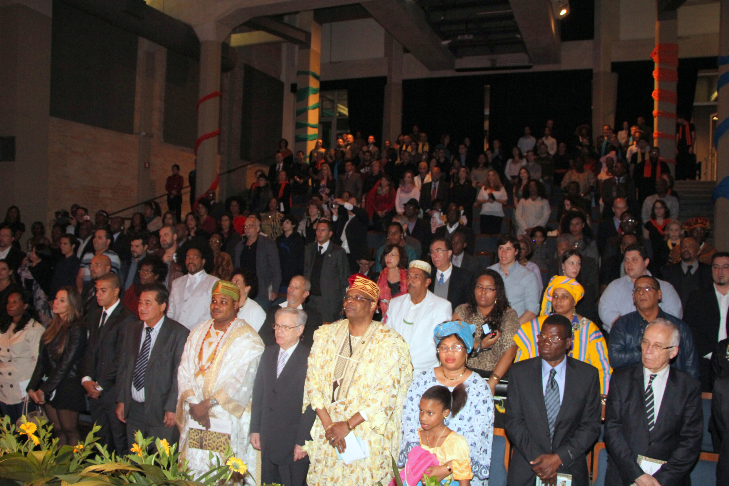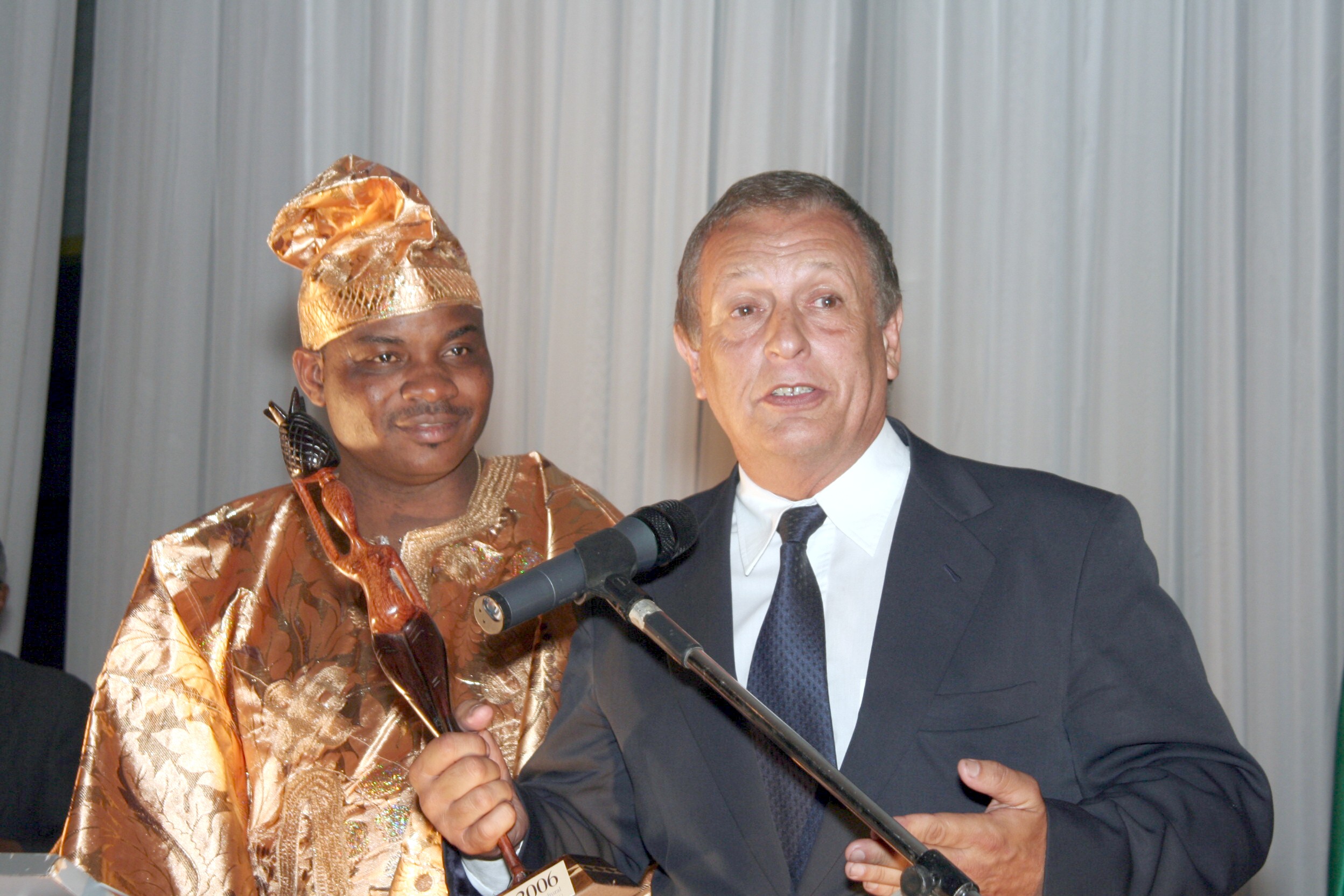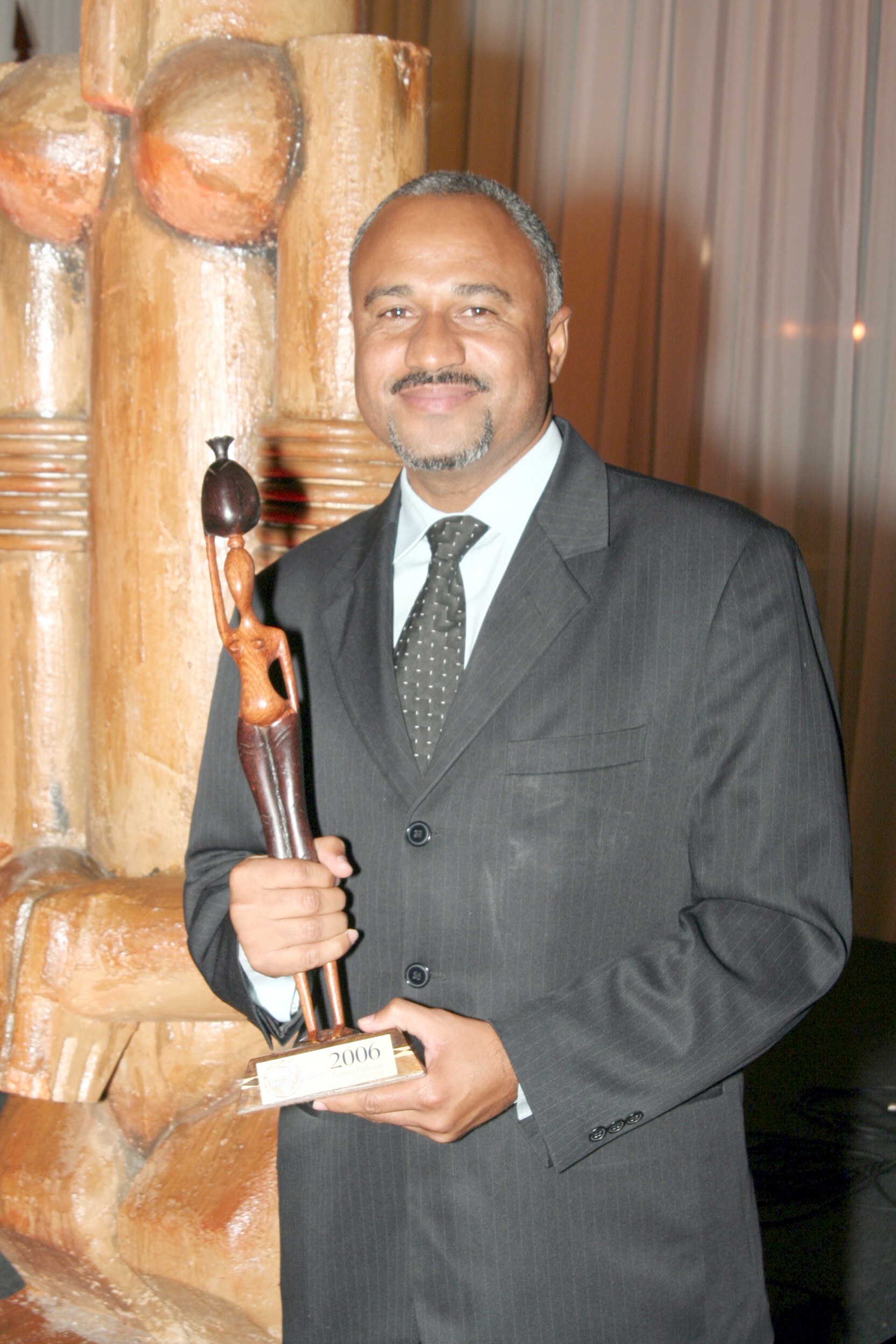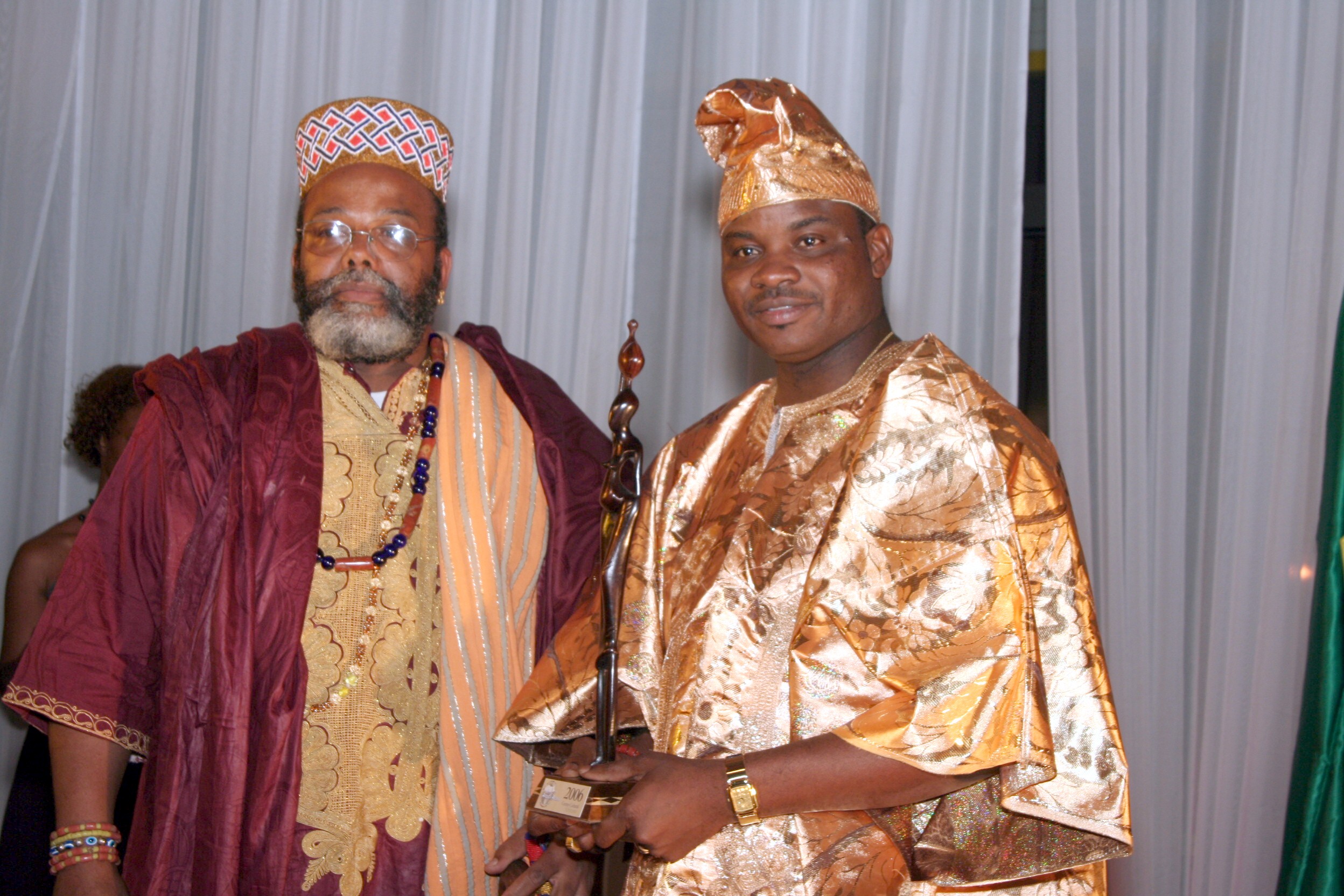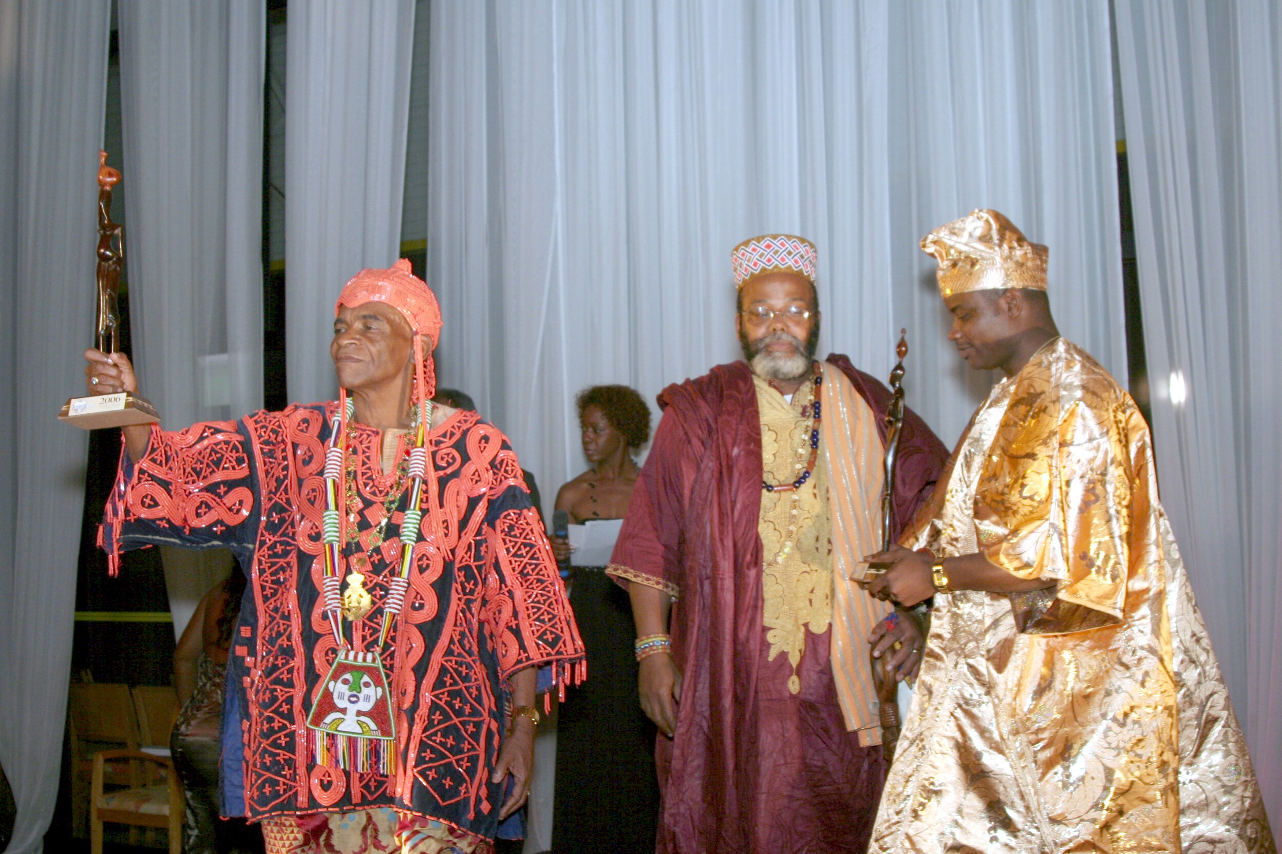Entregar do prêmio África Brasil para Adekunle em seu escritório no Palácio de Justiça do Estado de São Paulo