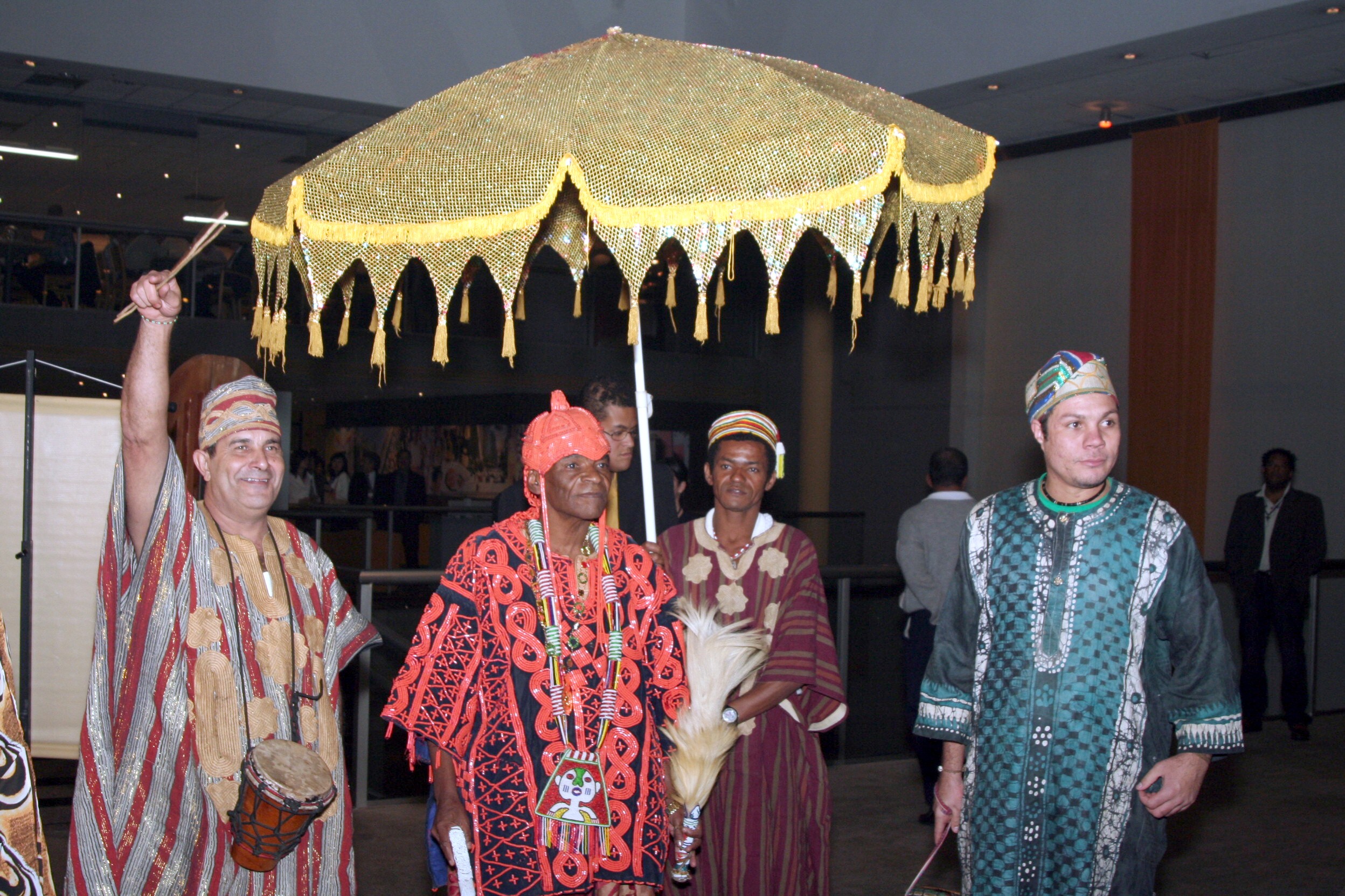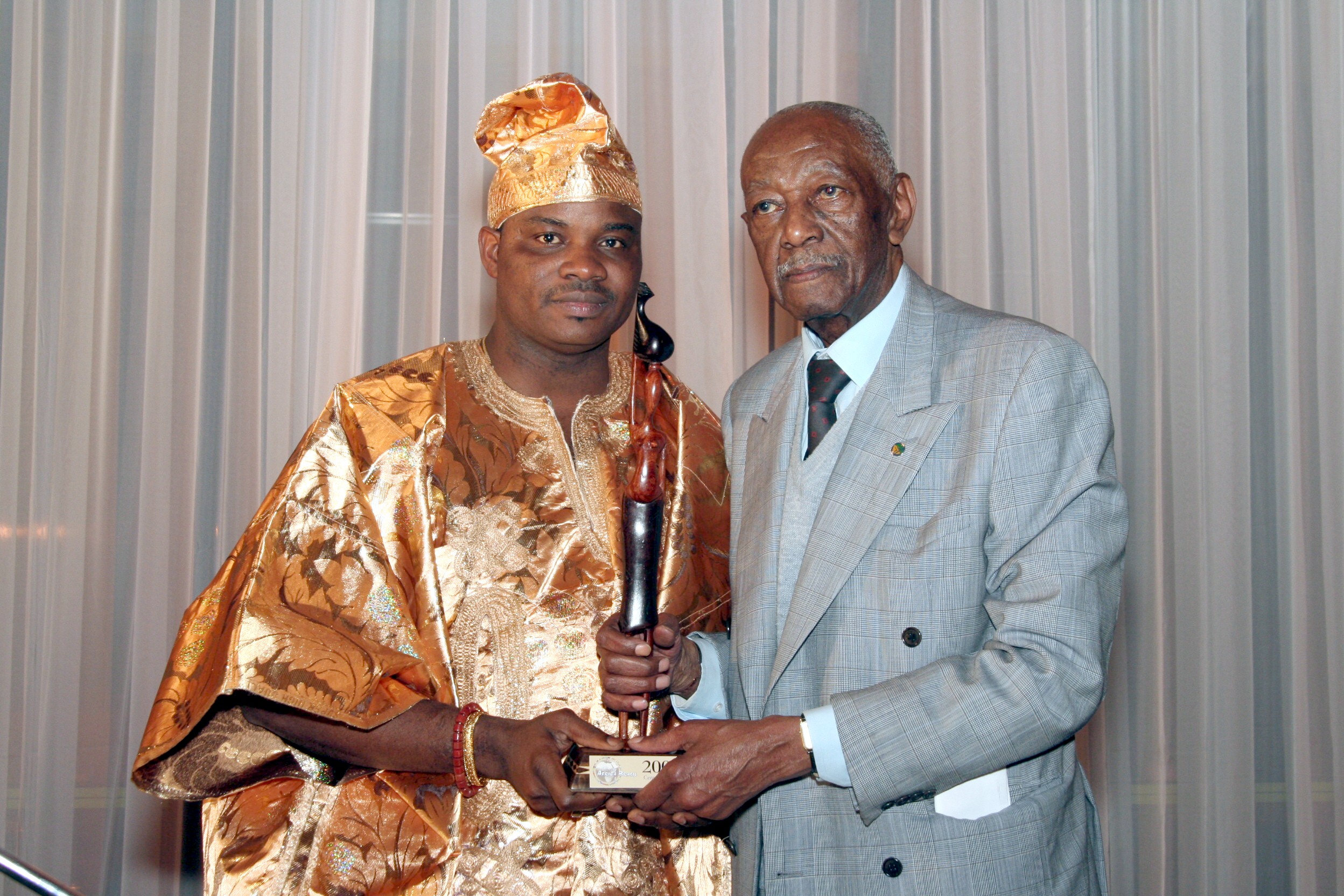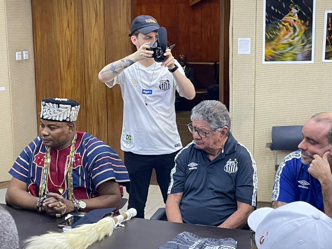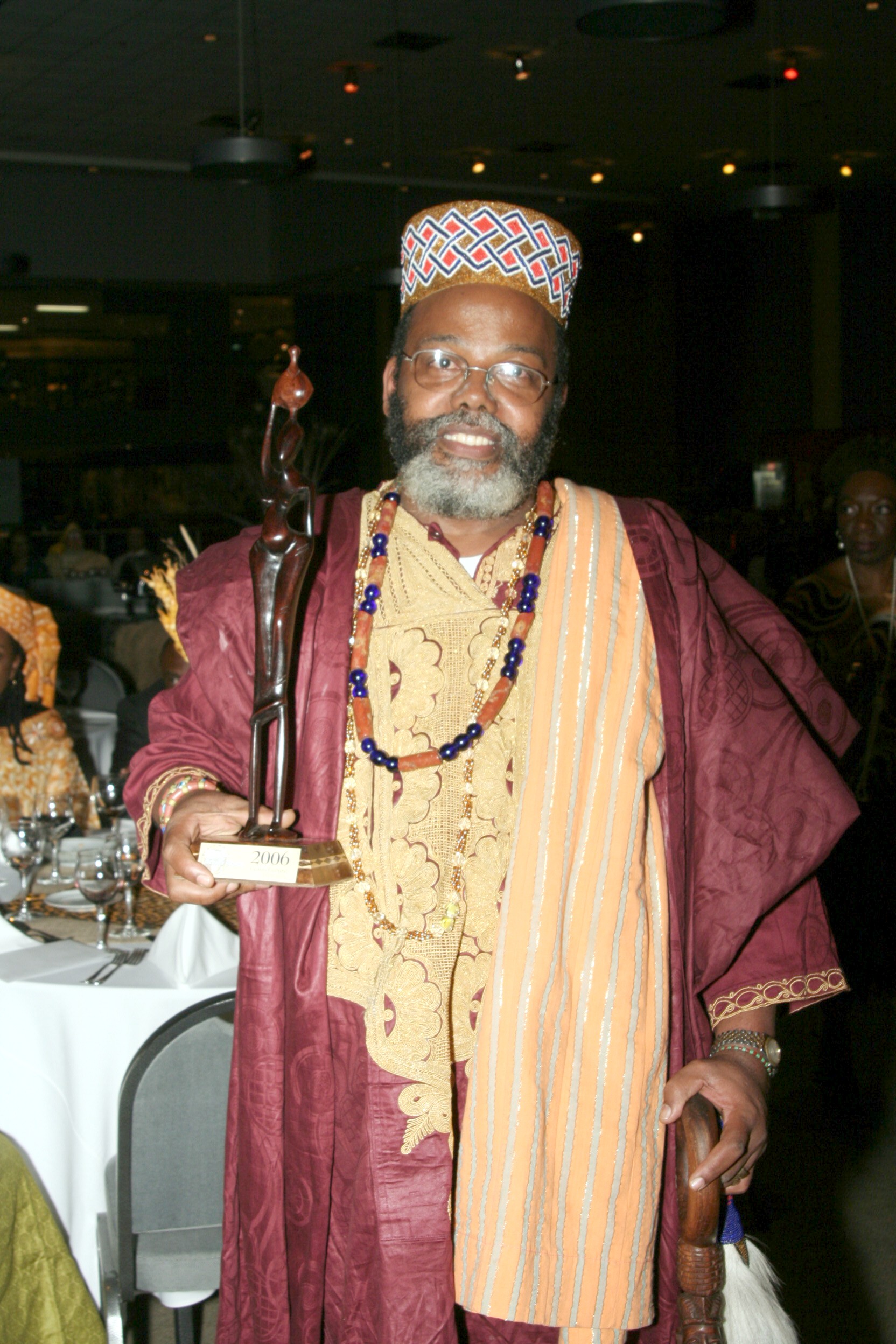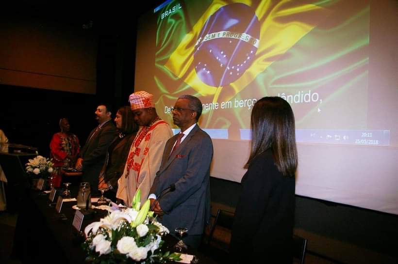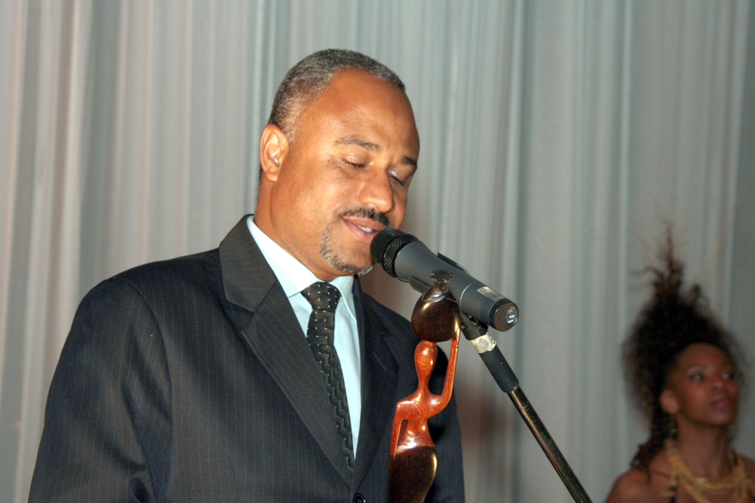 Entregar do prêmio África Brasil para Adekunle em seu escritório no Palácio de Justiça do Estado de São Paulo