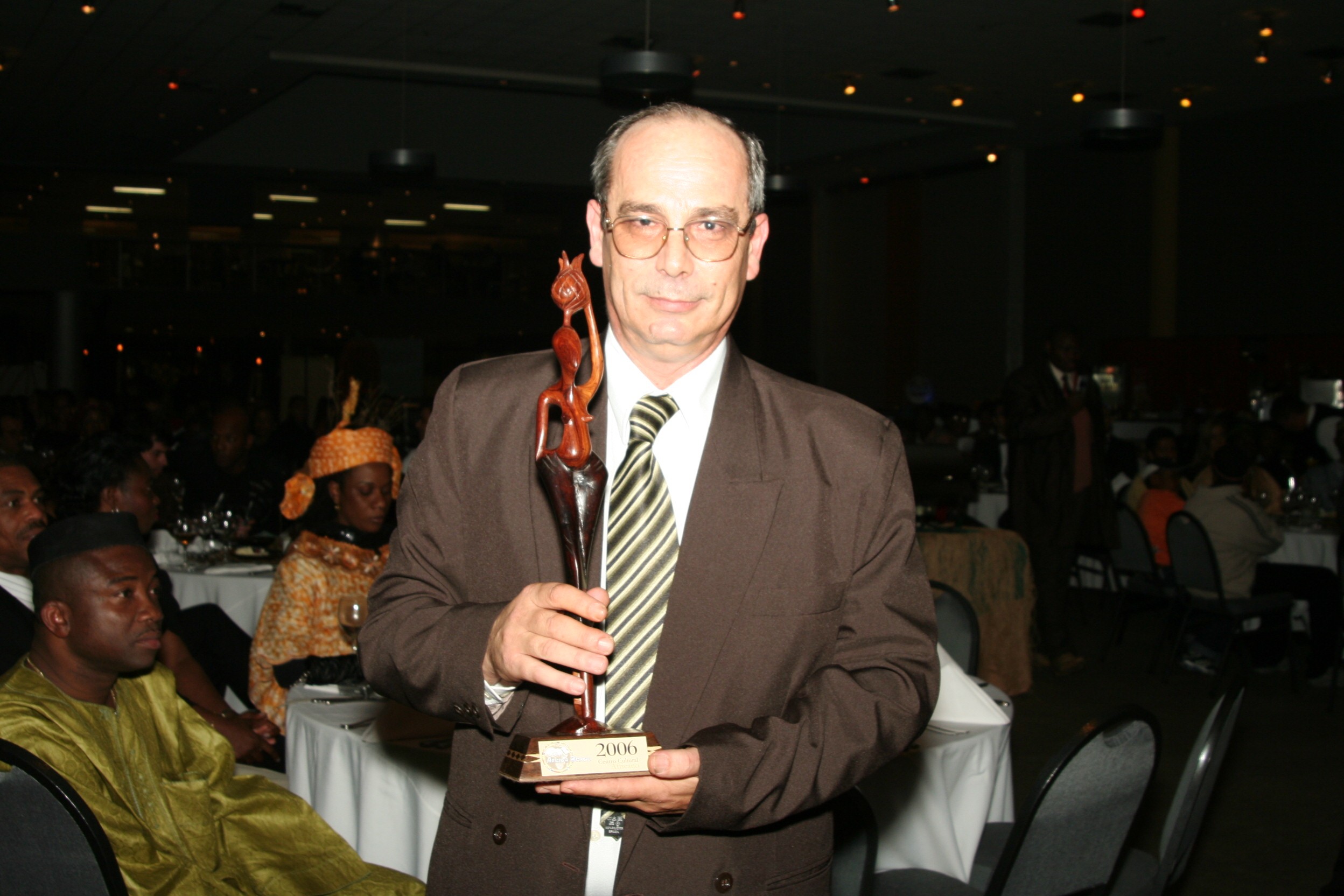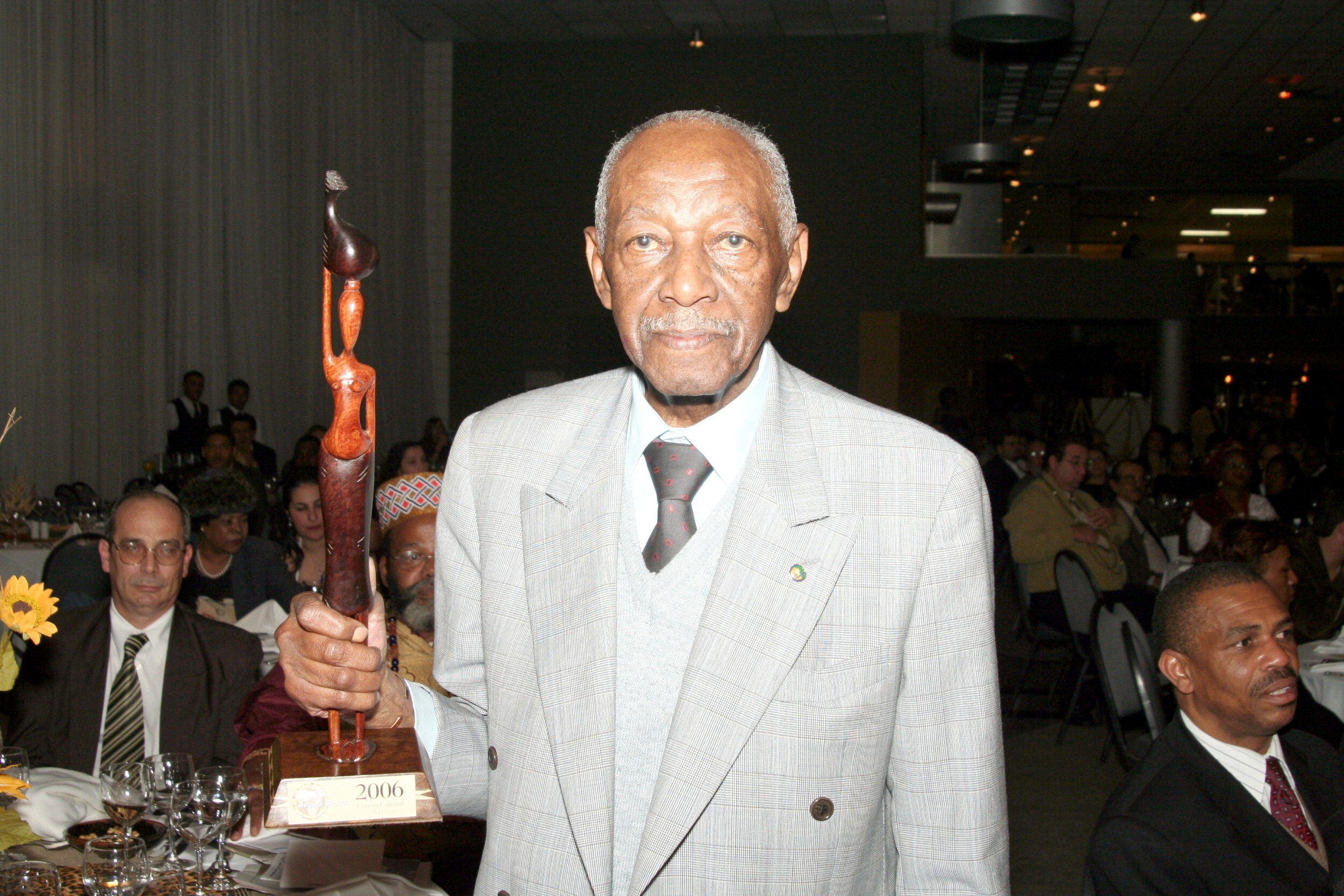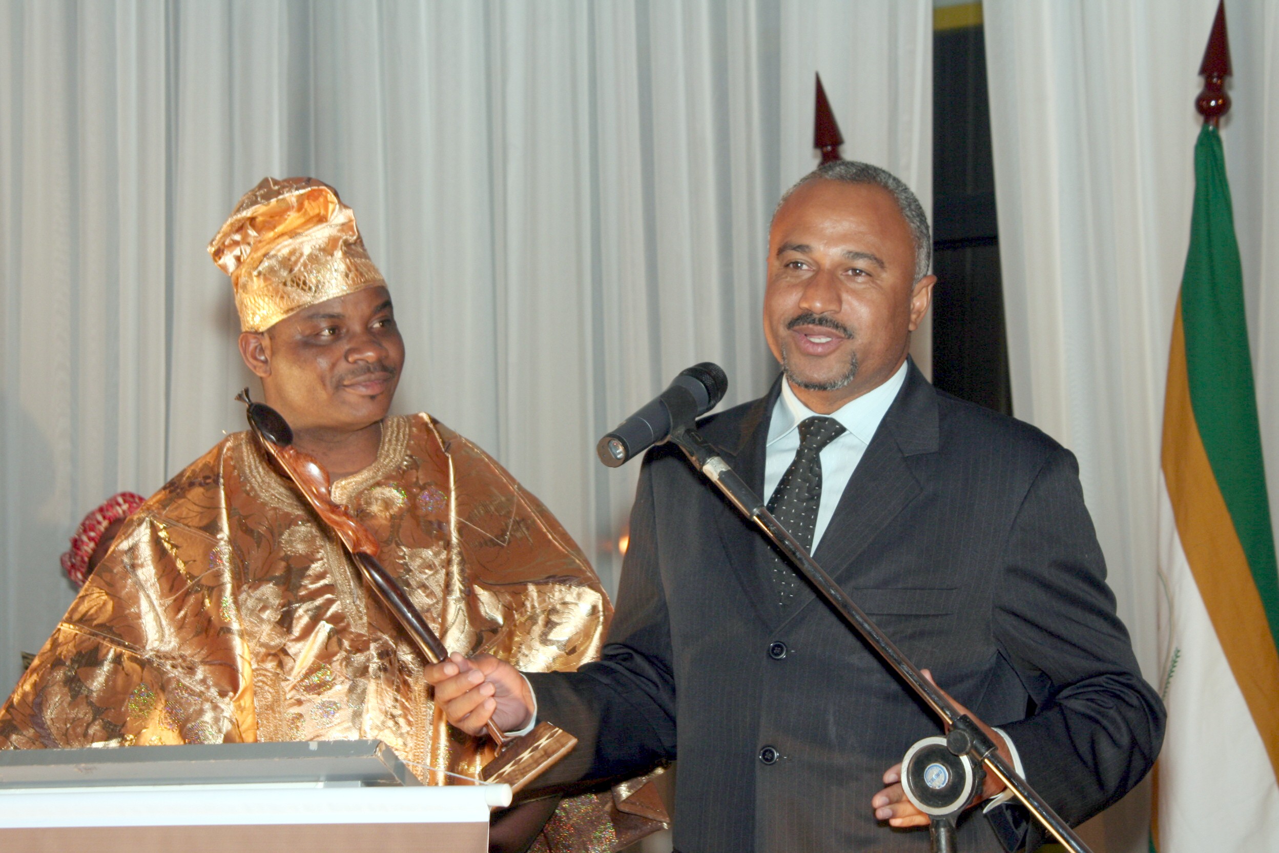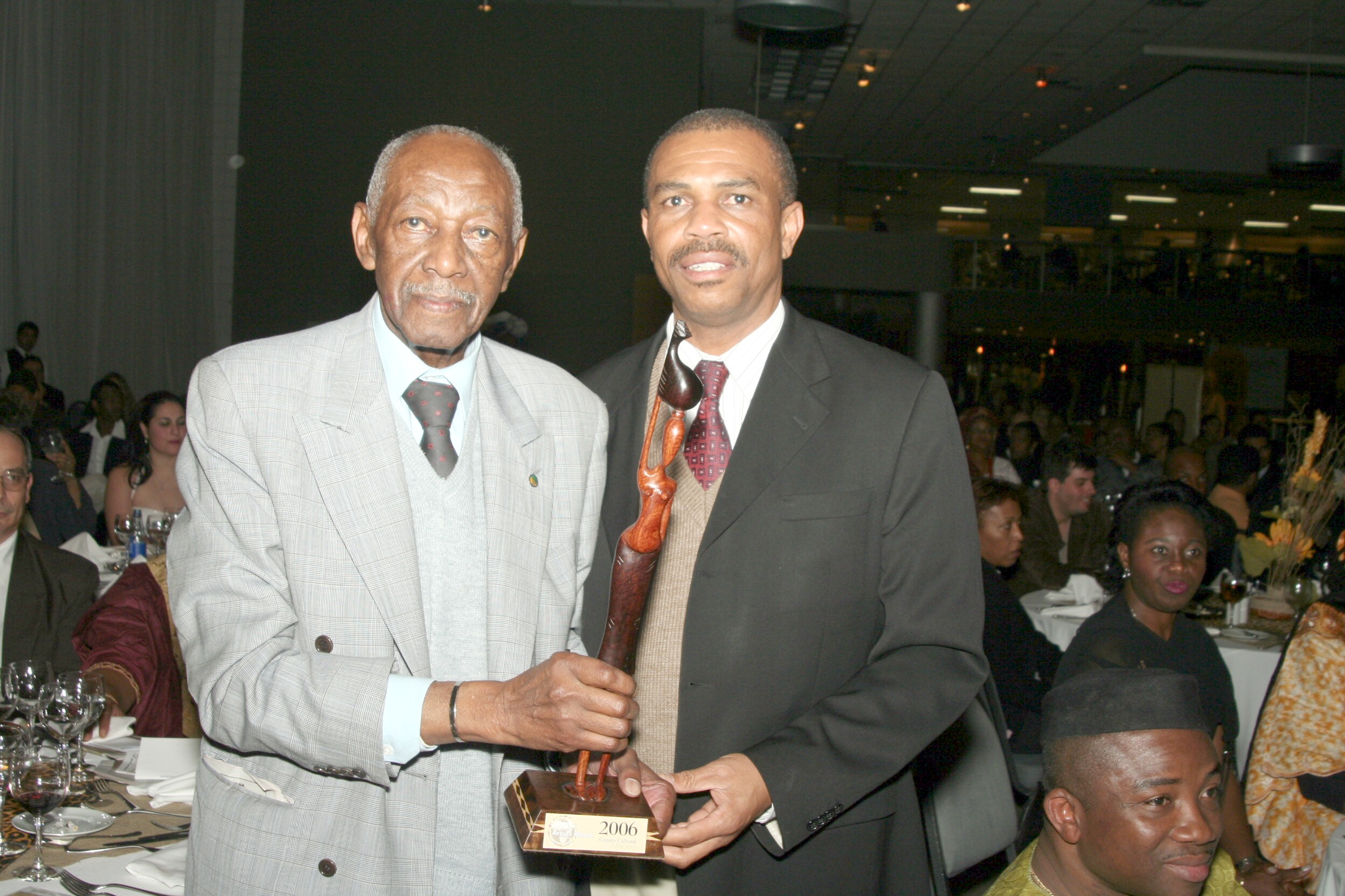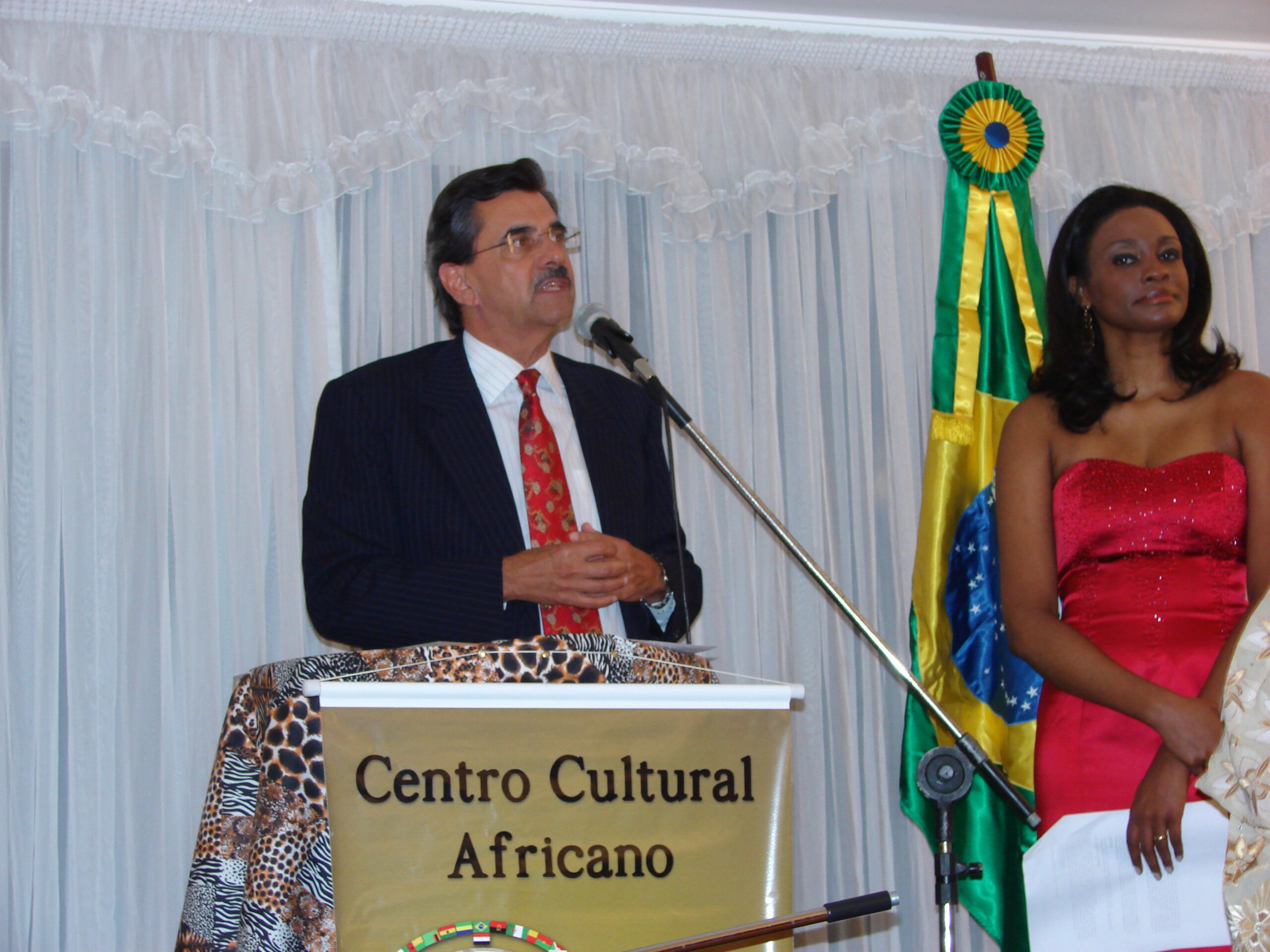 Entregar do prêmio África Brasil para Adekunle em seu escritório no Palácio de Justiça do Estado de São Paulo