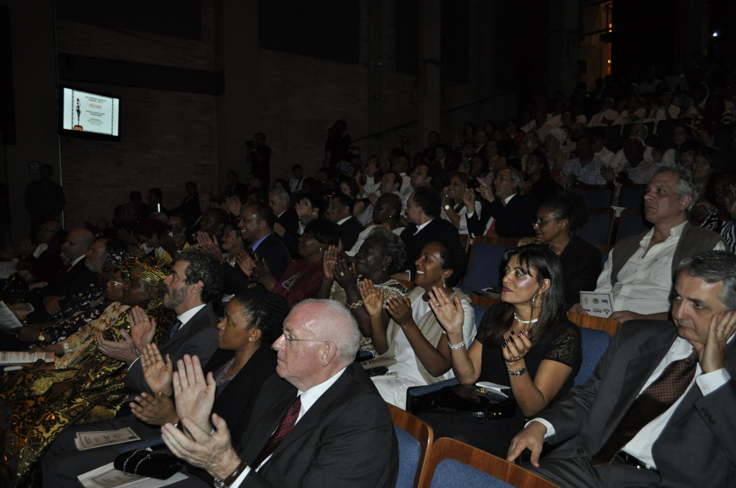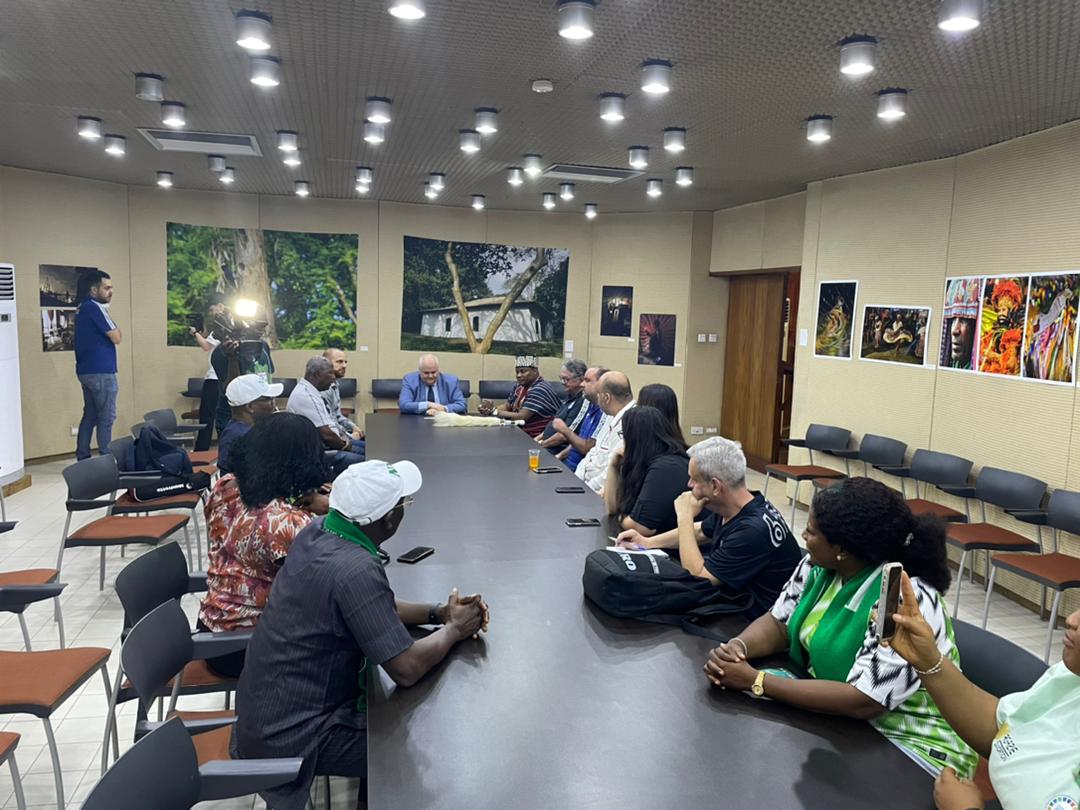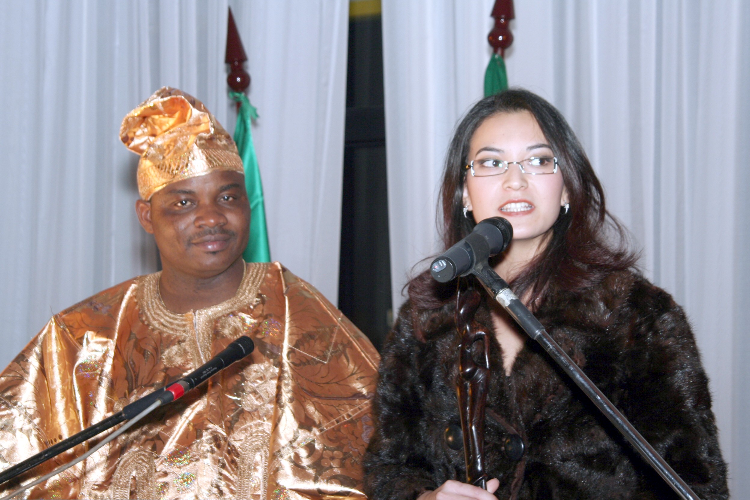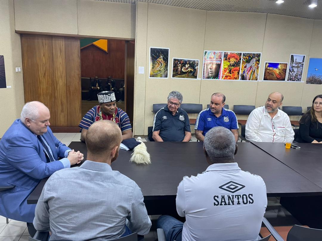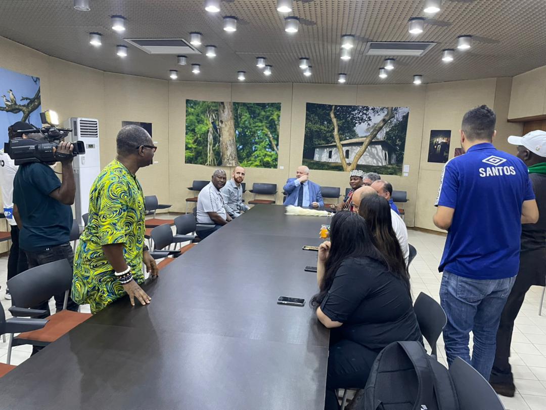 Entregar do prêmio África Brasil para Adekunle em seu escritório no Palácio de Justiça do Estado de São Paulo