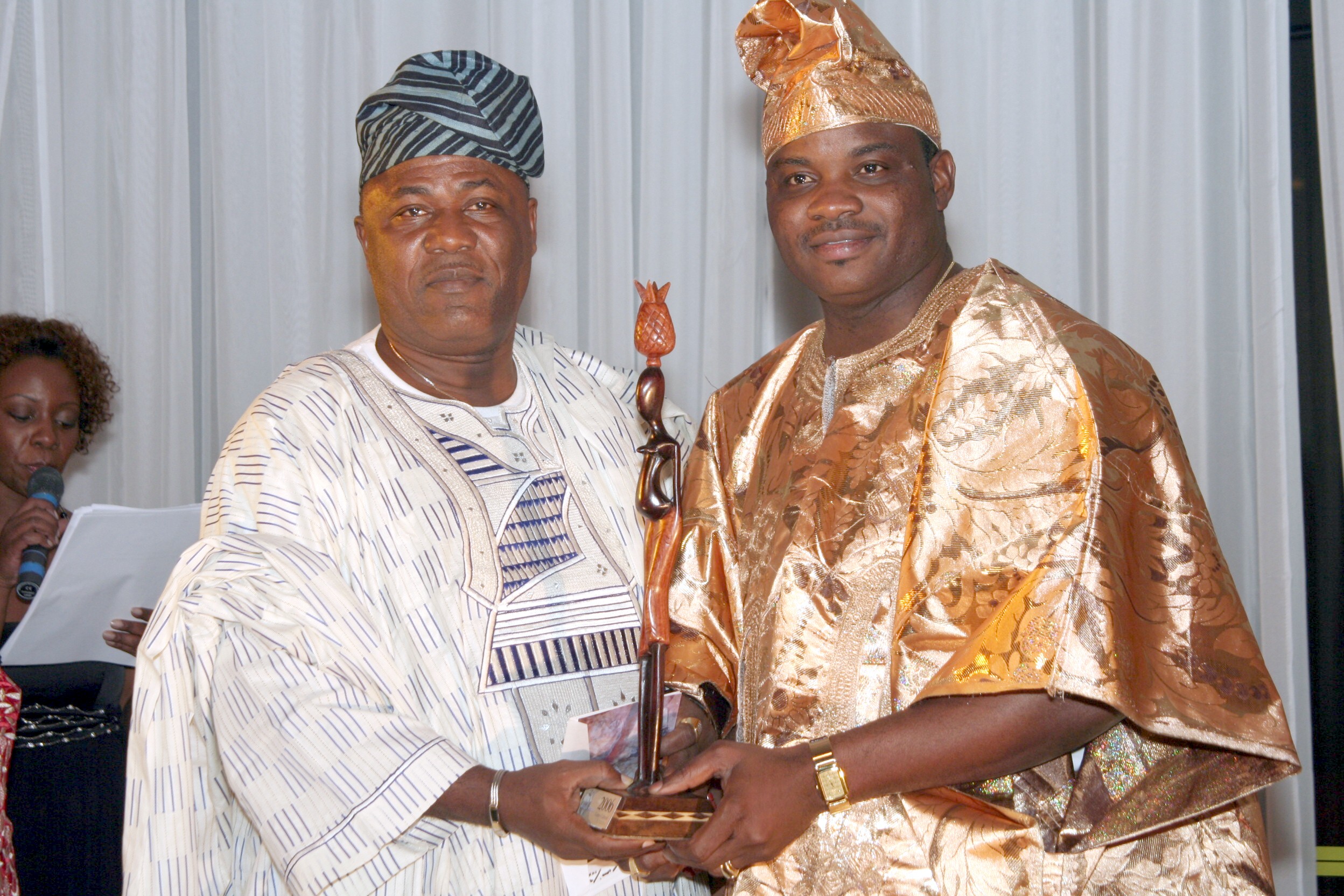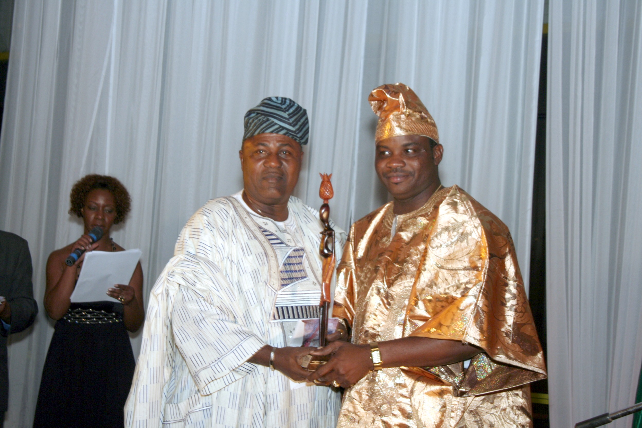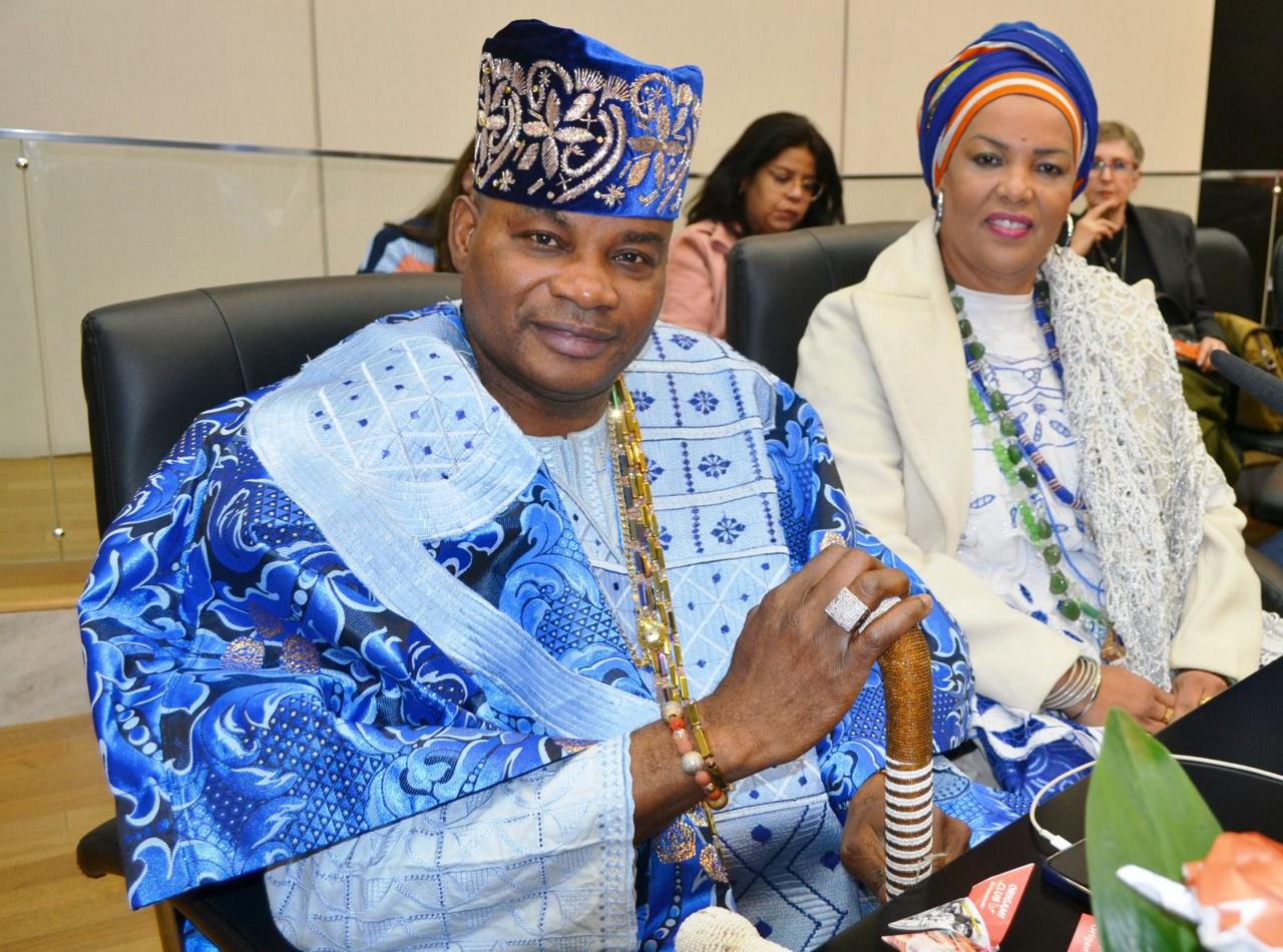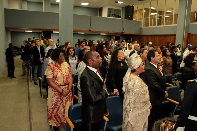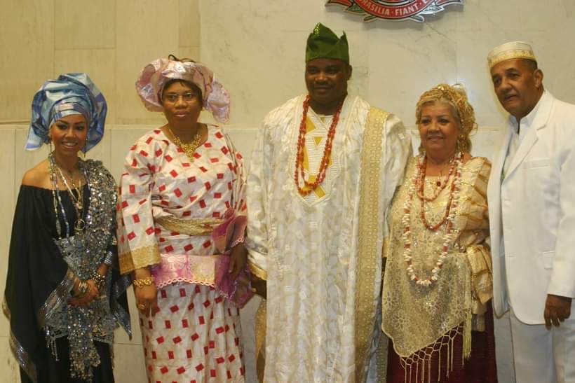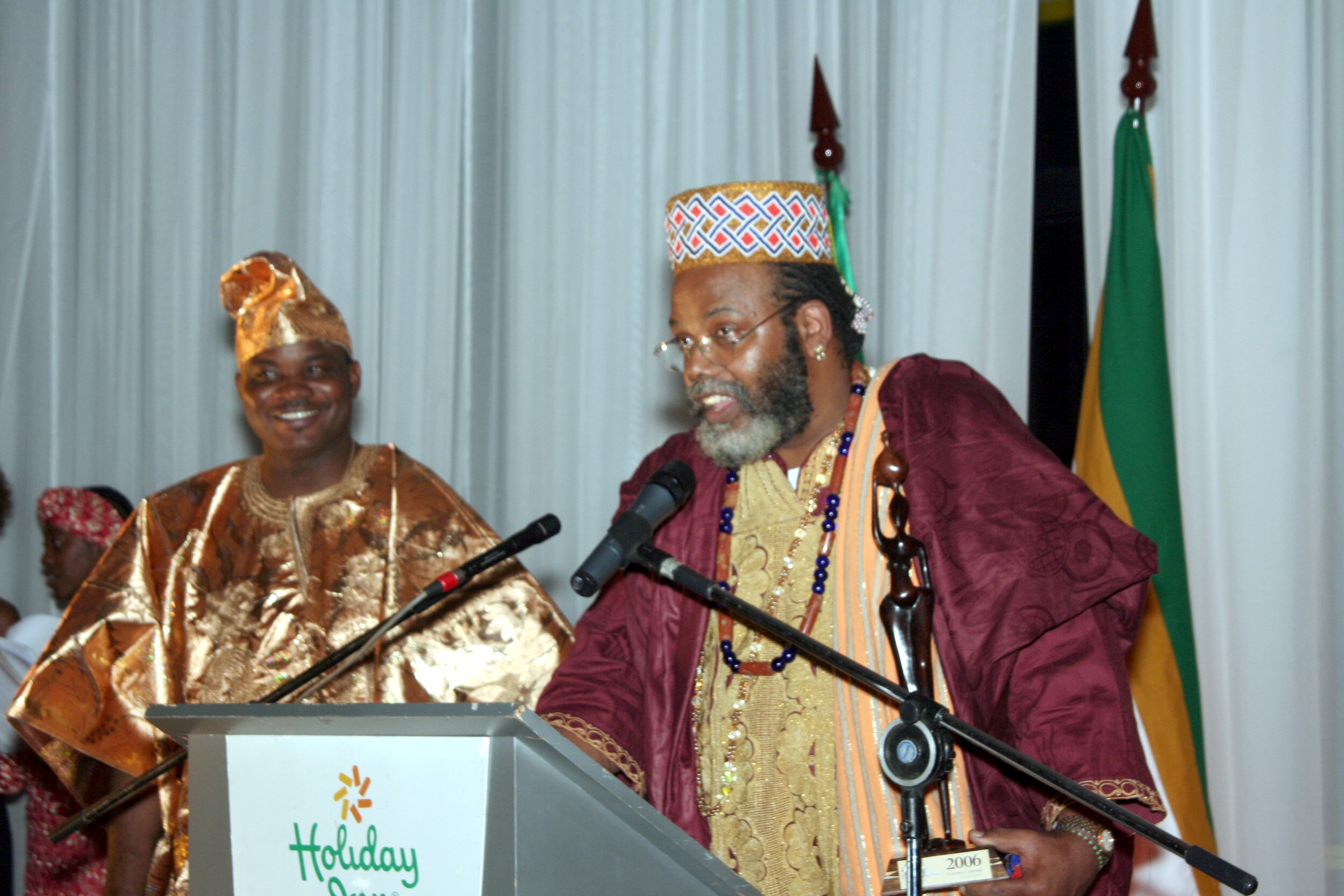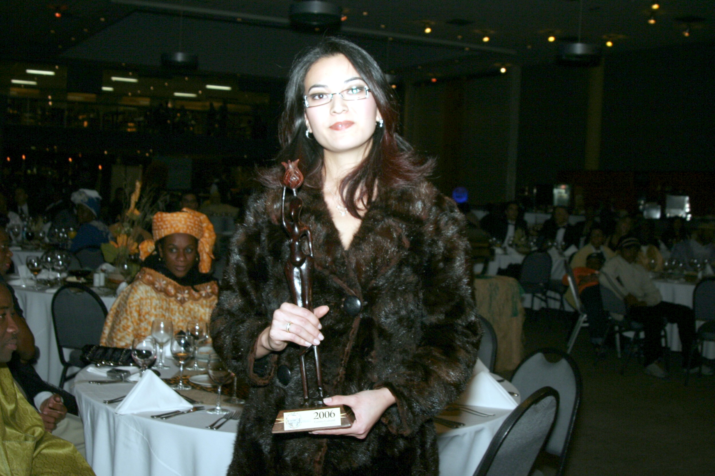 Entregar do prêmio África Brasil para Adekunle em seu escritório no Palácio de Justiça do Estado de São Paulo