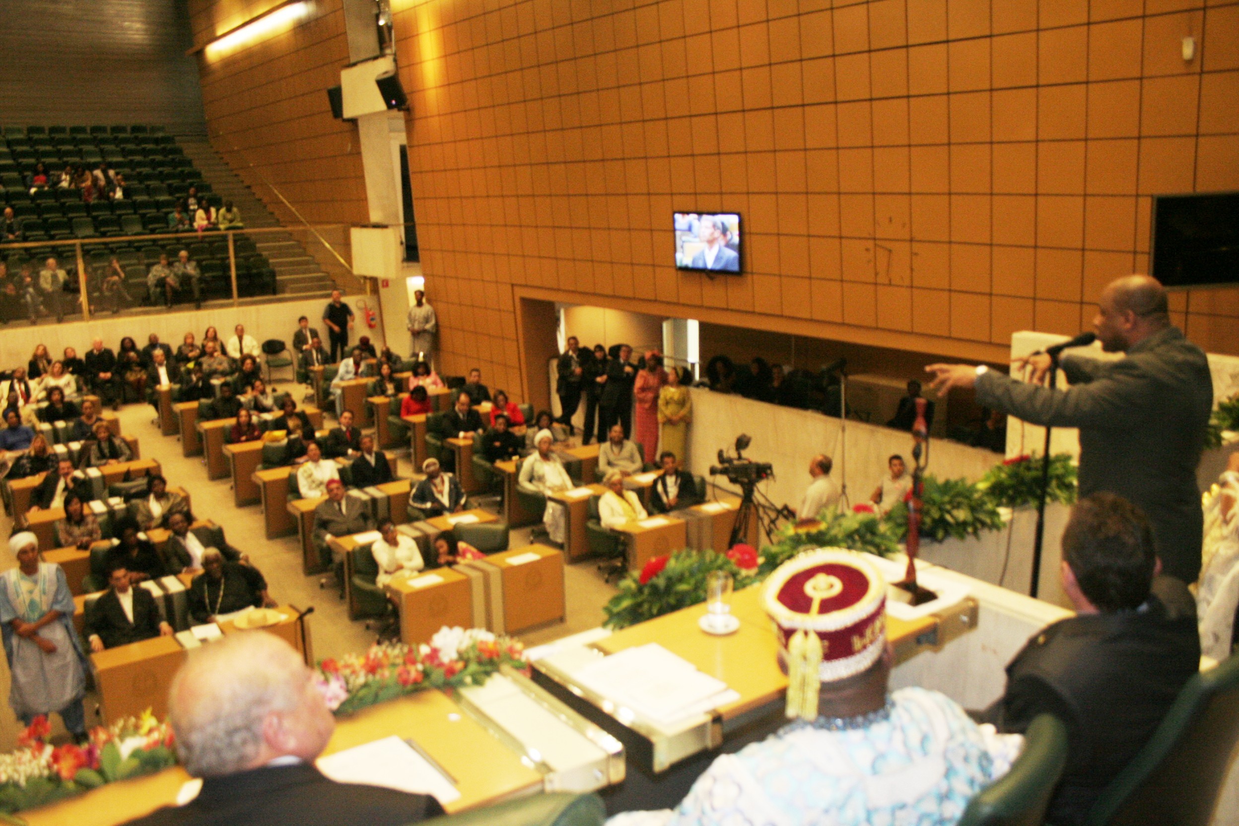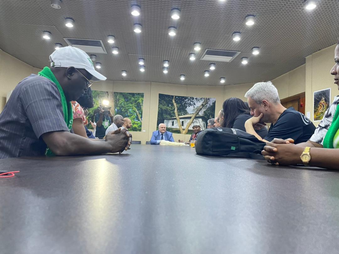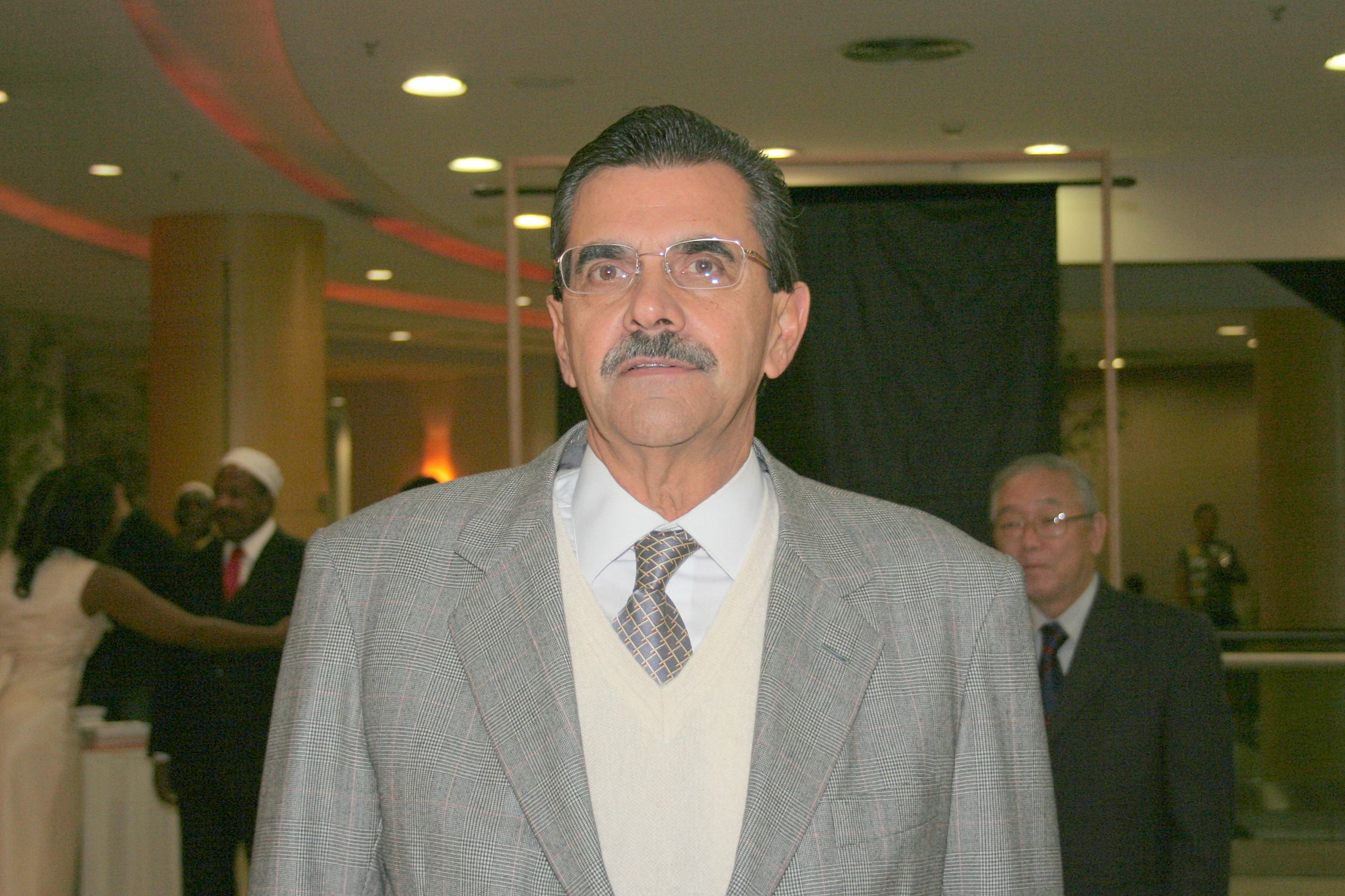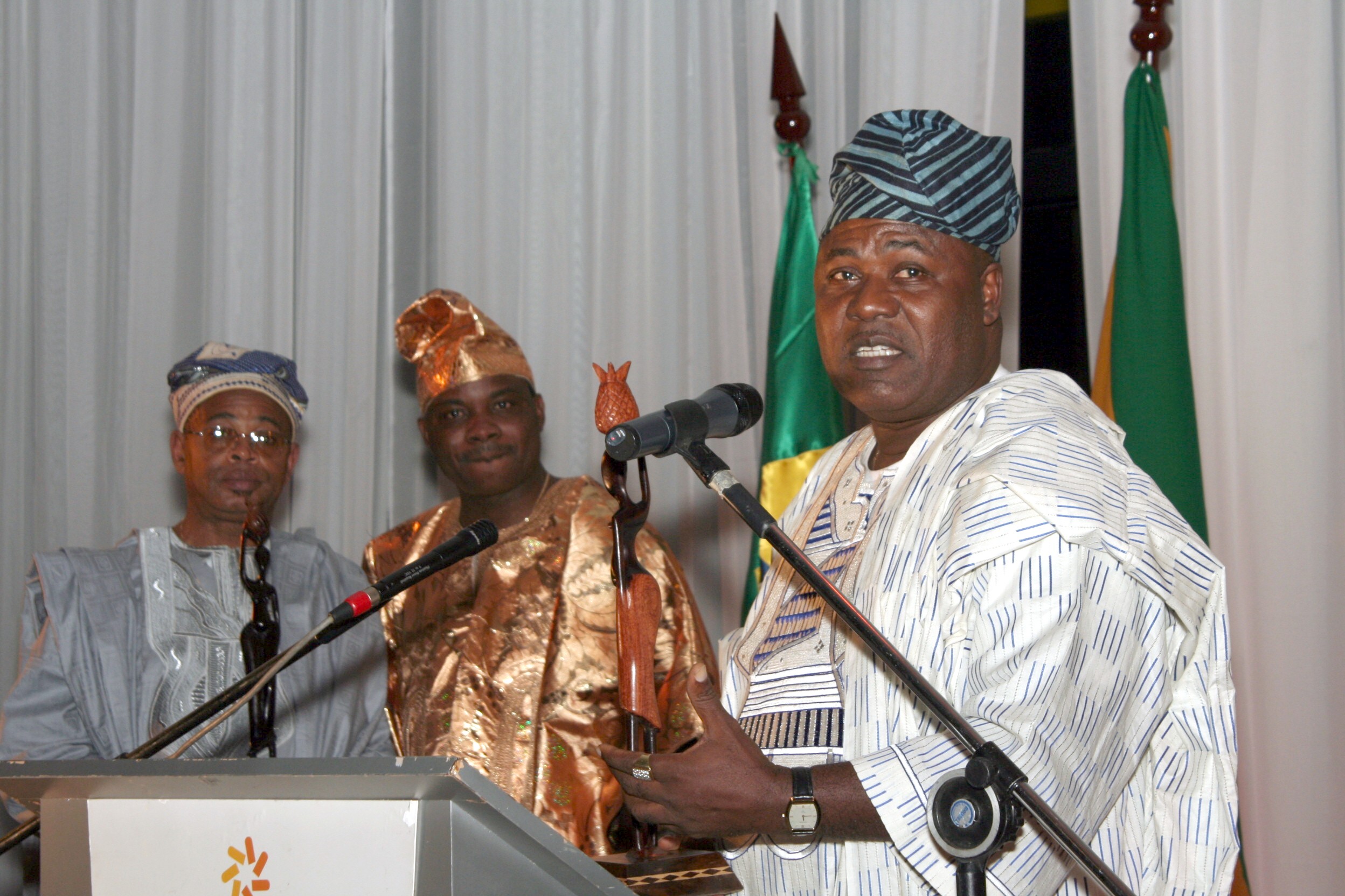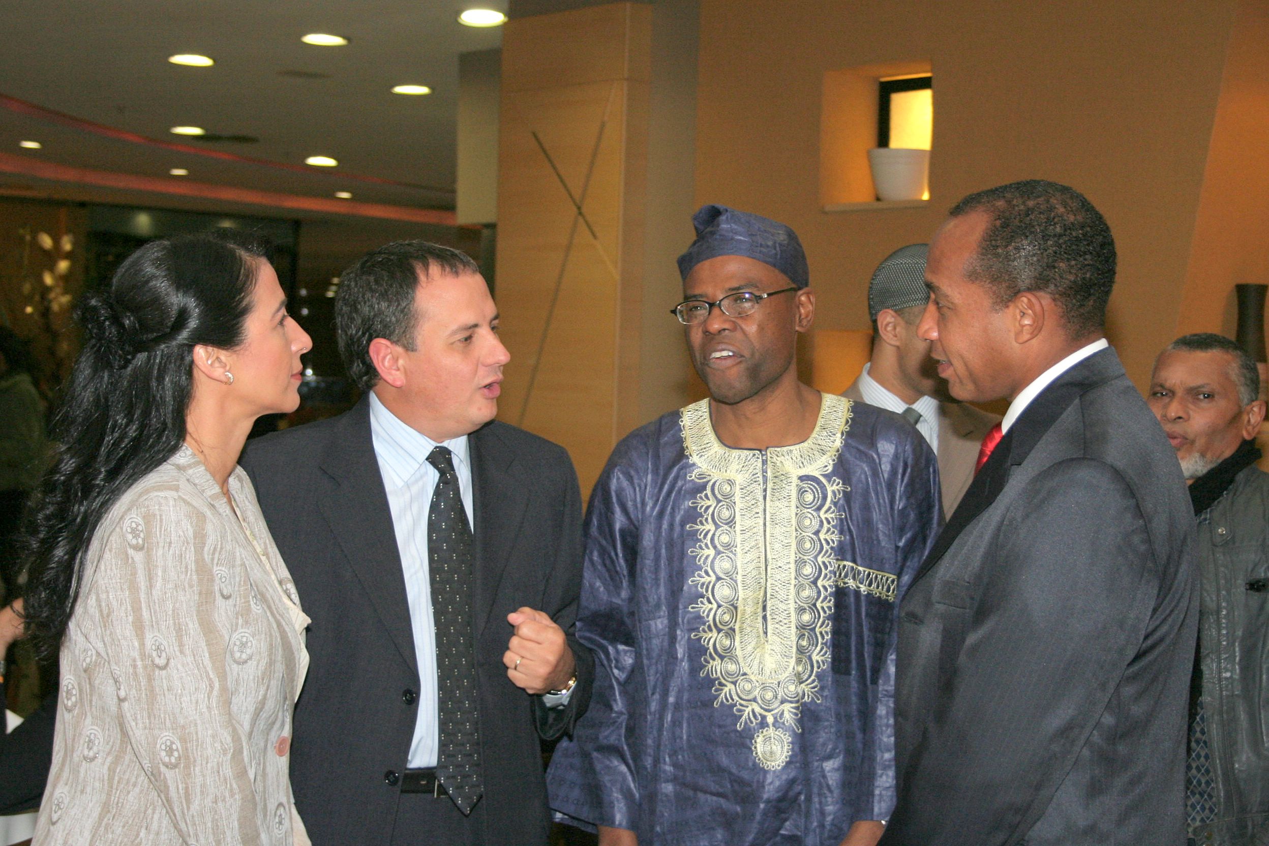 Entregar do prêmio África Brasil para Adekunle em seu escritório no Palácio de Justiça do Estado de São Paulo